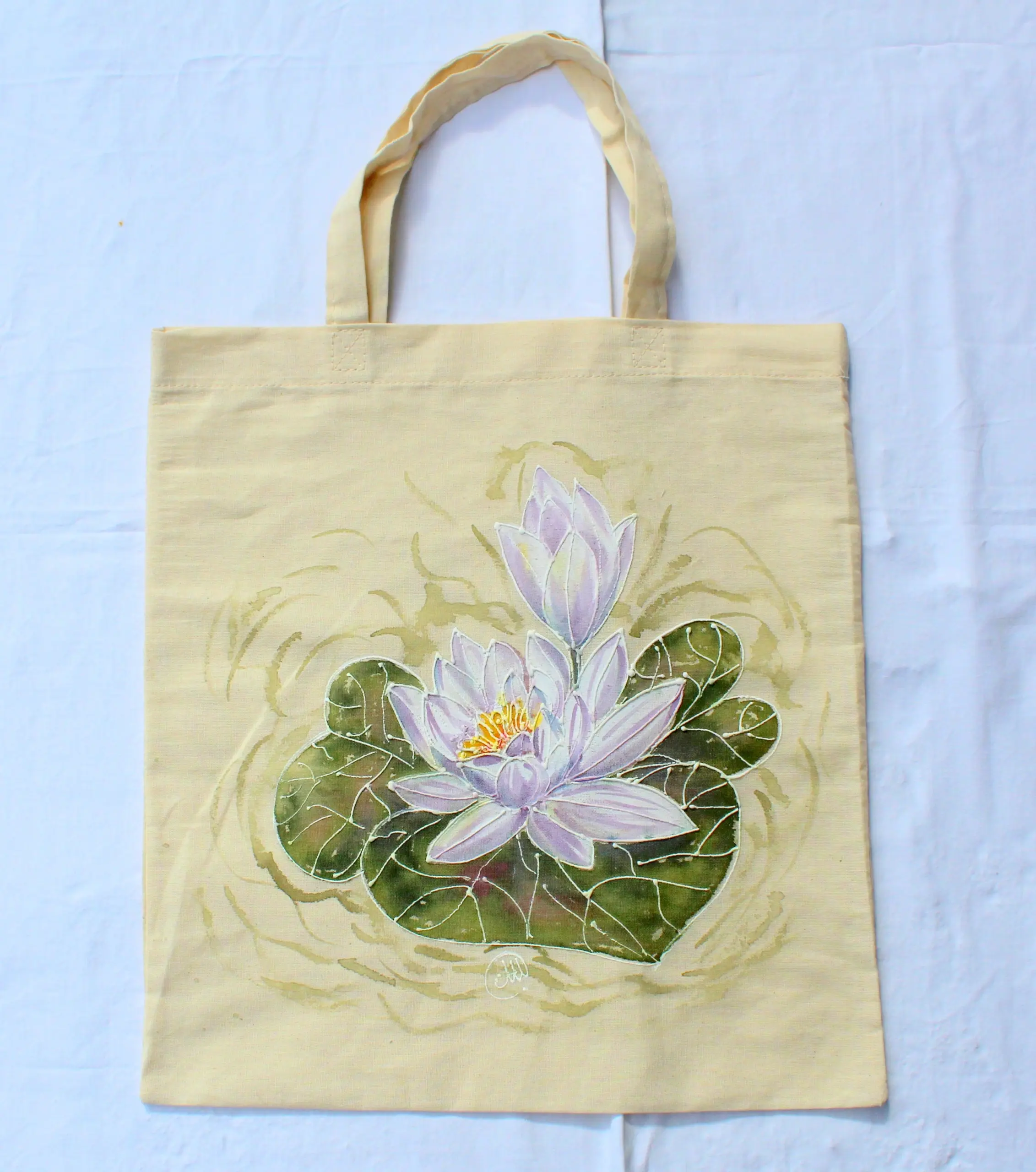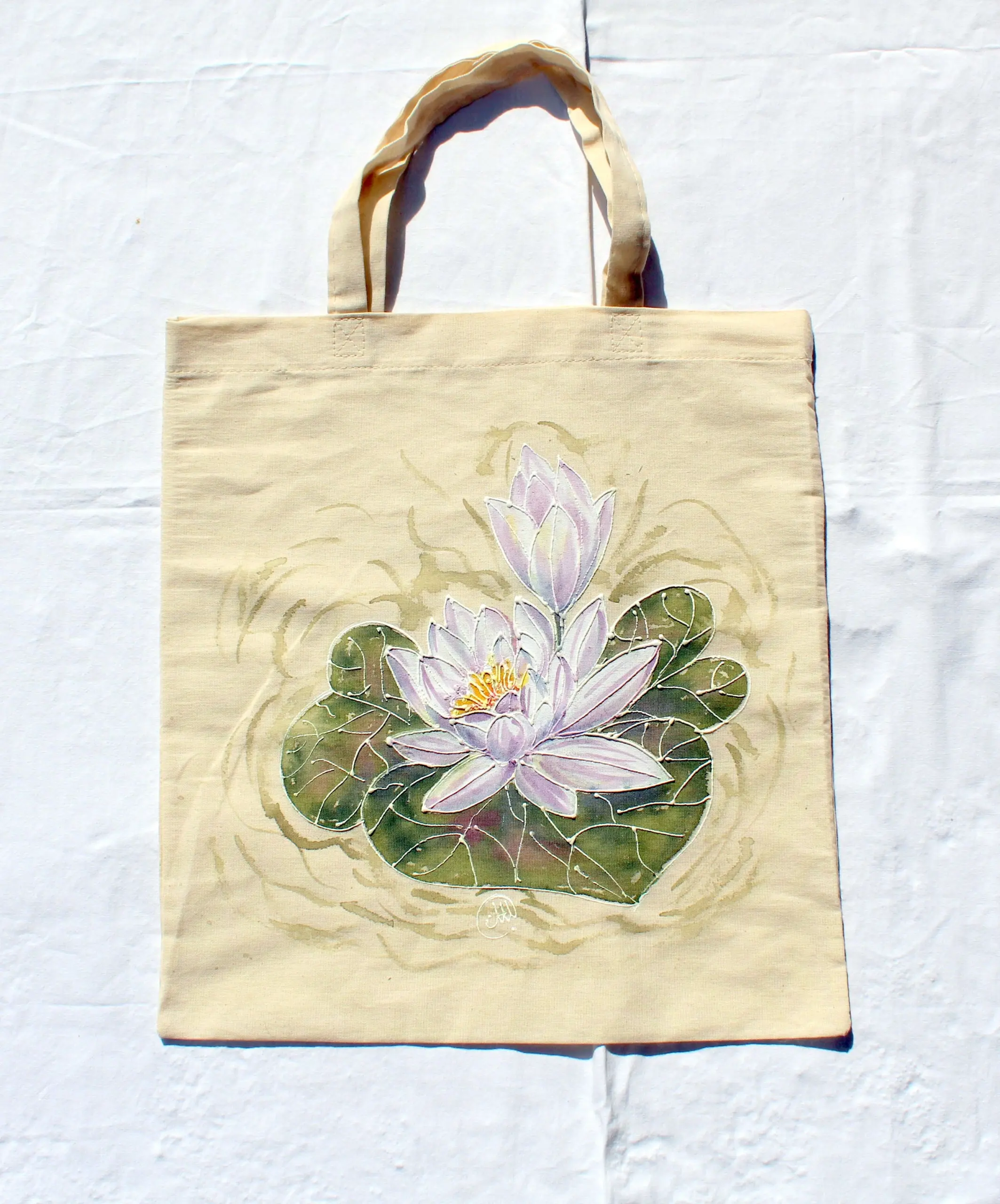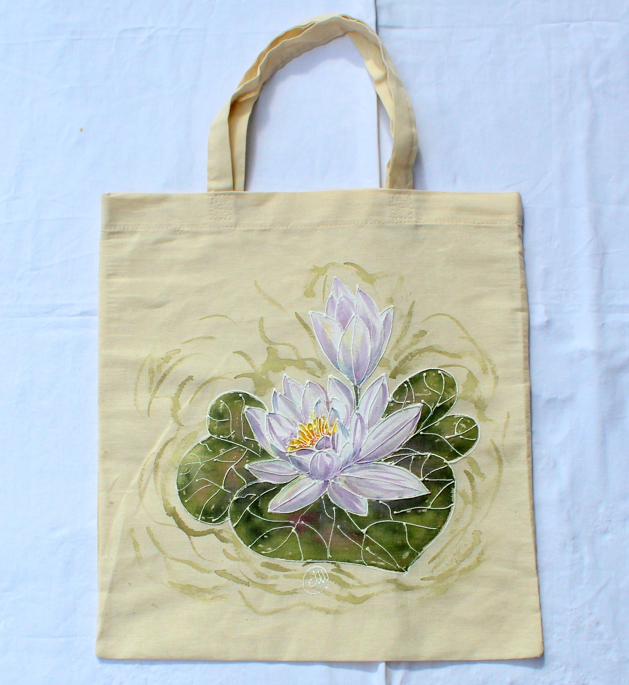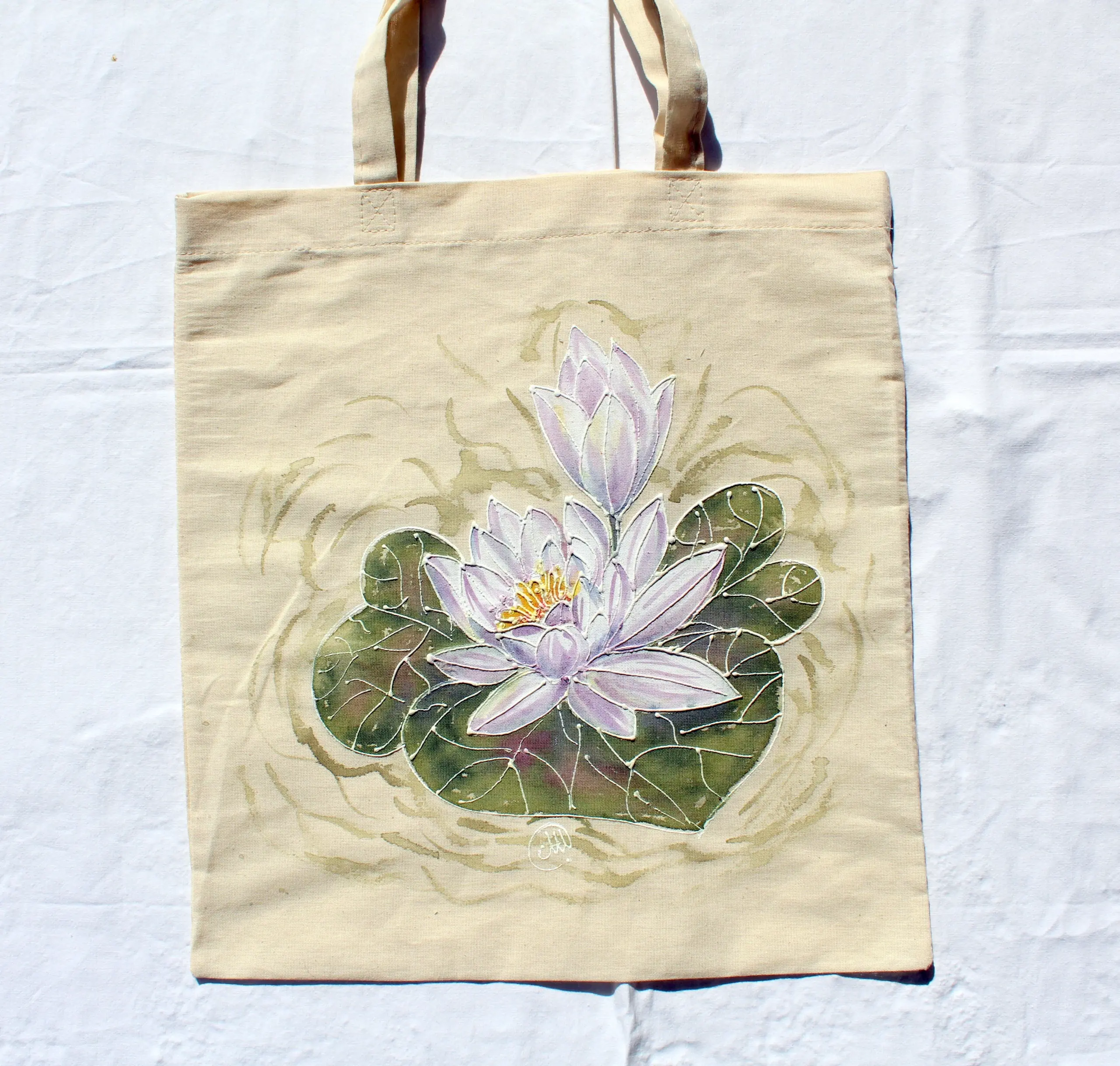 Всяка чанта е уникат, рисувано на ръка върху 100 % органичен памук с мотив.