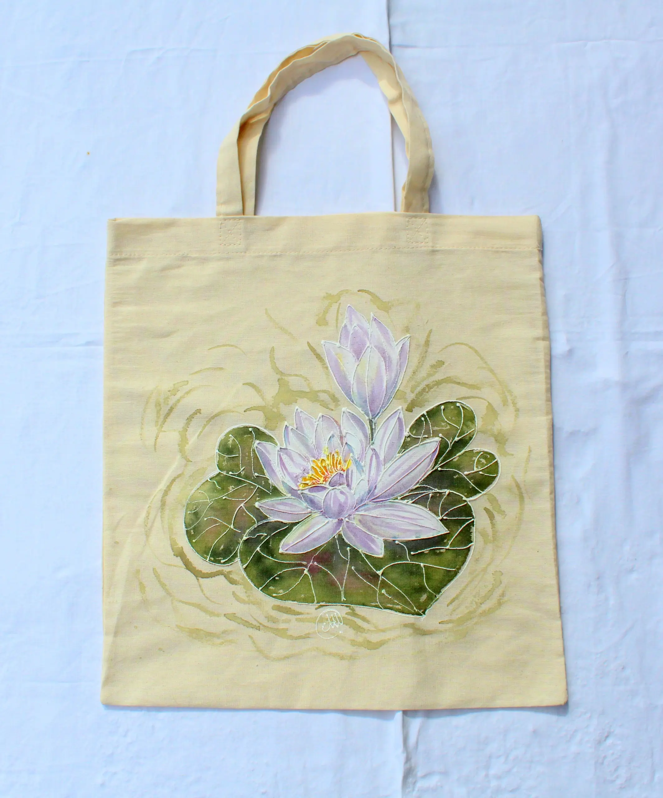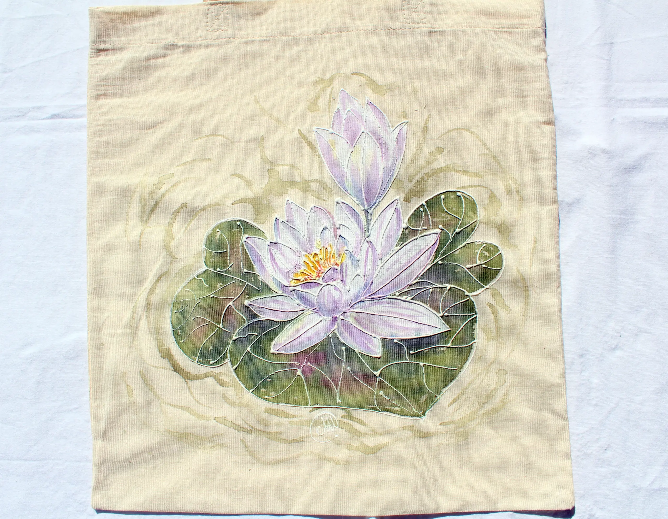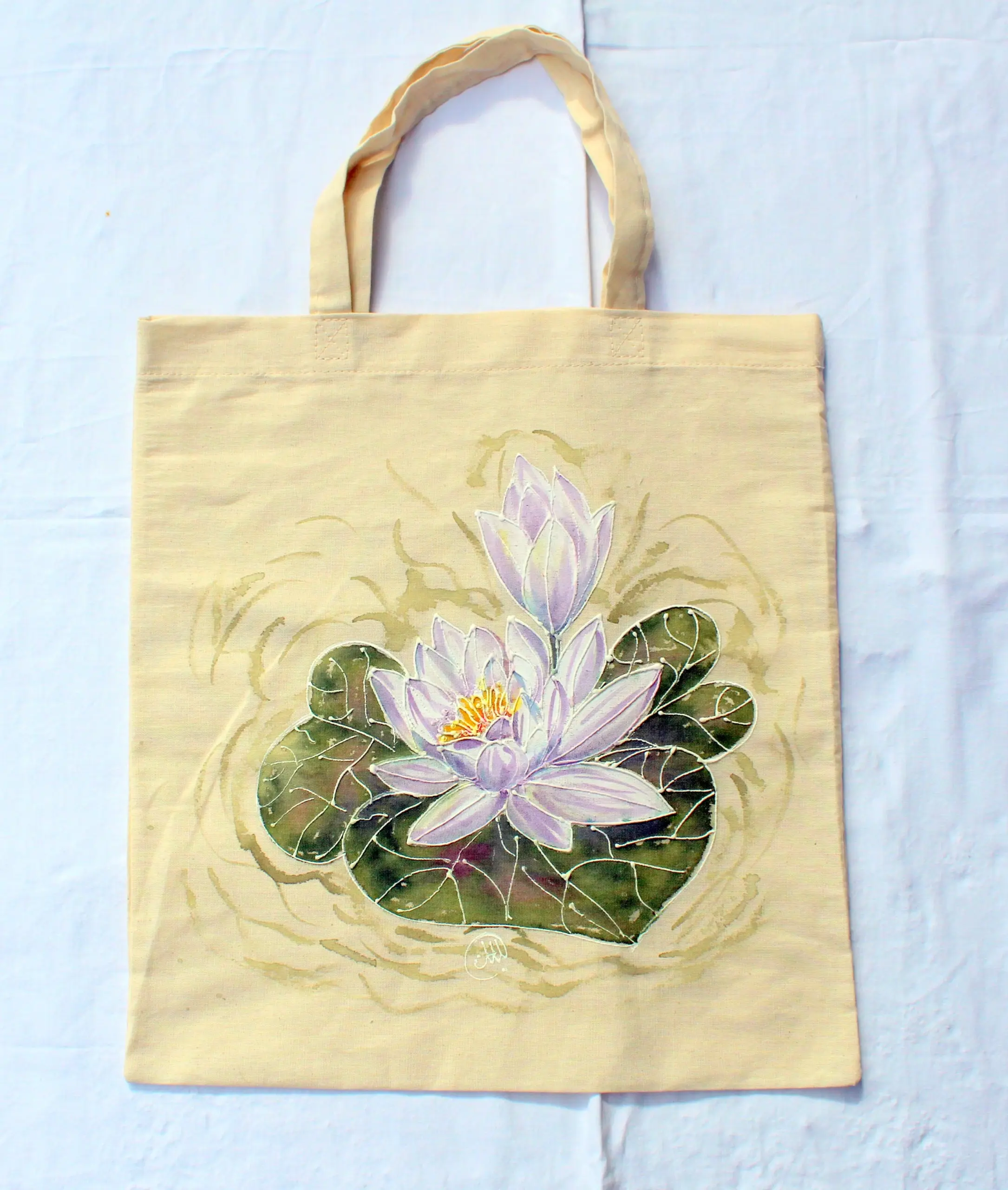 Всяка чанта е уникат, рисувано на ръка върху 100 % органичен памук с мотив.