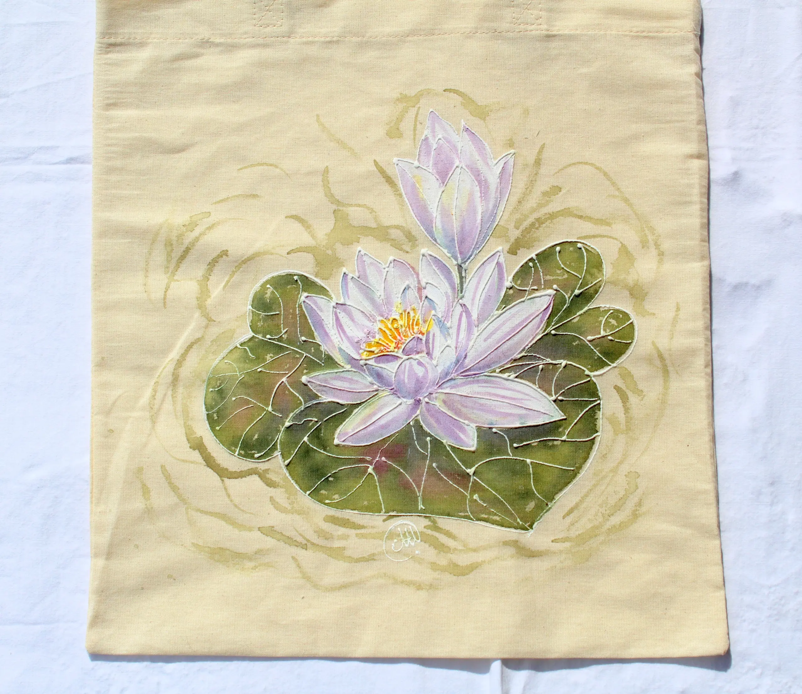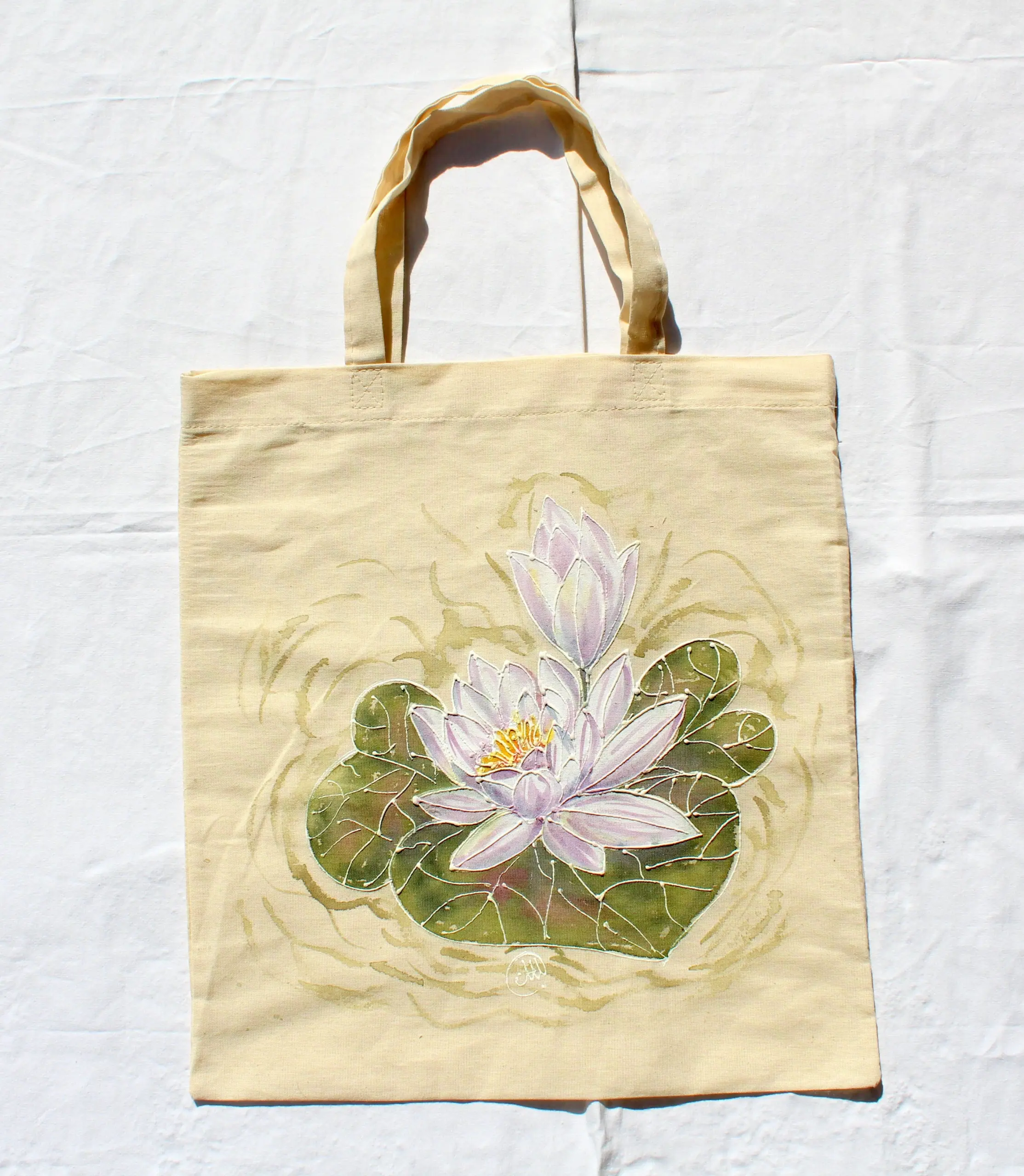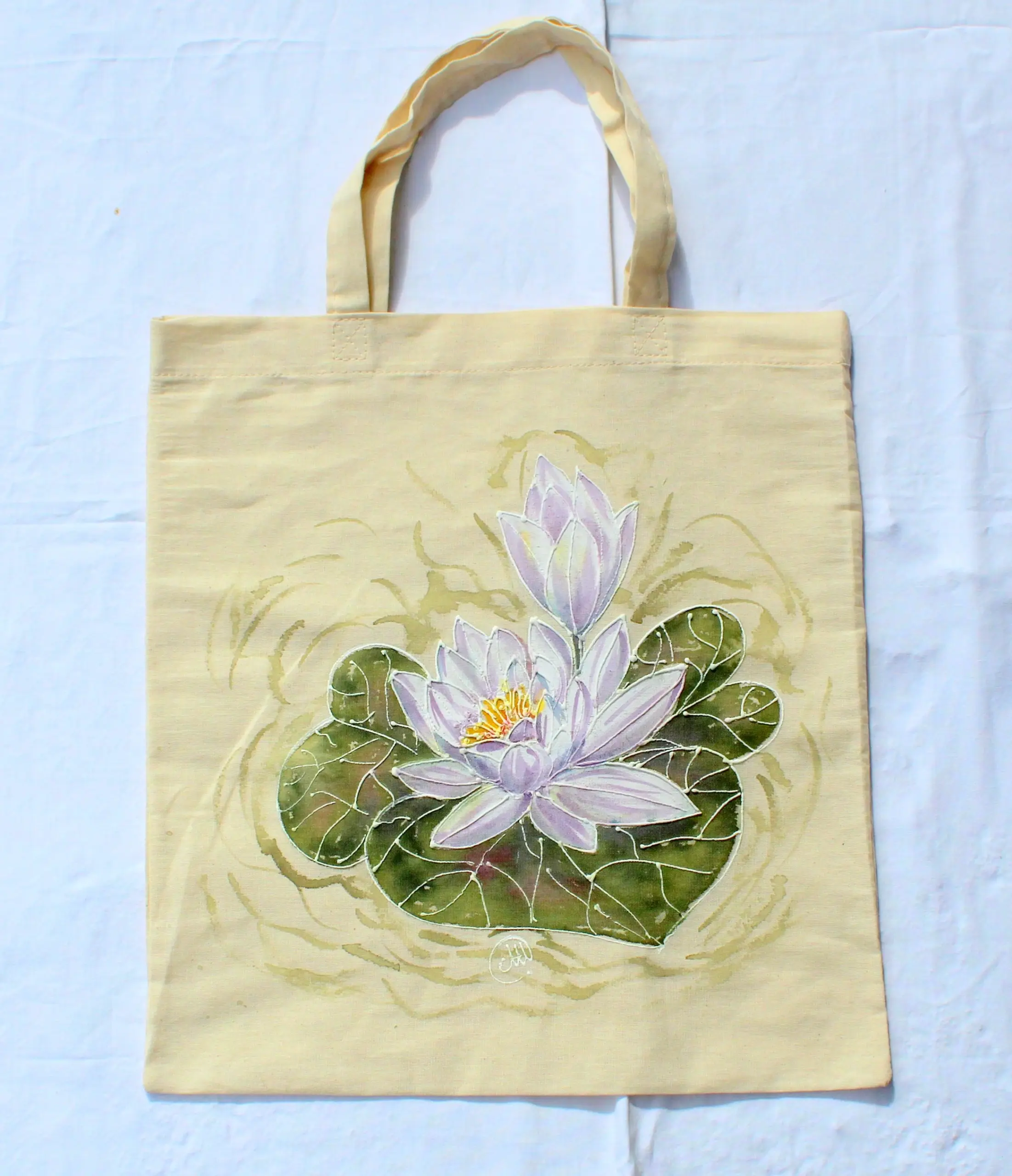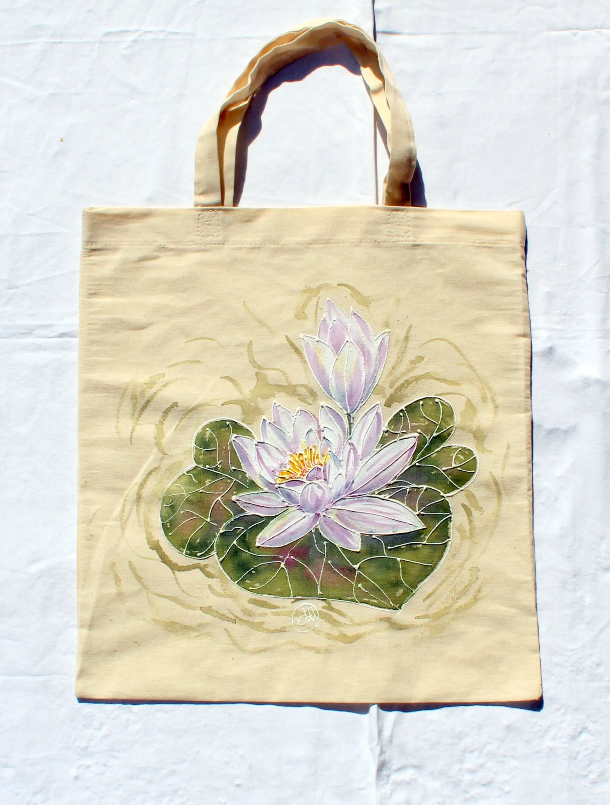 Всяка чанта е уникат, рисувано на ръка върху 100 % органичен памук с мотив.