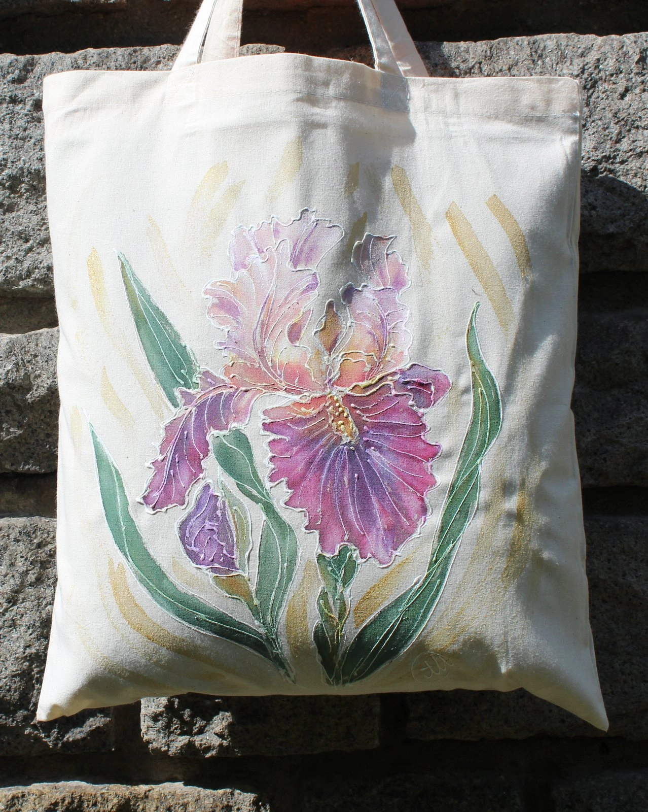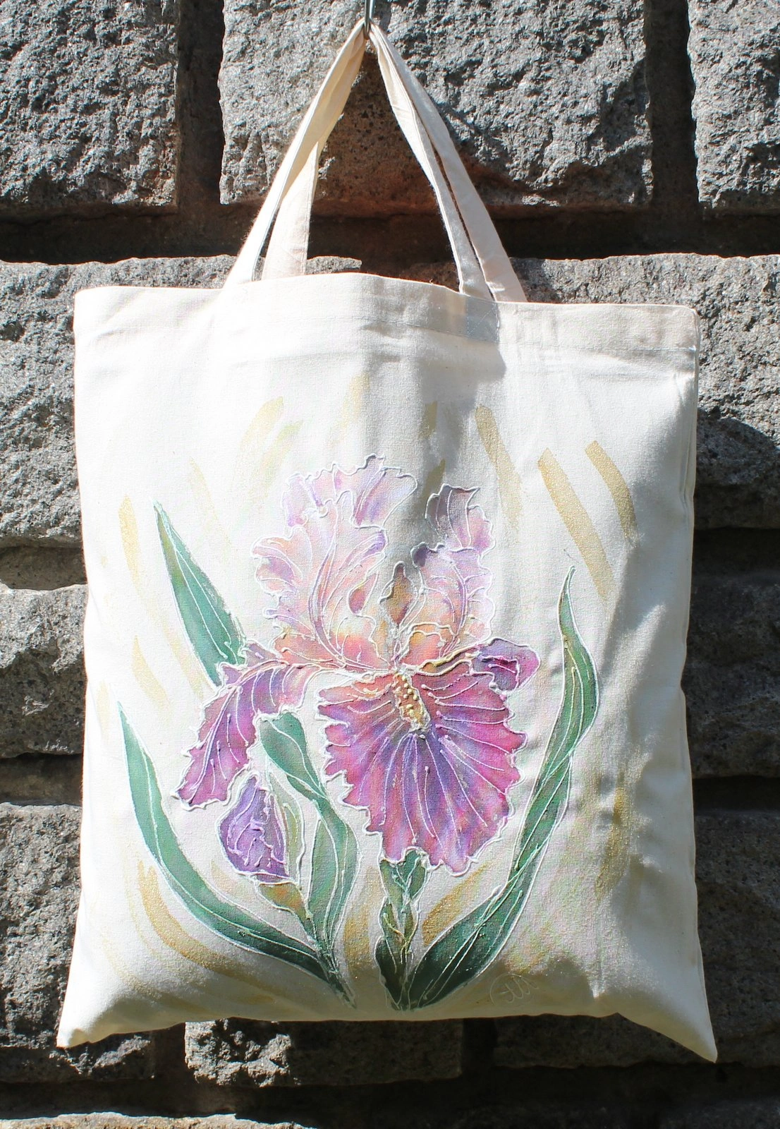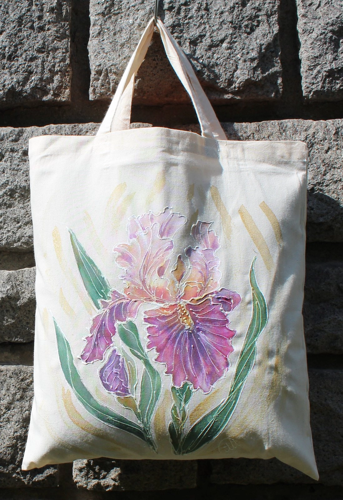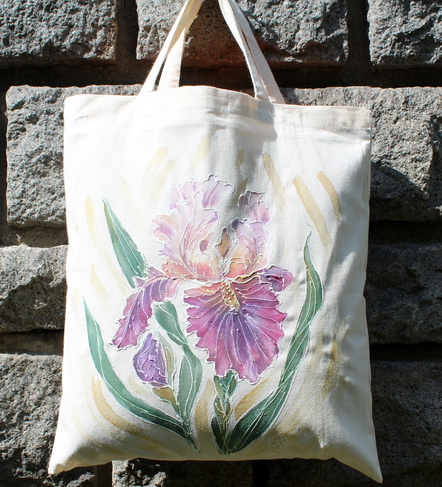 Всяка чанта е уникална, рисувана на ръка върху 100 % органичен памук с мотив.