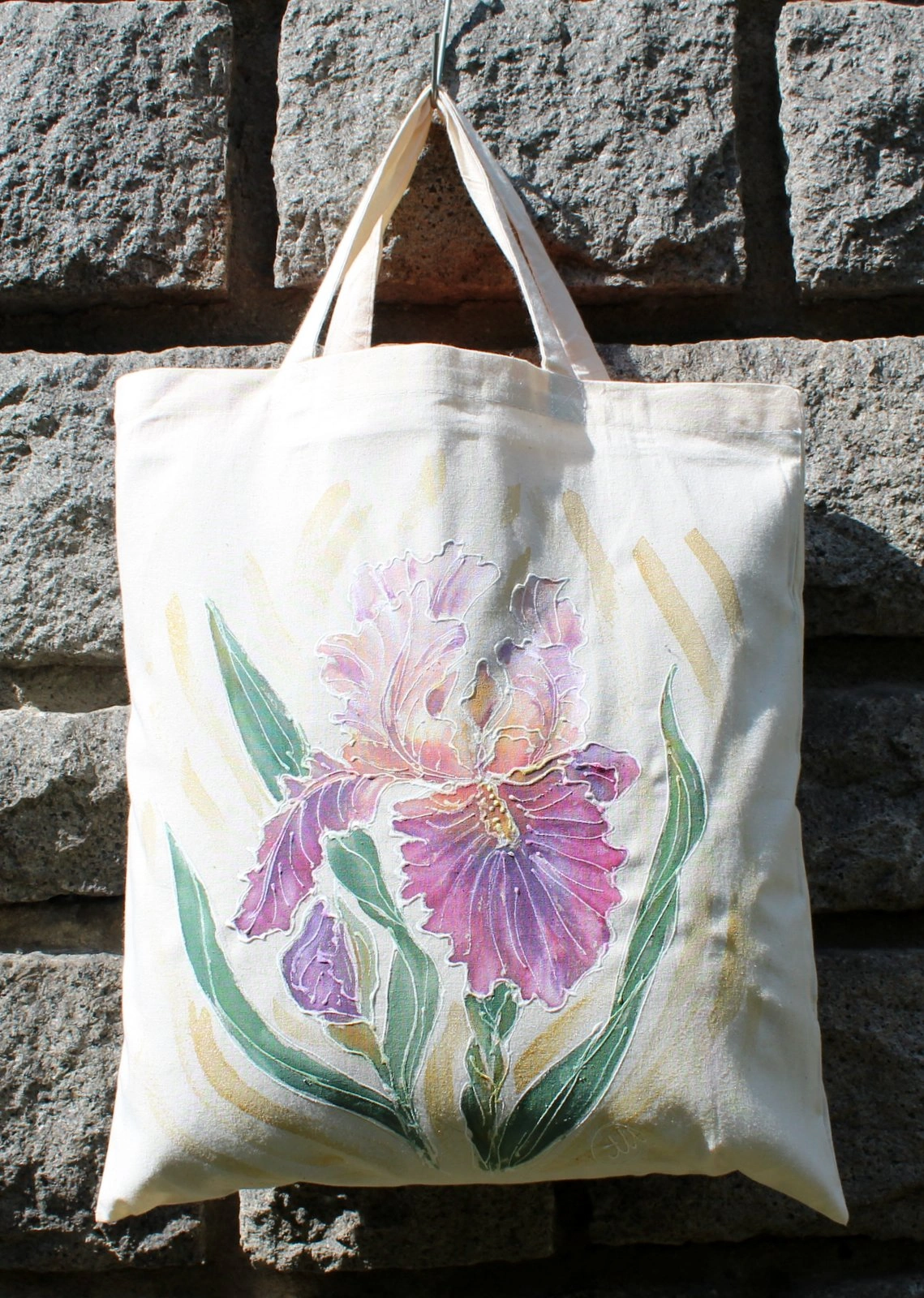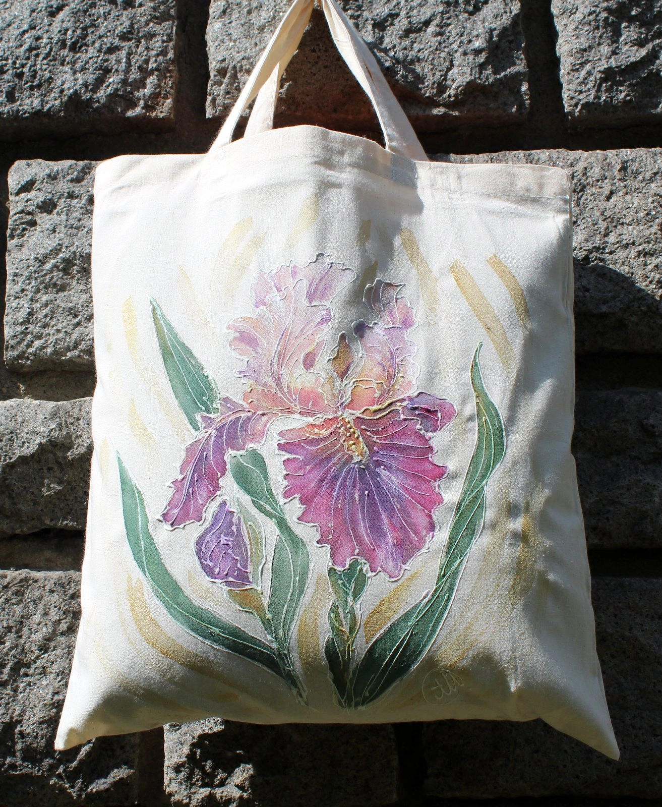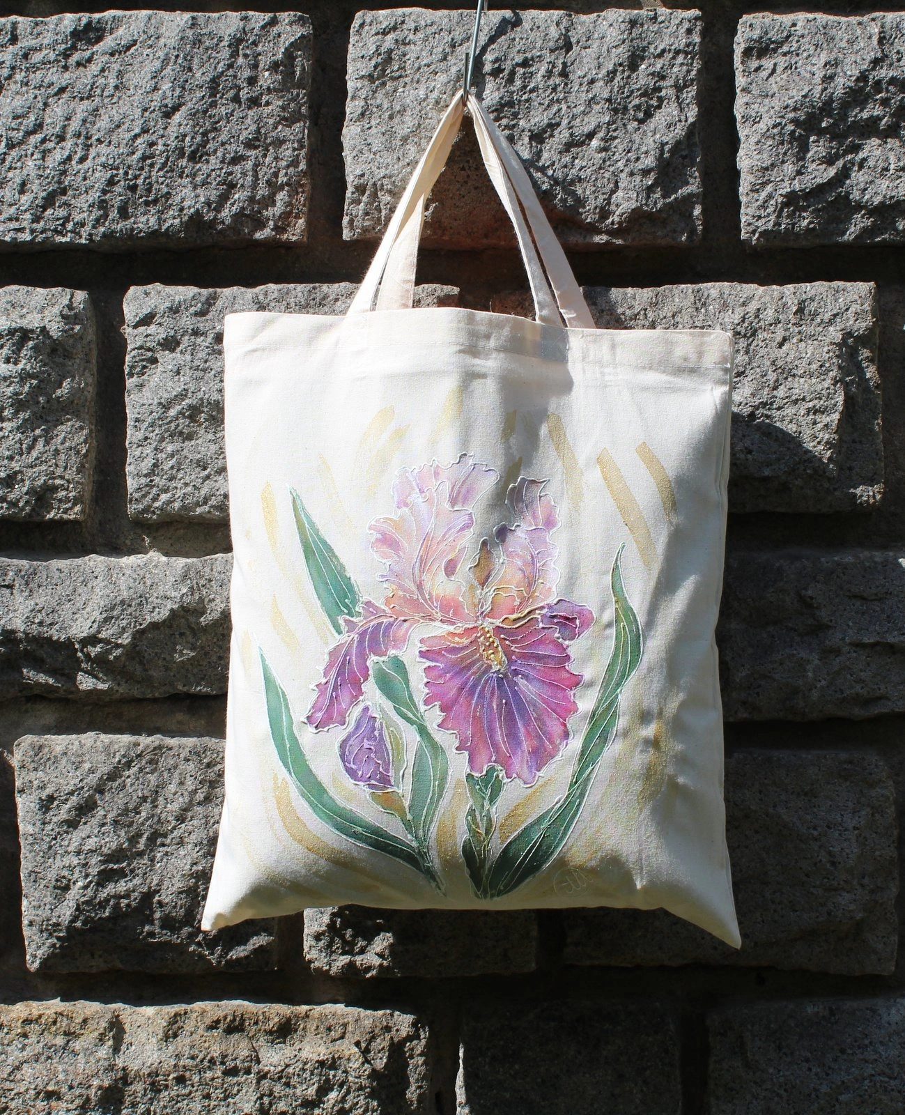 Всяка чанта е уникална, рисувана на ръка върху 100 % органичен памук с мотив.