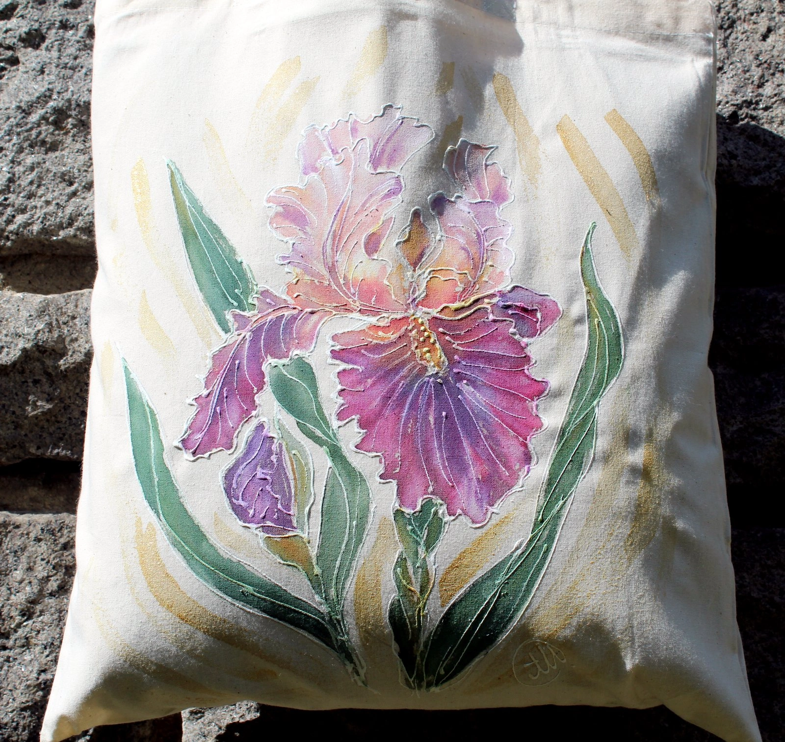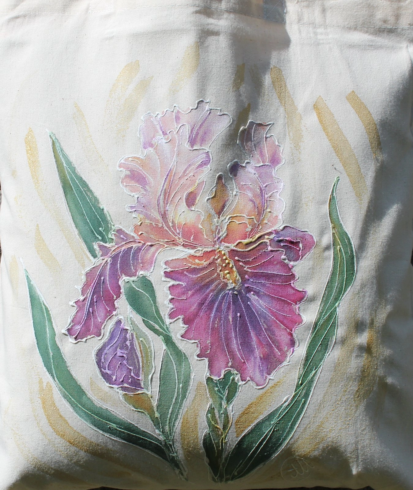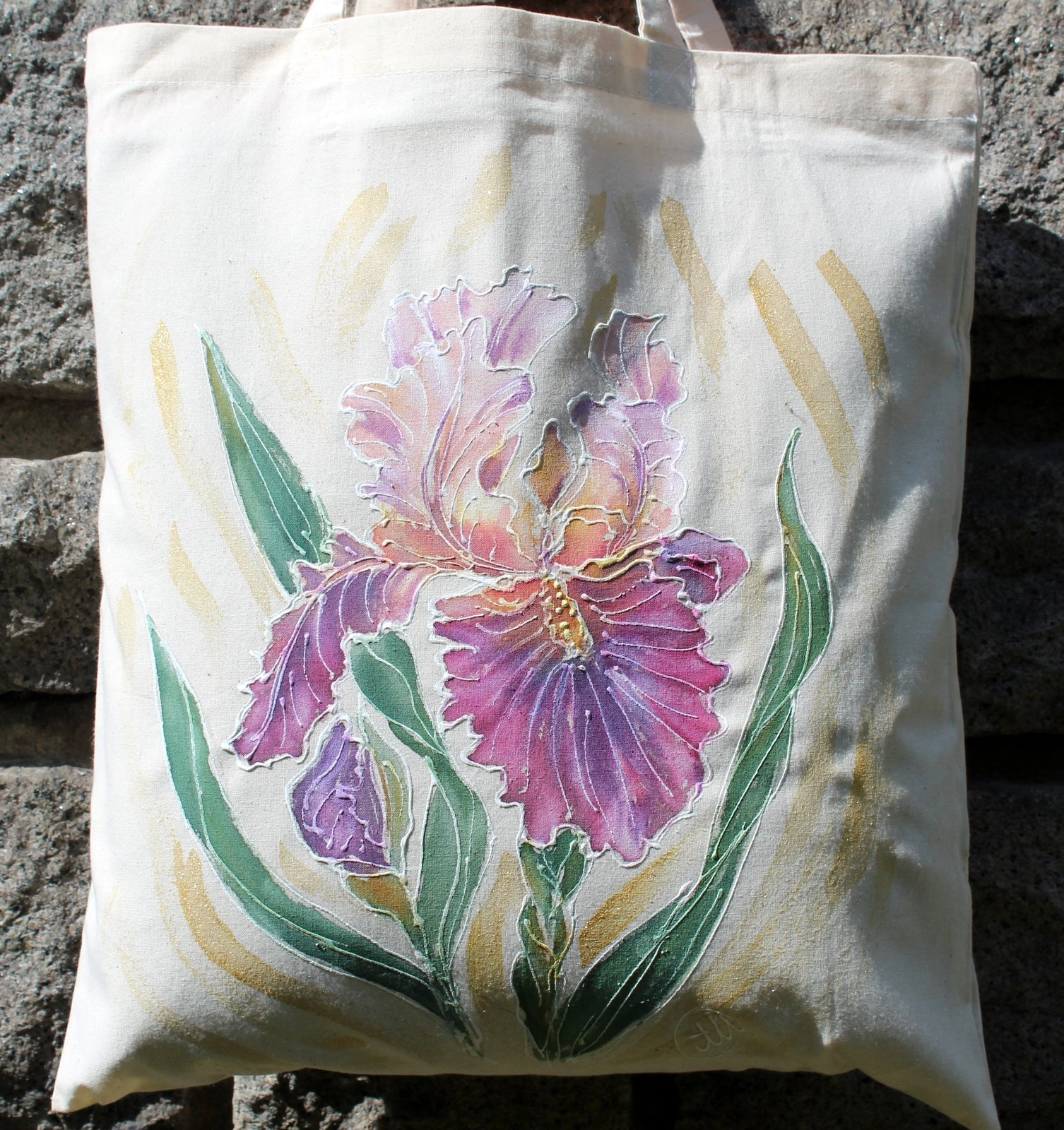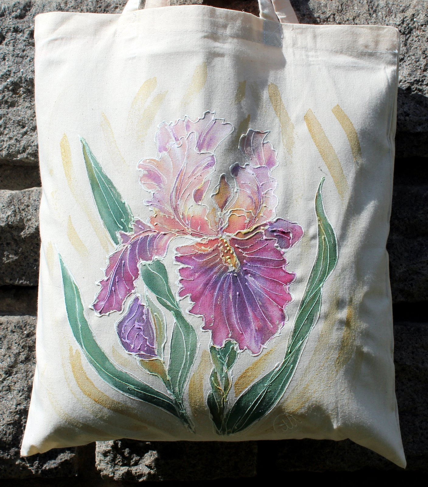 Всяка чанта е уникална, рисувана на ръка върху 100 % органичен памук с мотив.