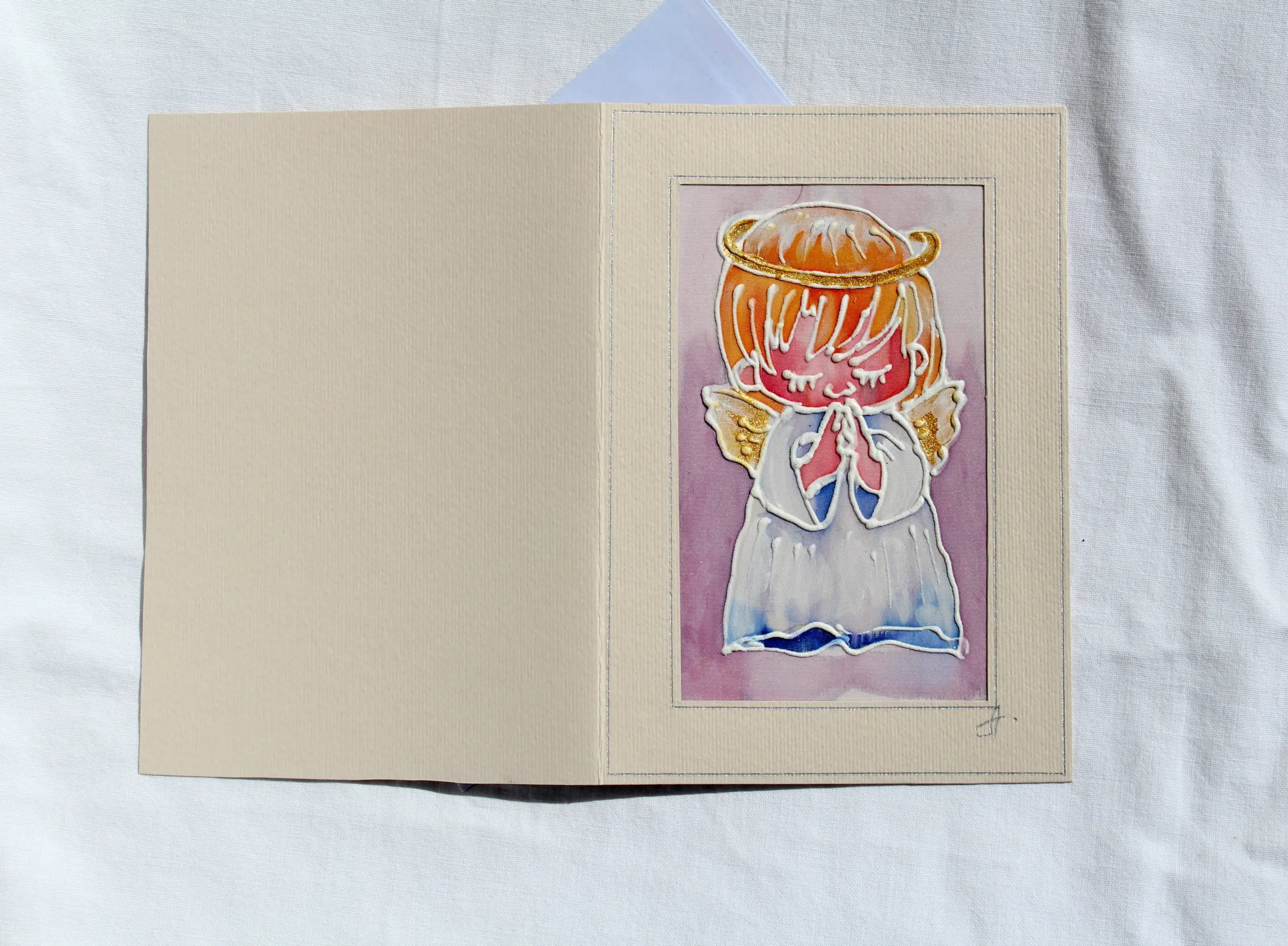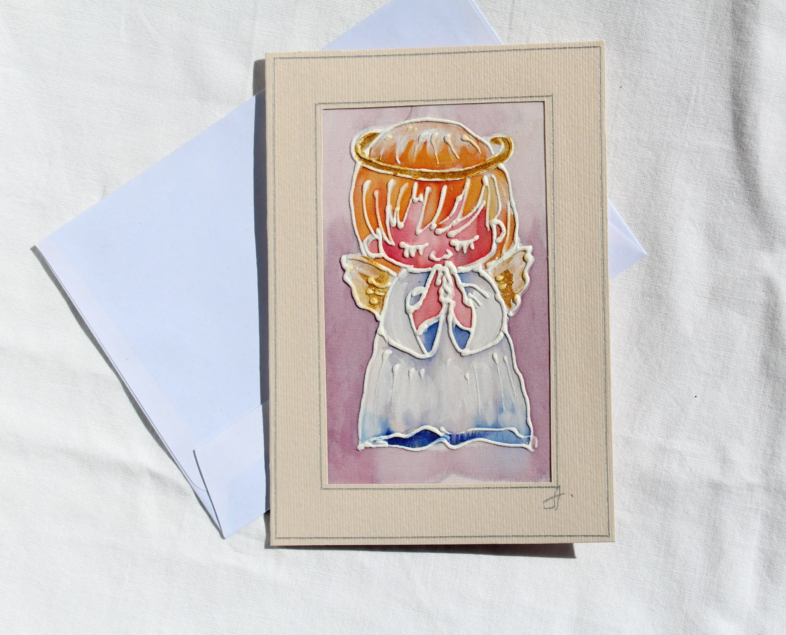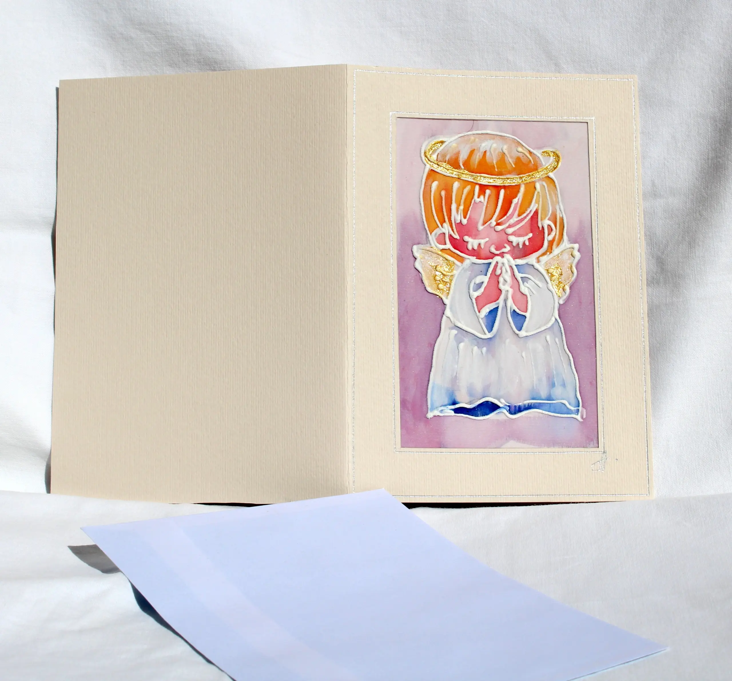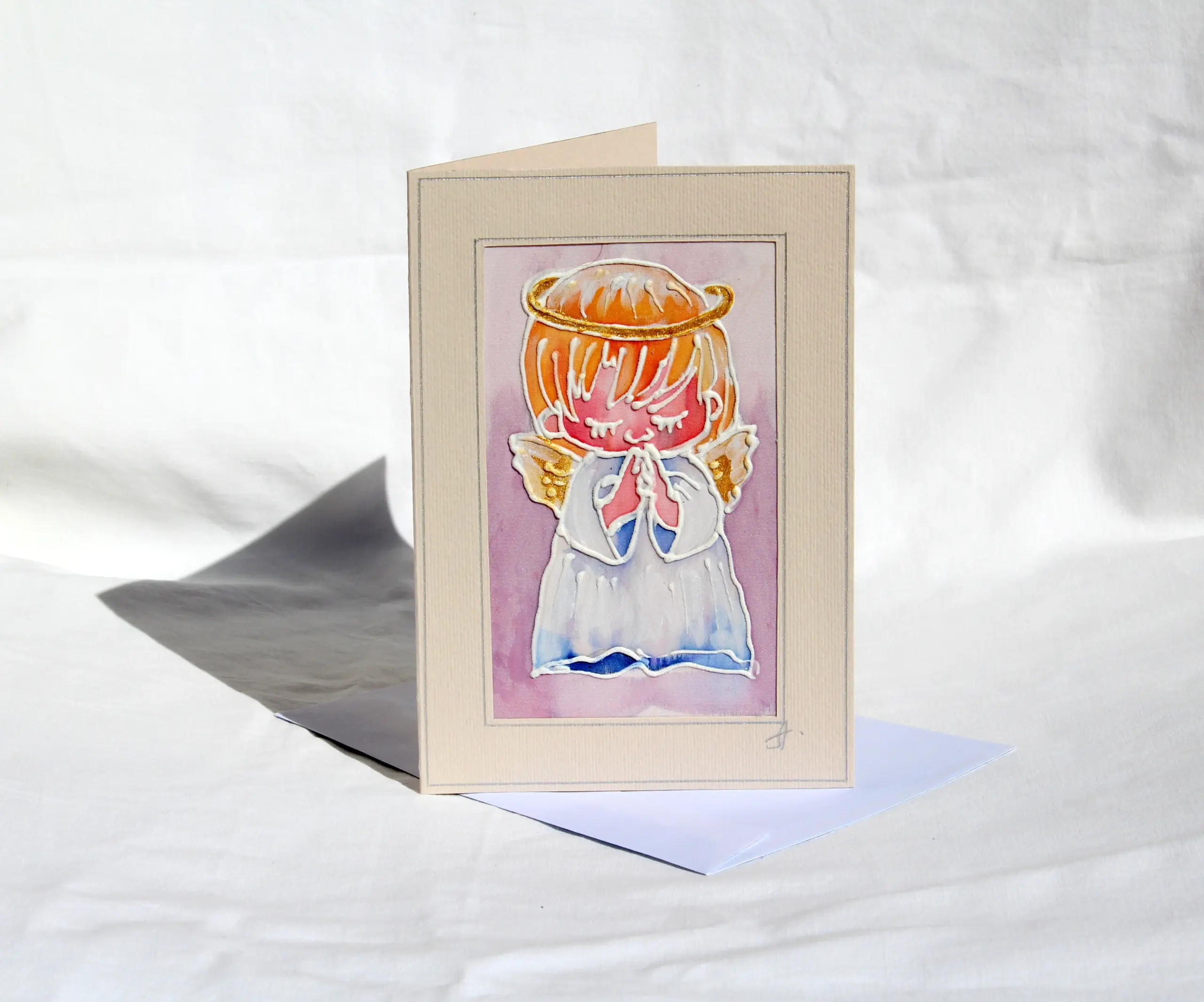 Картичката за кръщене с ангелче в бяло е символ на чистота, благодат и любов. Това е не просто картичка, а спомен, който ще остане ценен през годините и ще напомня за светлината и радостта на този ден.