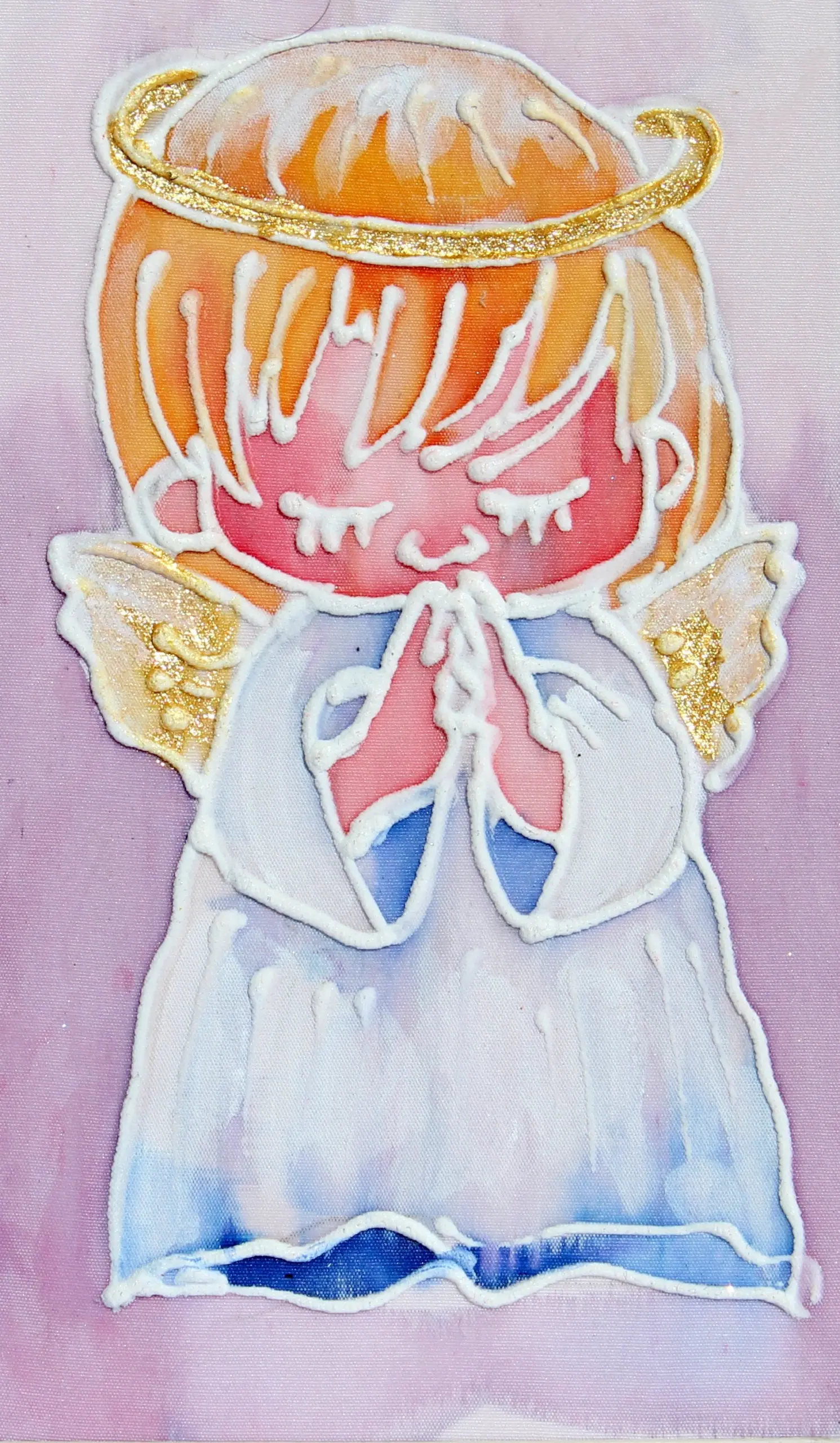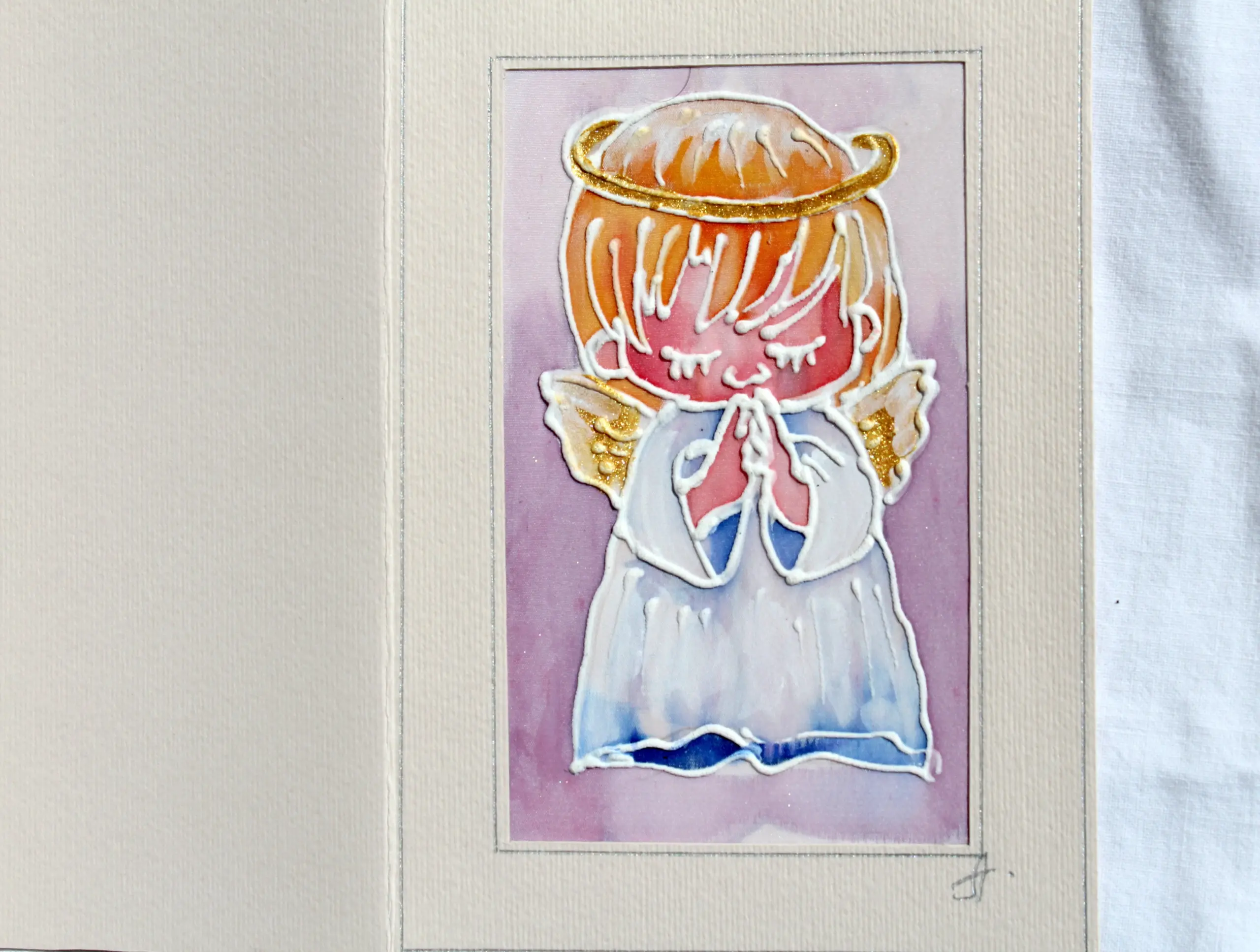 • Рисувана с екологични бои на водна основа (немски „Marabu“) и релефен контур