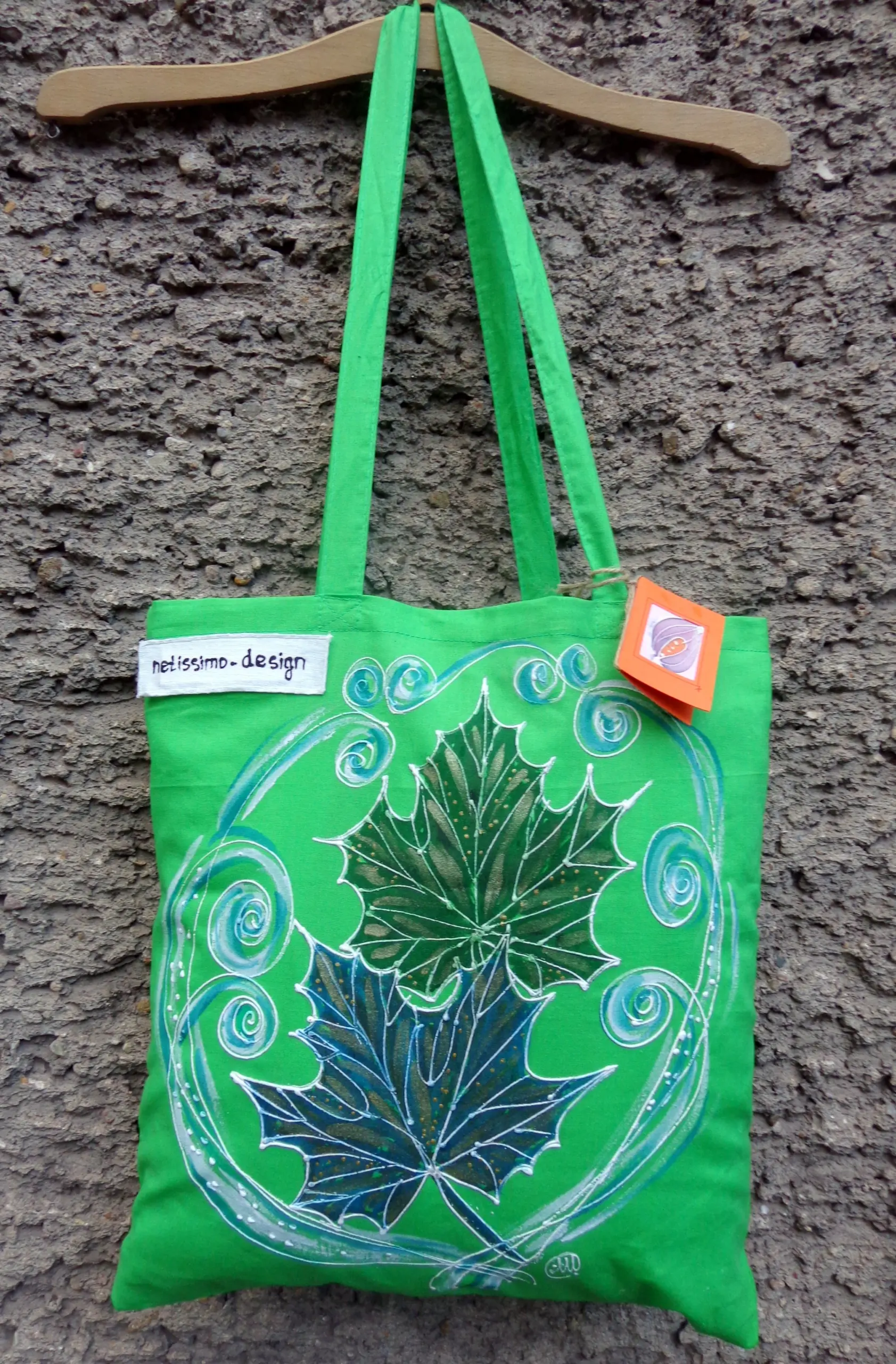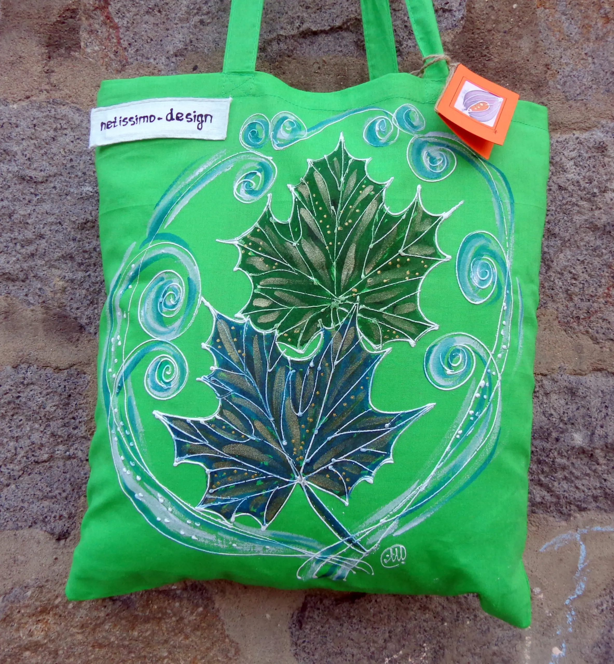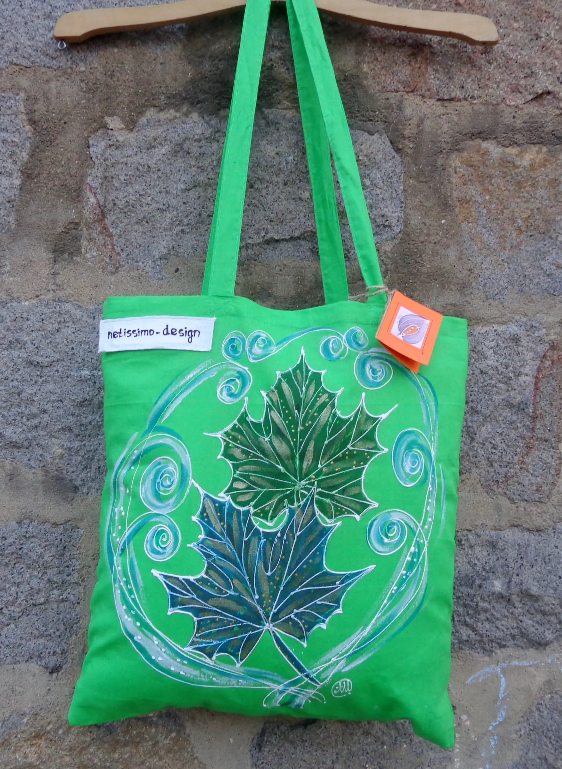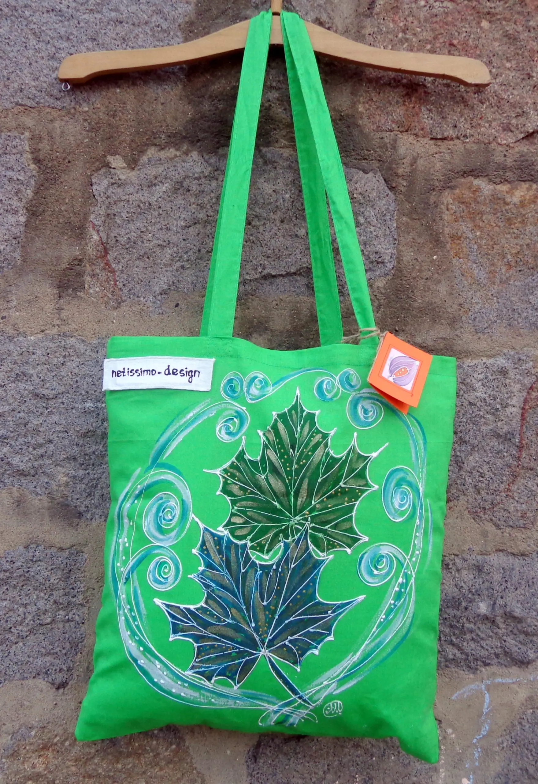 Всеки чанта е уникат, рисуван на ръка върху 100 % органичен памук с мотив.