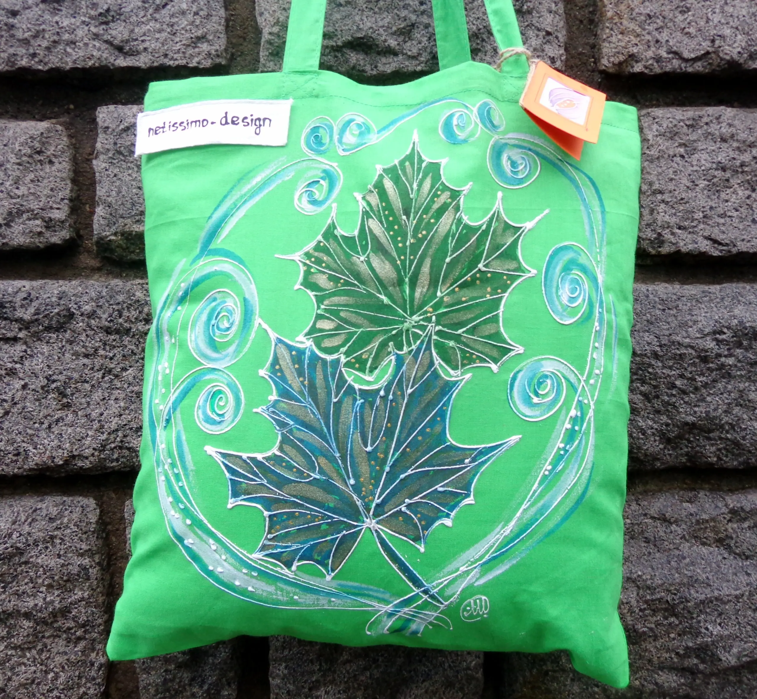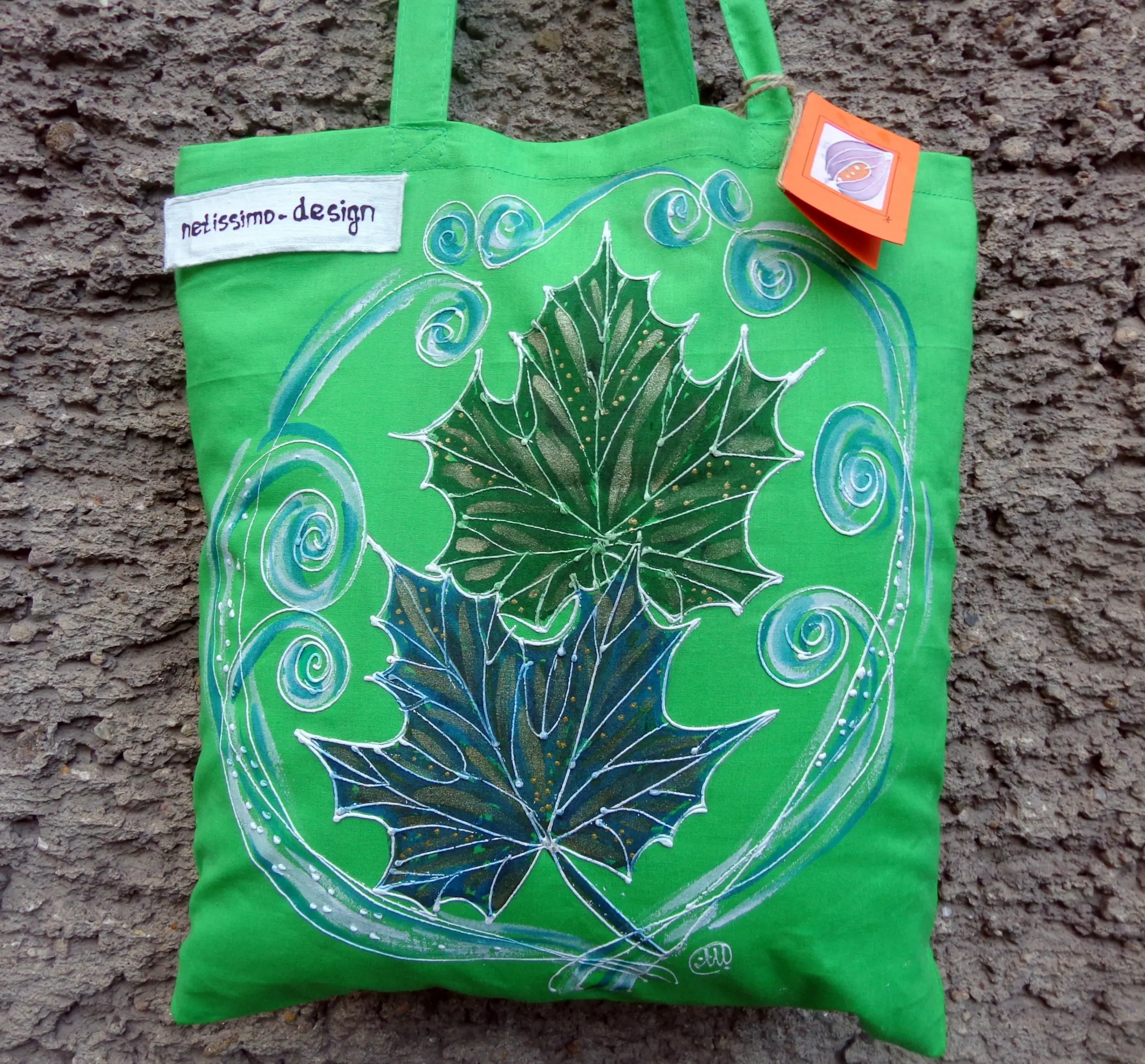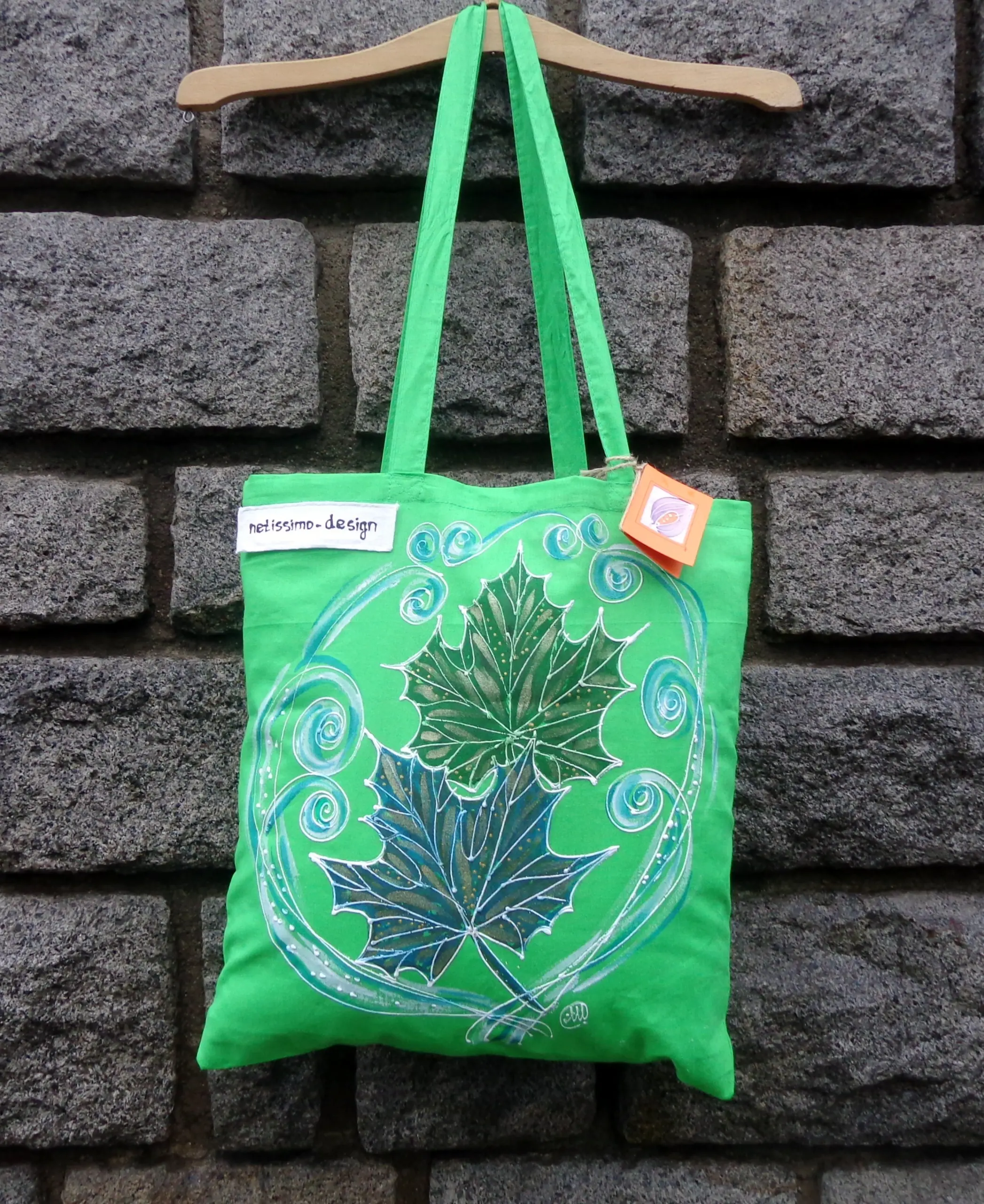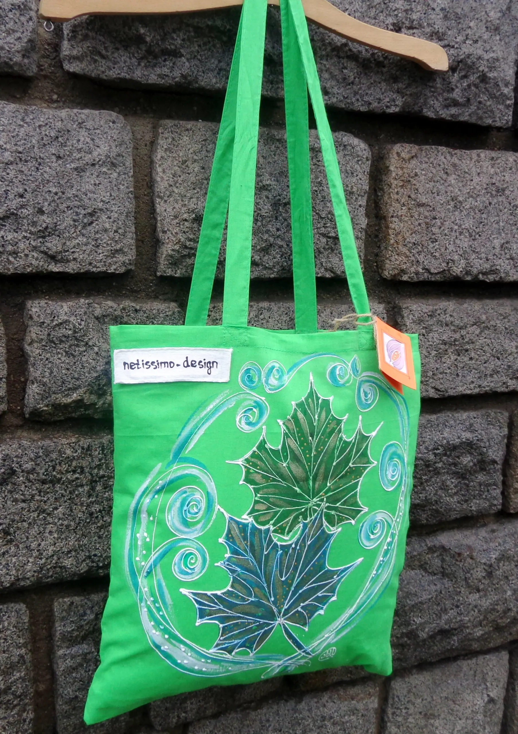 Всеки чанта е уникат, рисуван на ръка върху 100 % органичен памук с мотив.