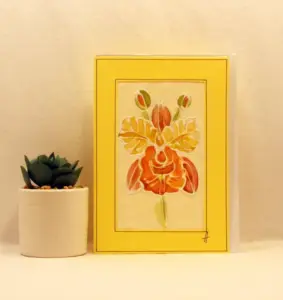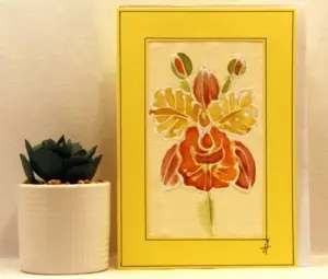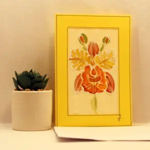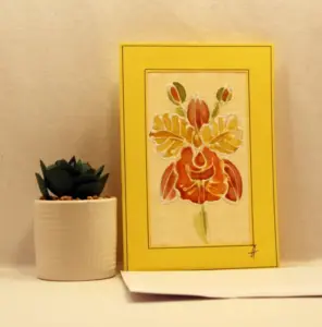– Рисувана с екологични бои на водна основа (немски „Marabu“) и релефен контур