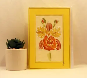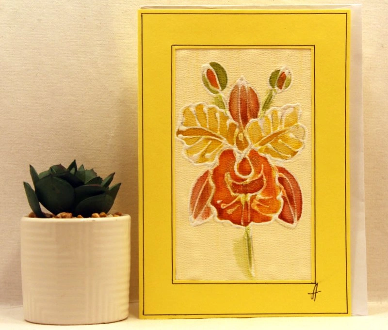 Всяка наша картичка е уникално ръчно рисувано произведение върху естествена коприна.