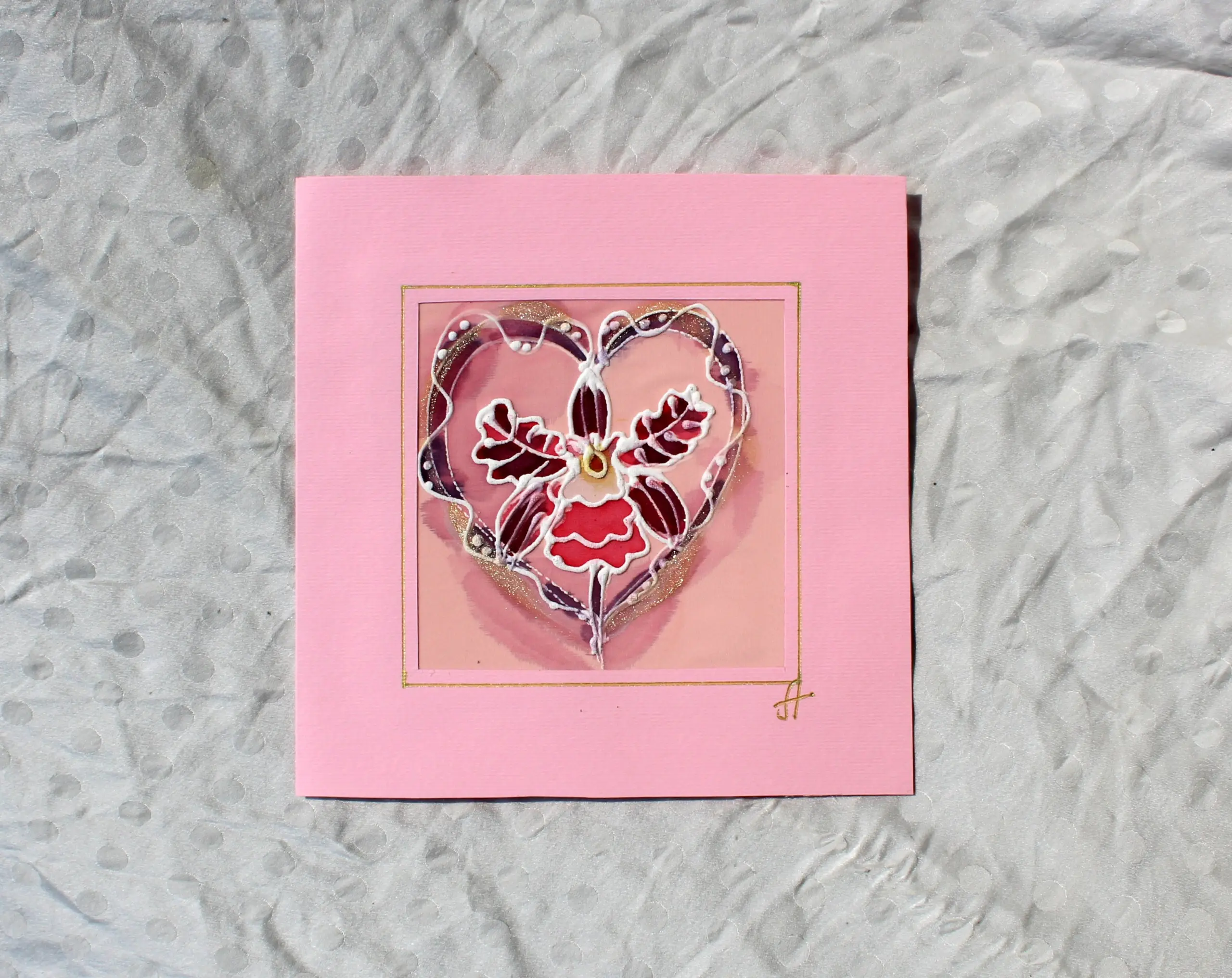 Всяка наша картичка е уникално ръчно рисувано произведение върху естествена коприна.