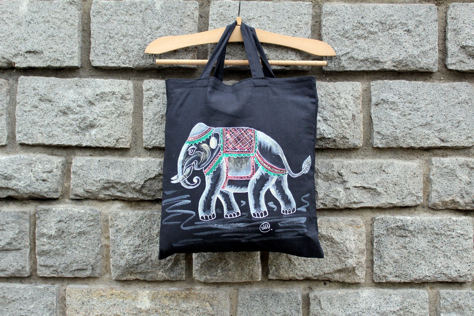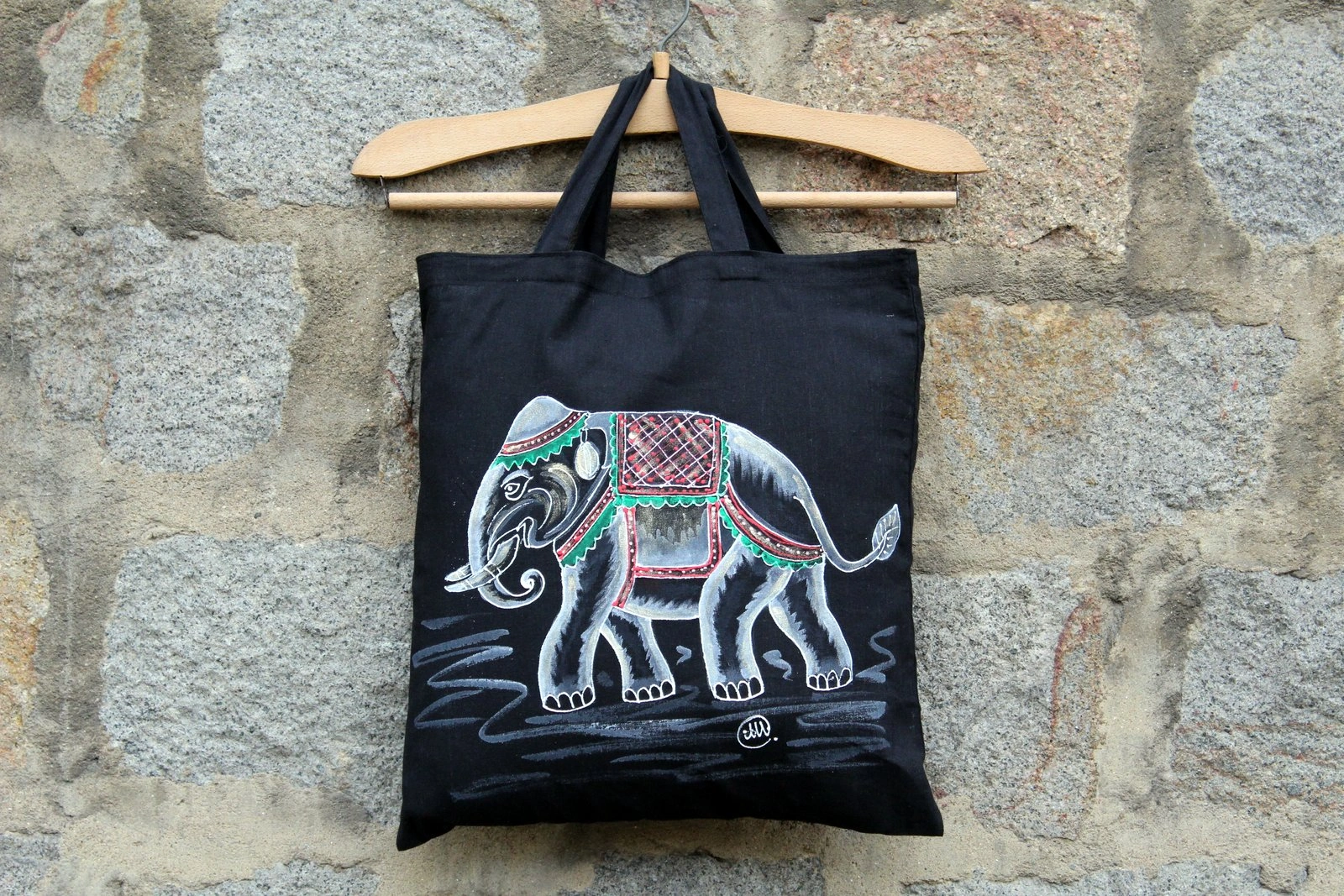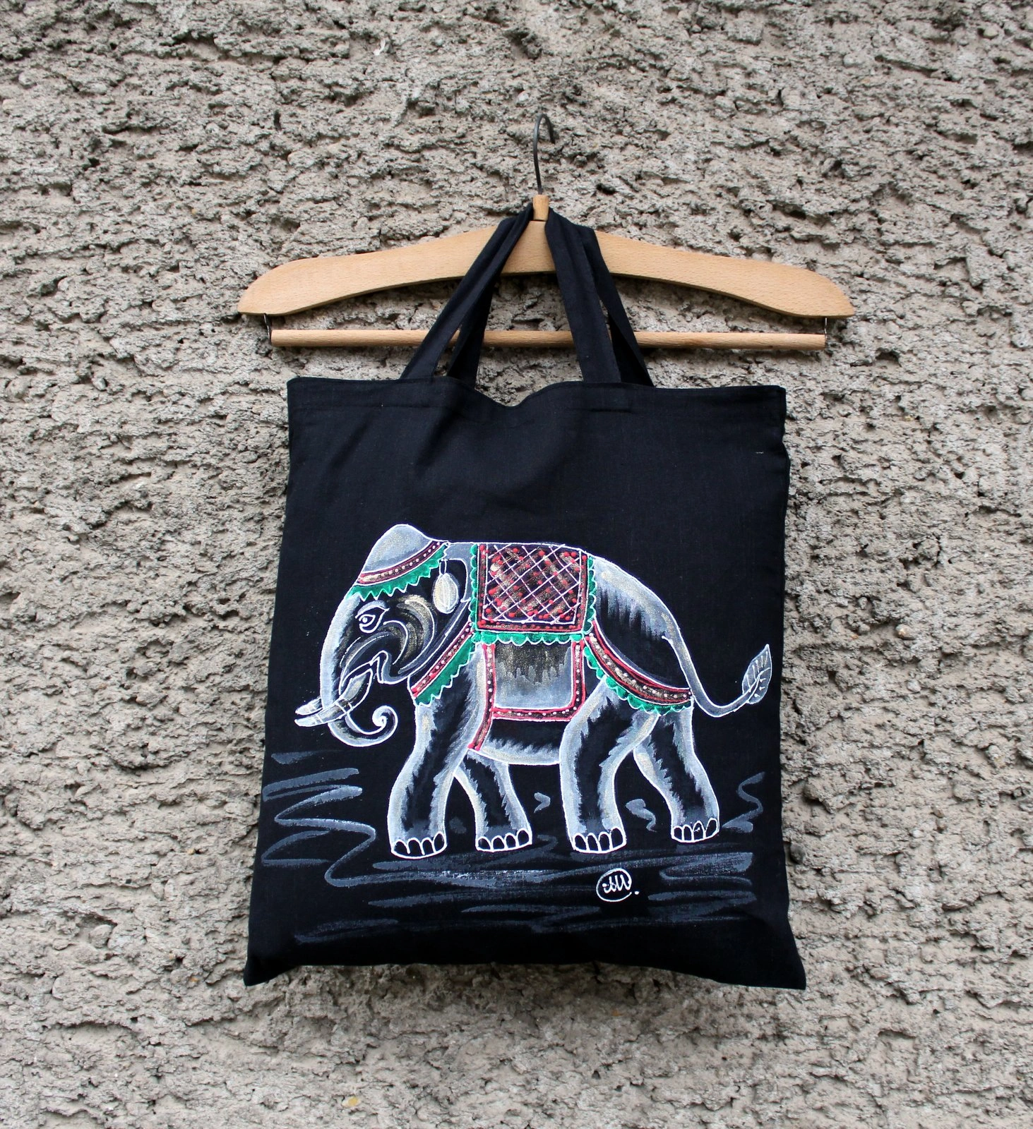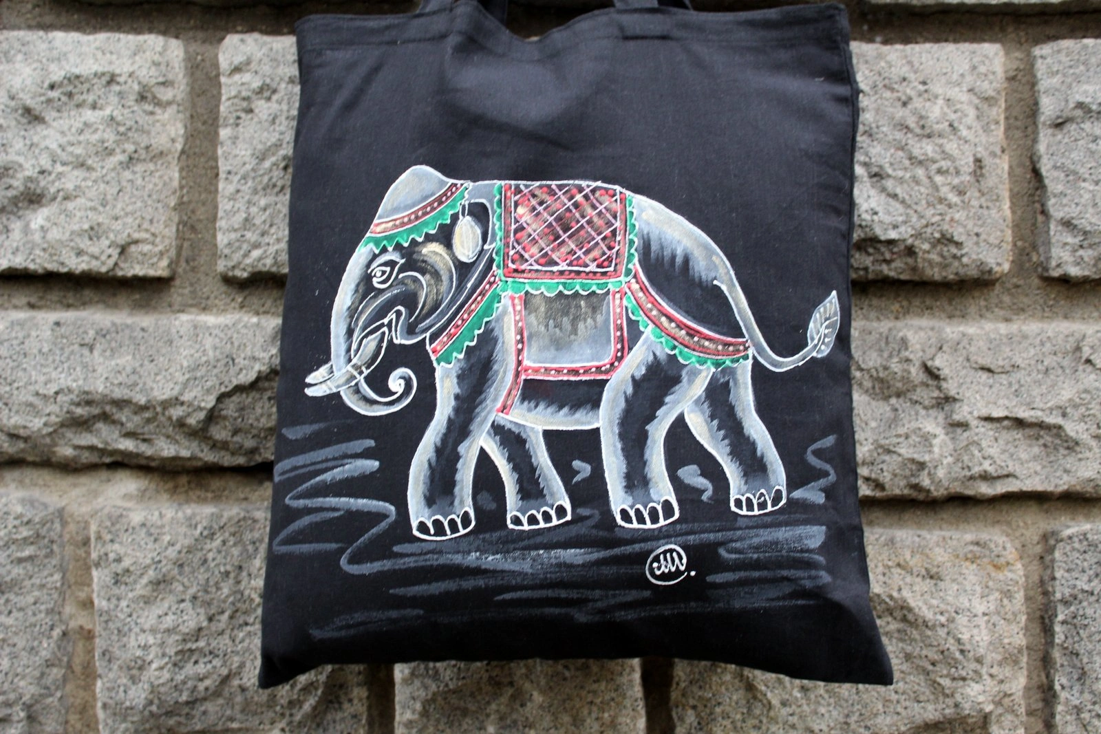 Всяка чанта е уникат, рисувано на ръка върху 100 % органичен памук с мотив.