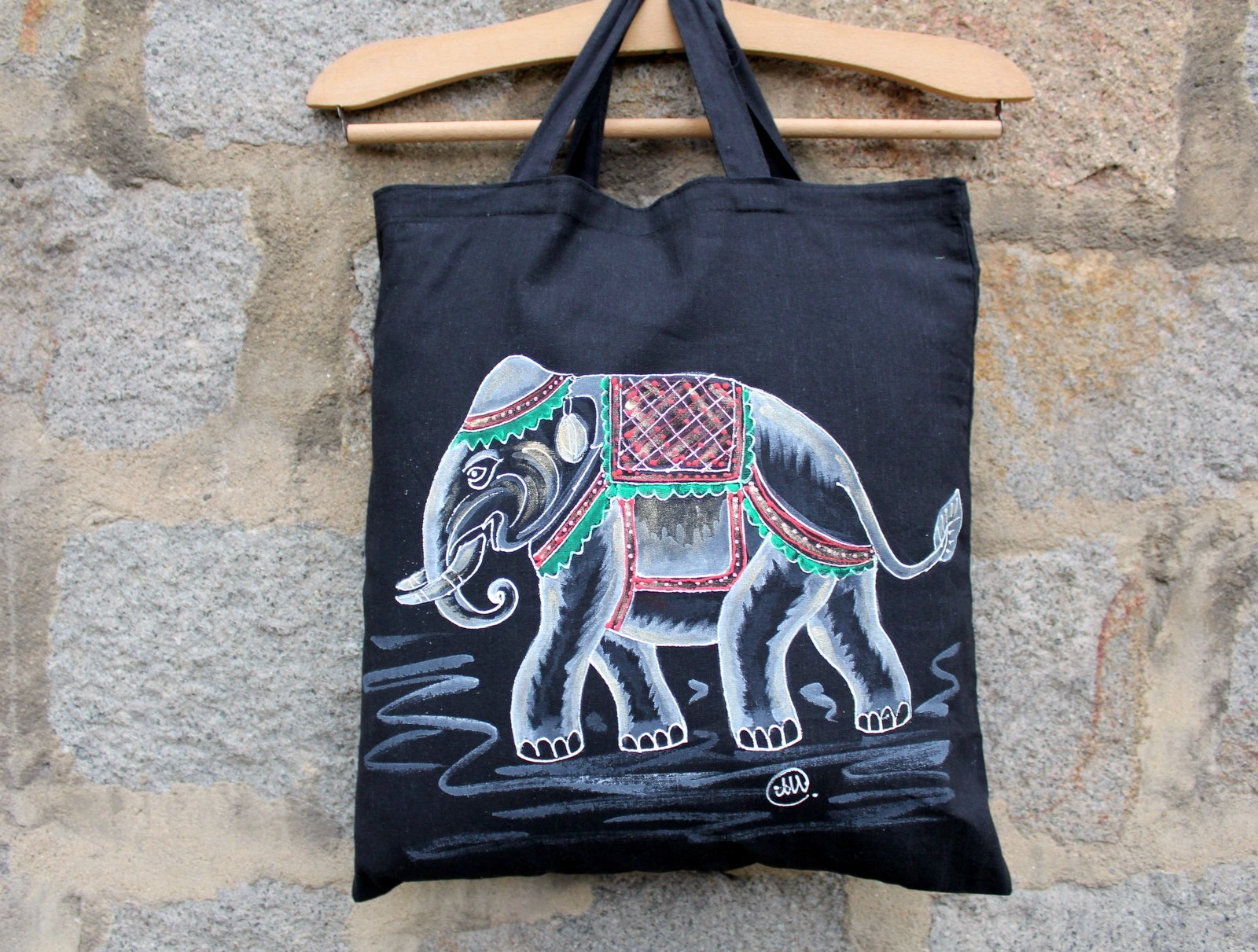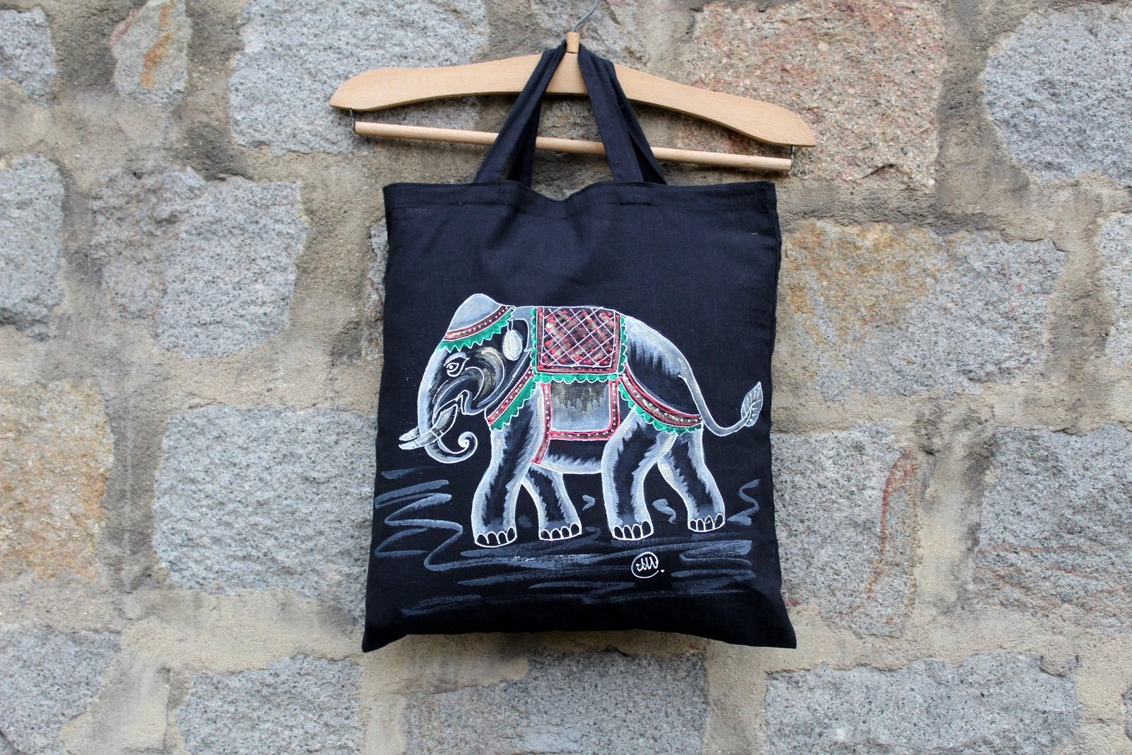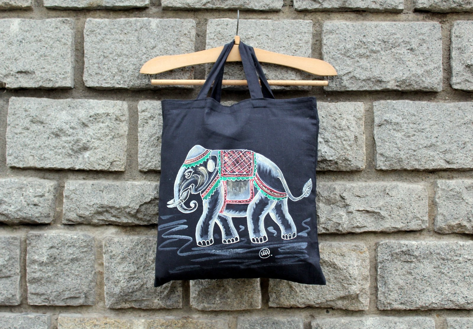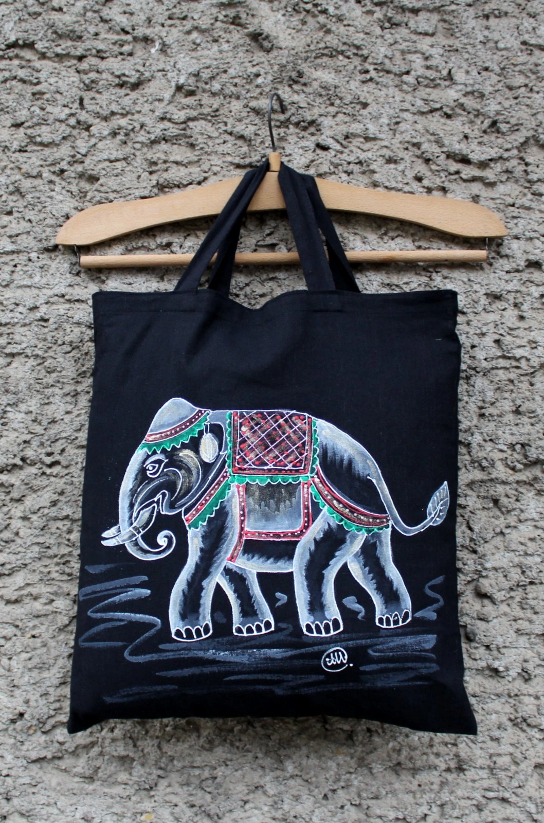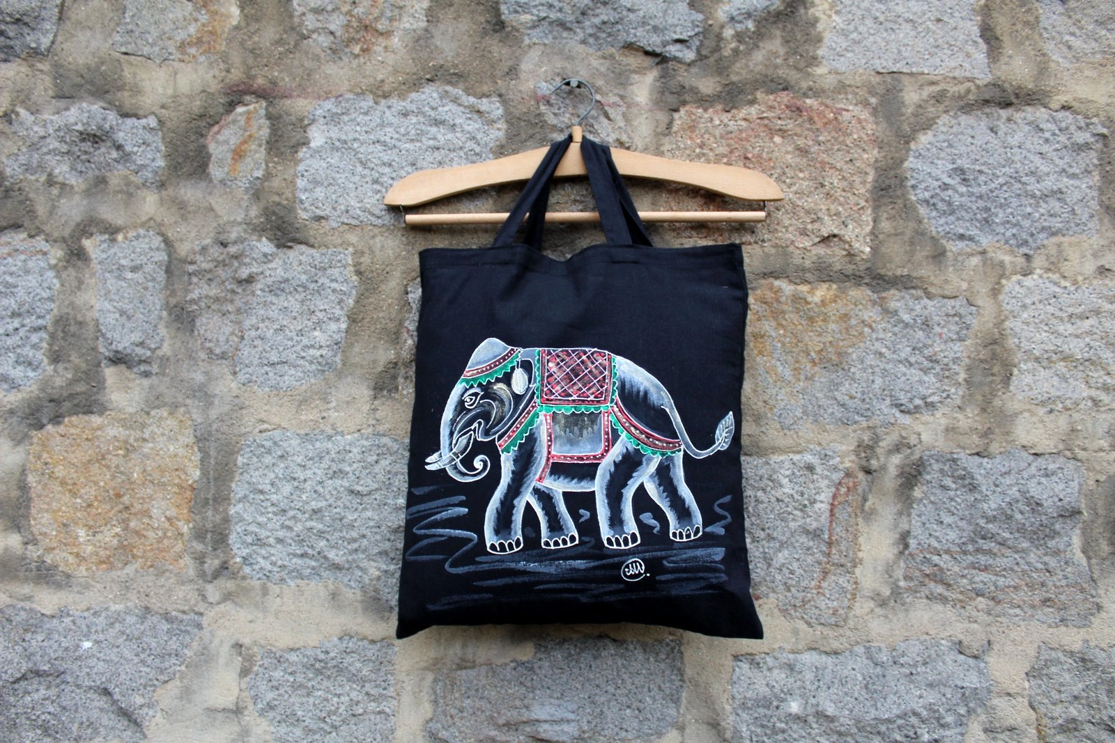 Всяка чанта е уникат, рисувано на ръка върху 100 % органичен памук с мотив.