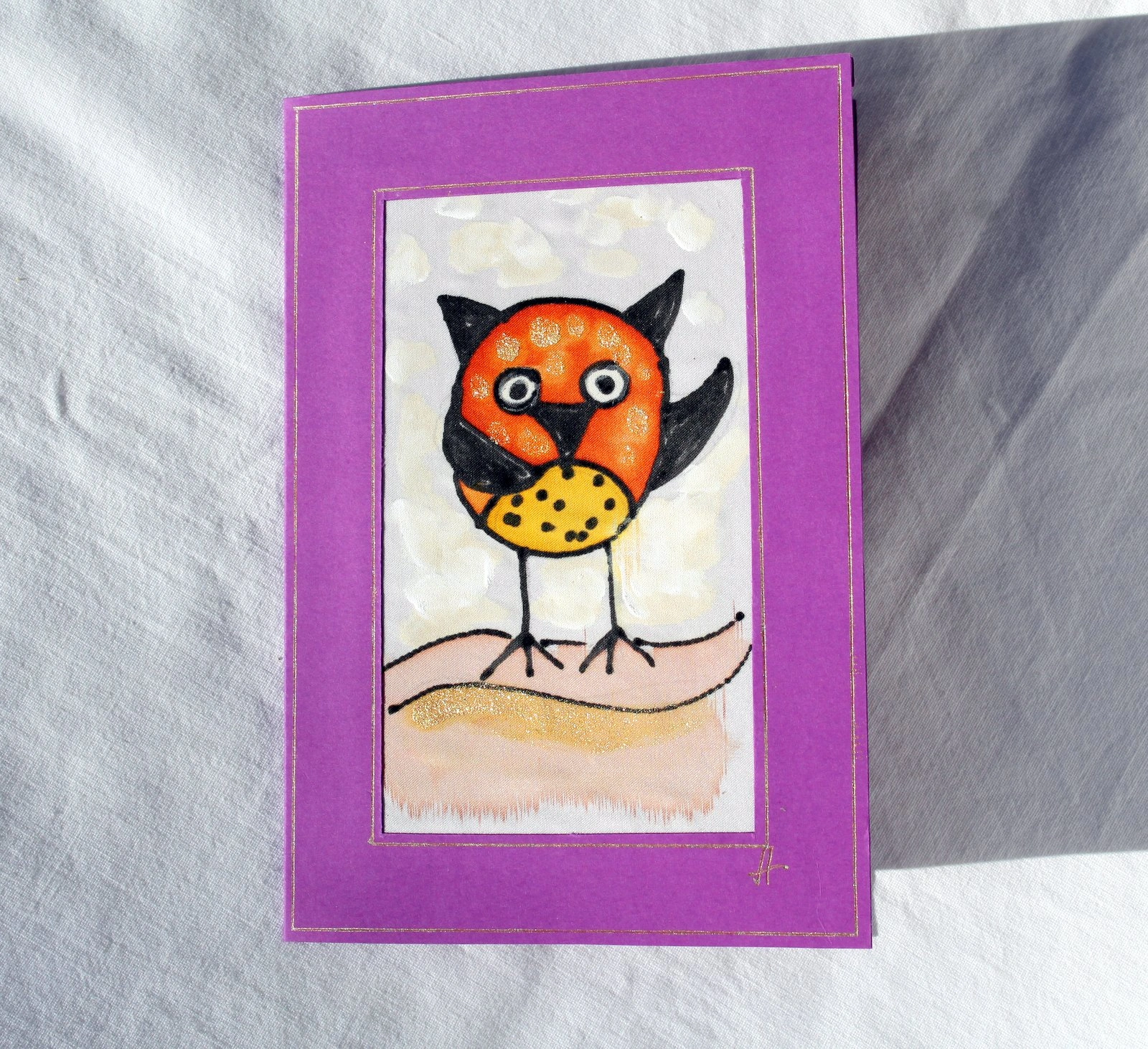 • Рисувана с екологични бои на водна основа (немски „Marabu“) и релефен контур