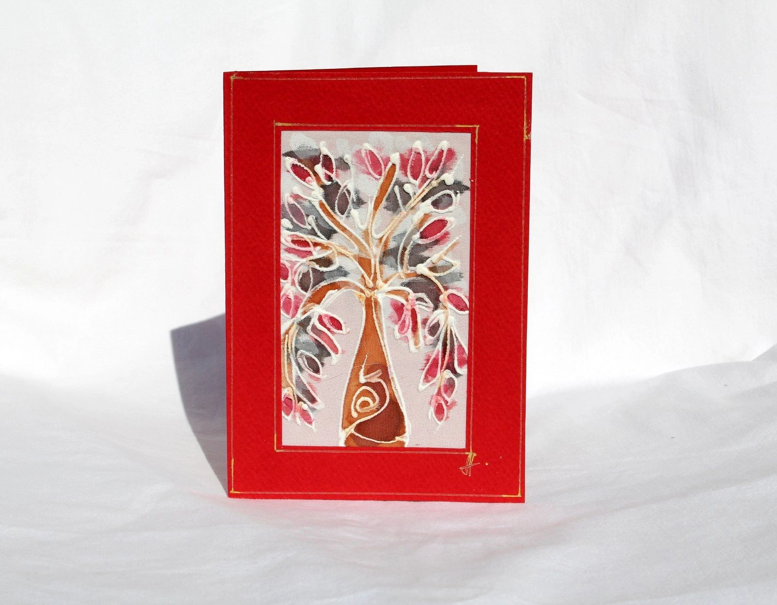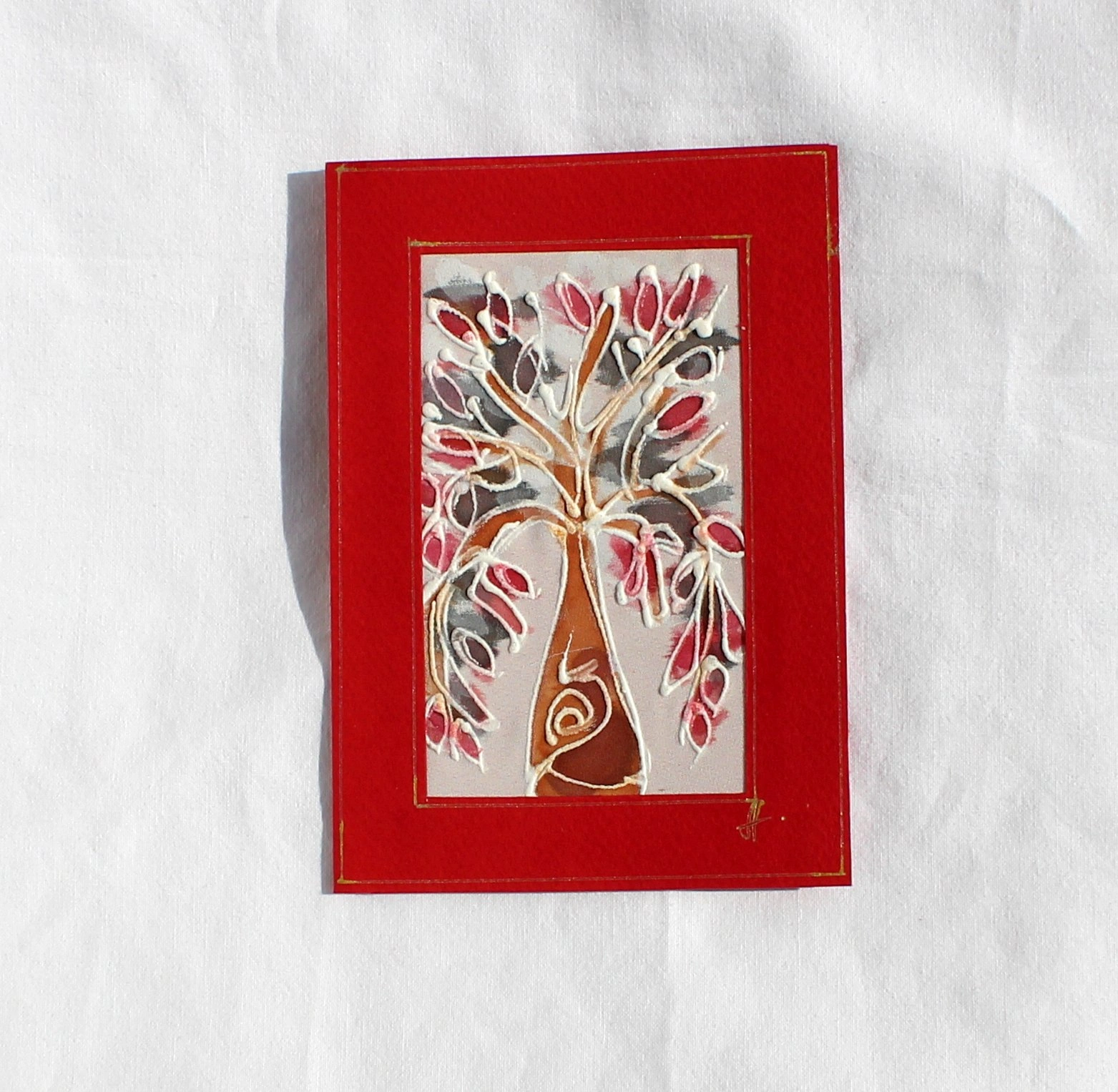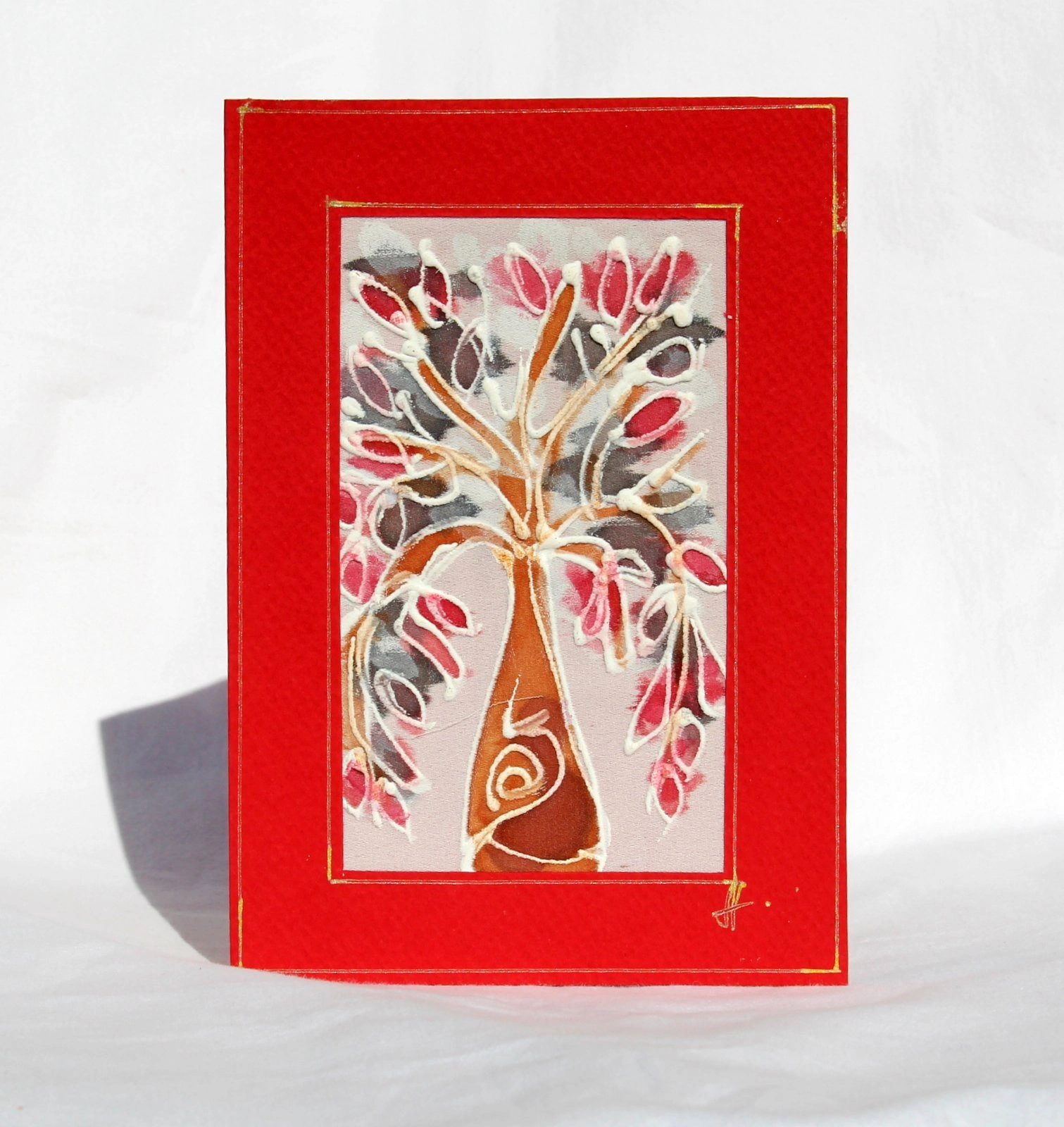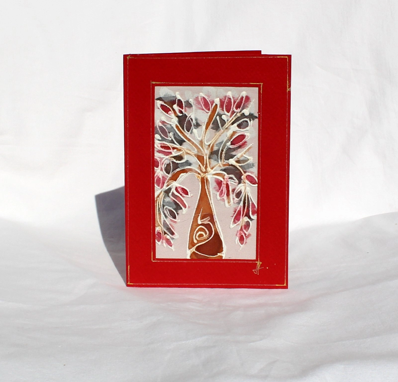Ръчно рисувана картичка върху коприна.