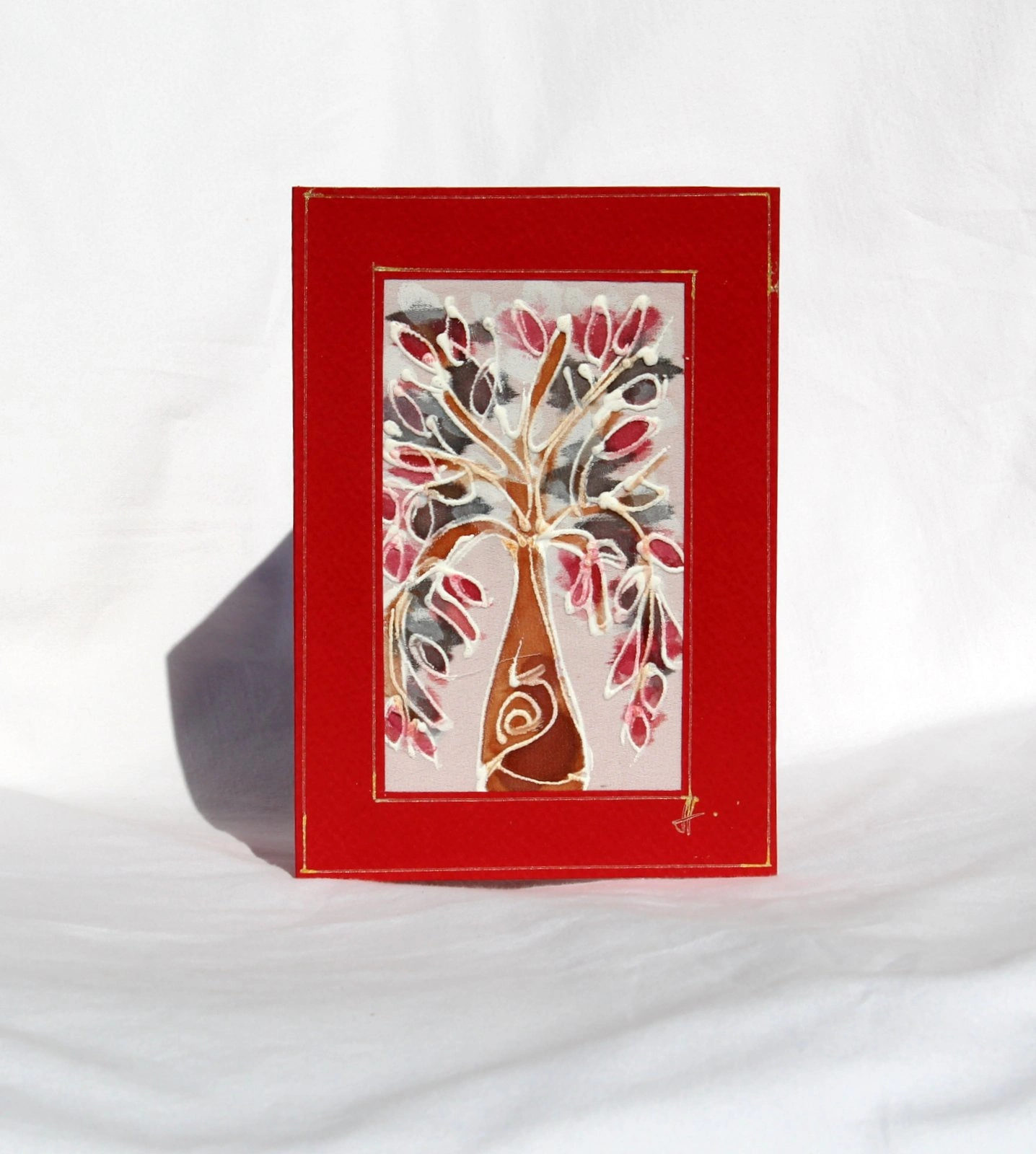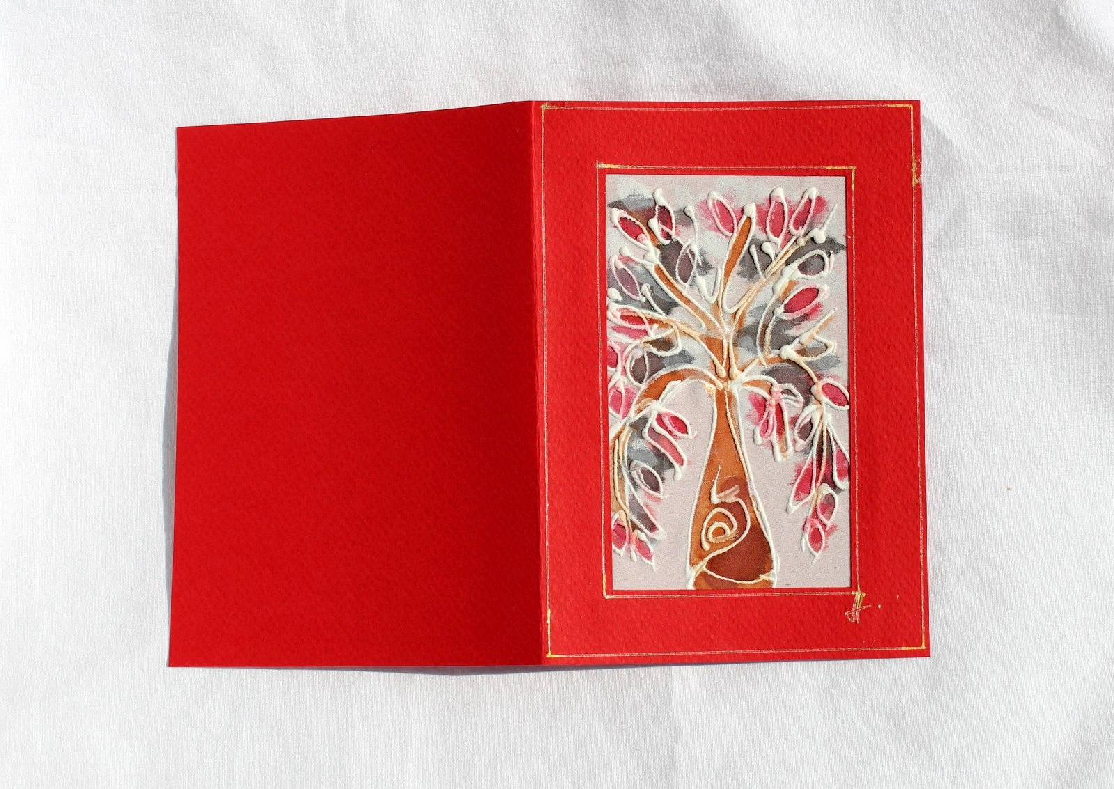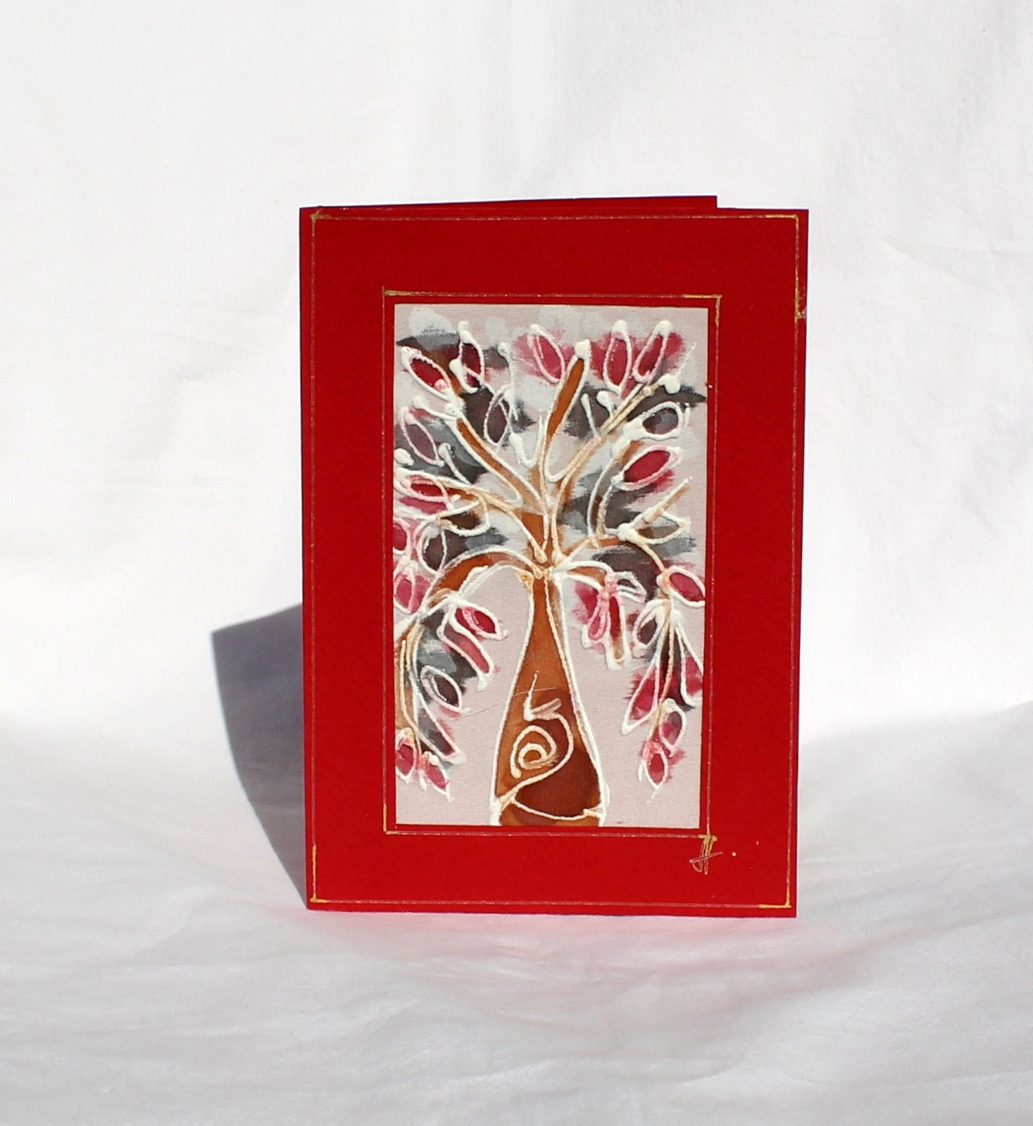 Ръчно рисувана картичка върху коприна.