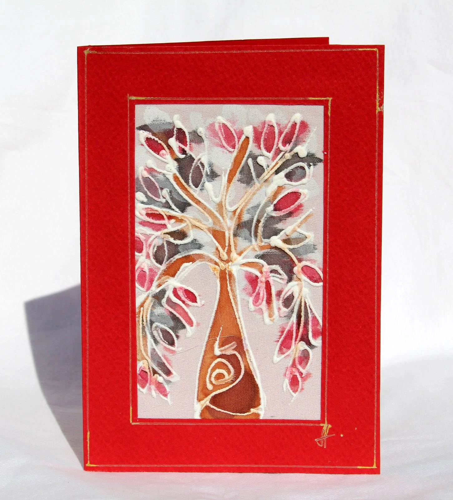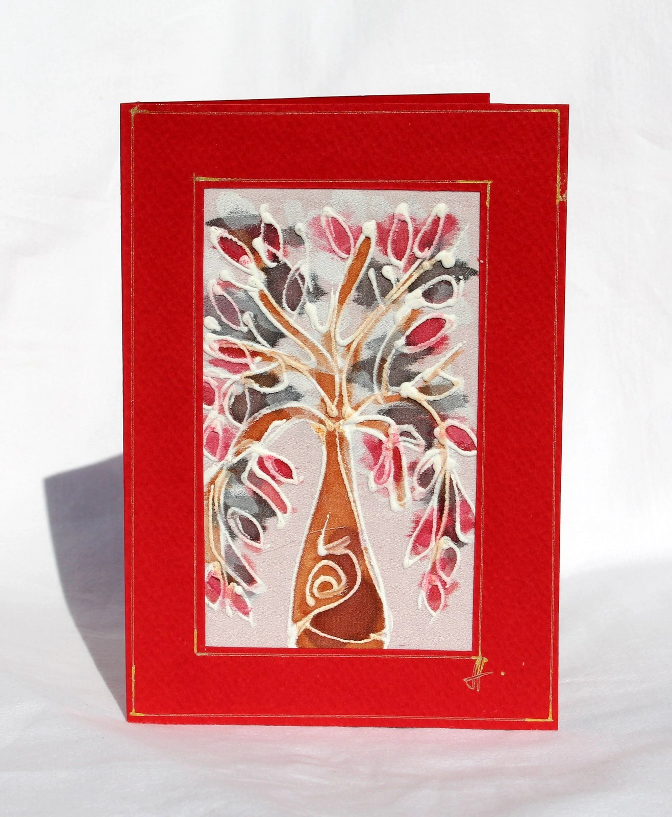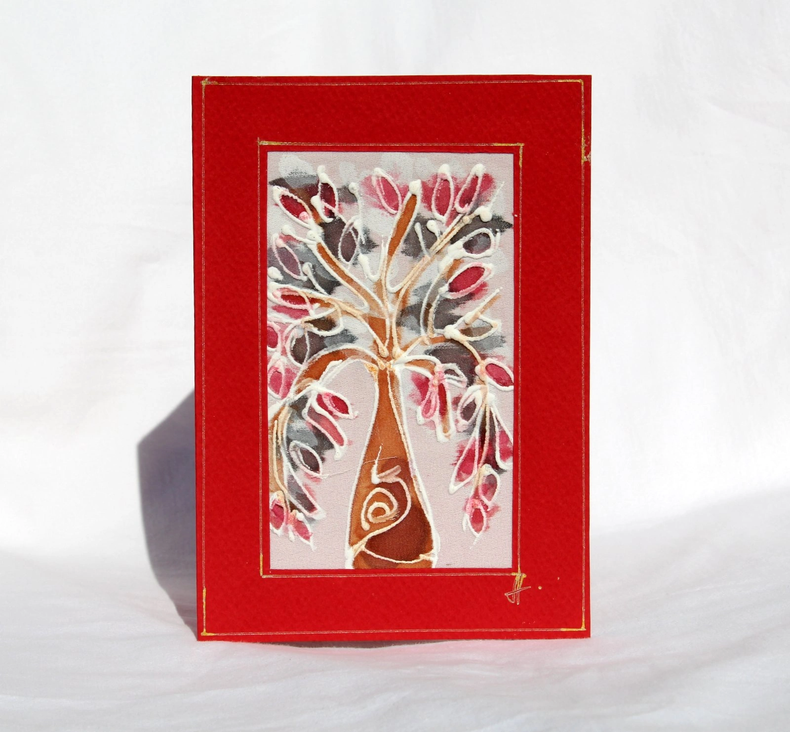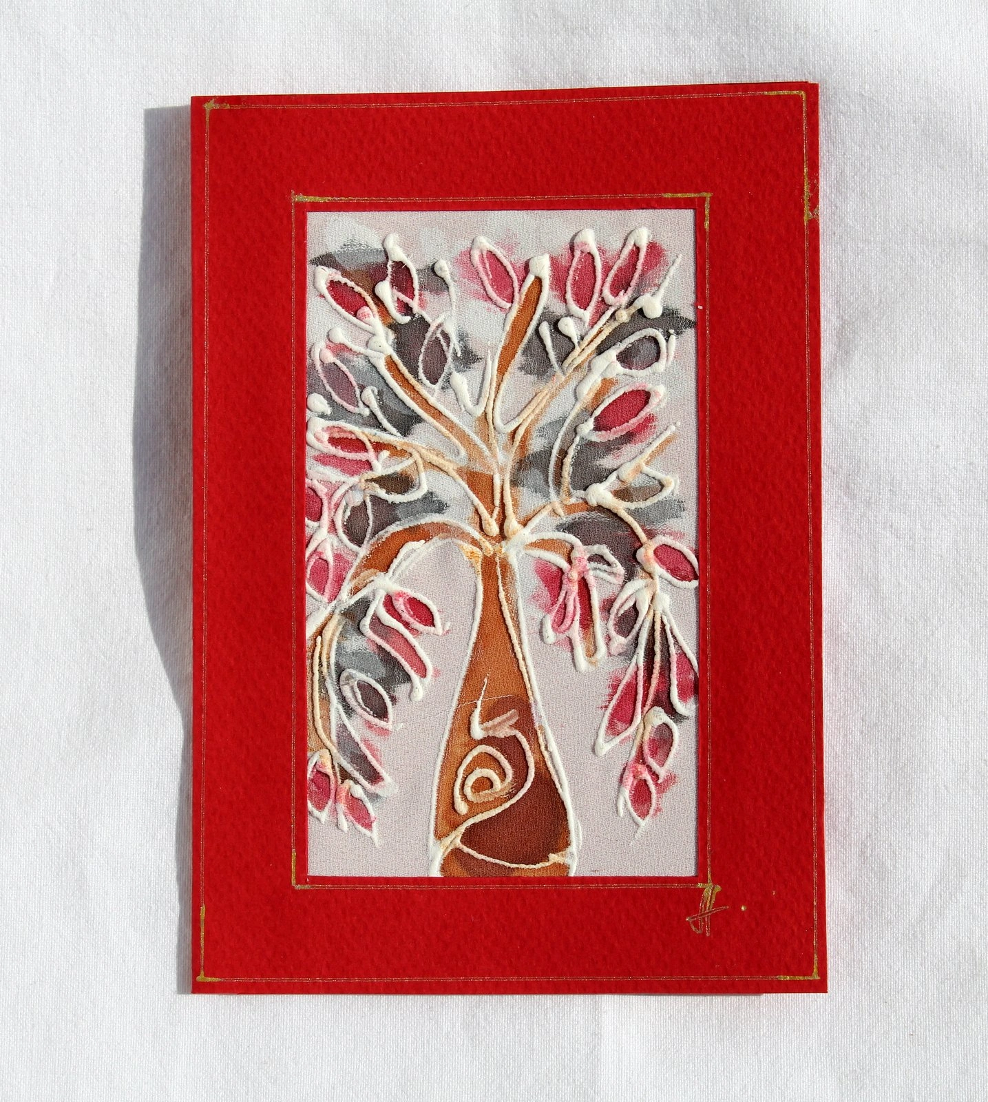 Ръчно рисувана картичка върху коприна.