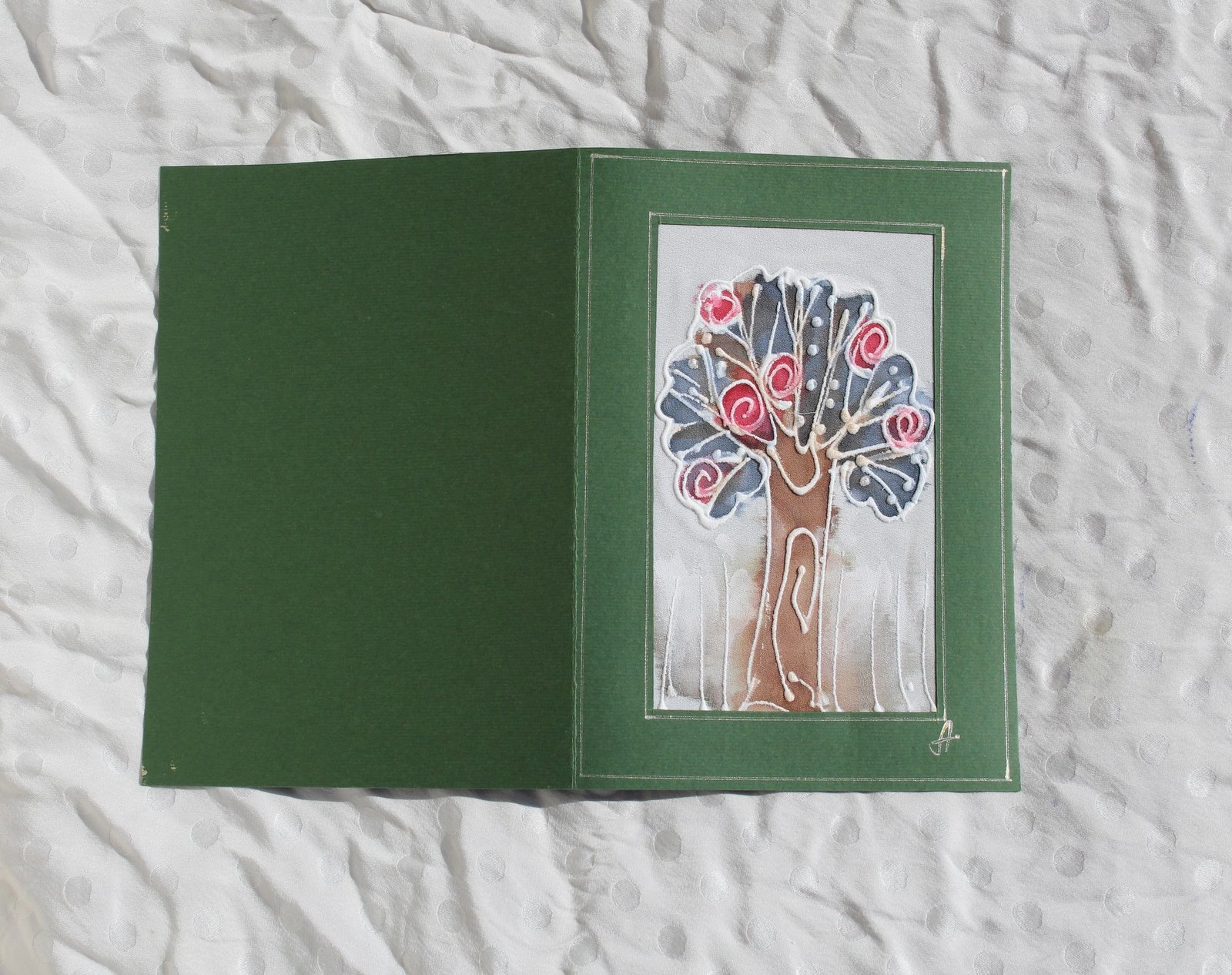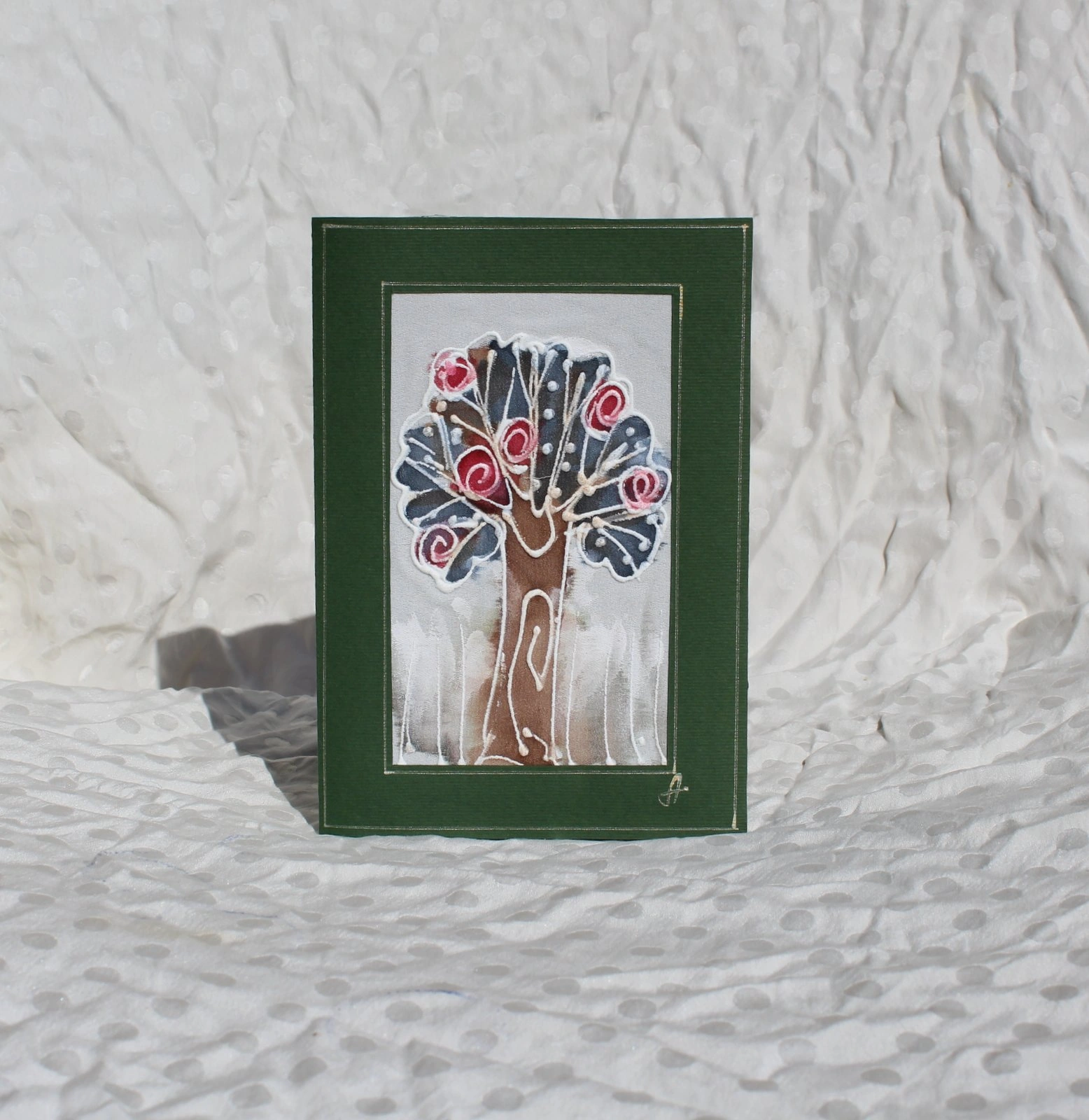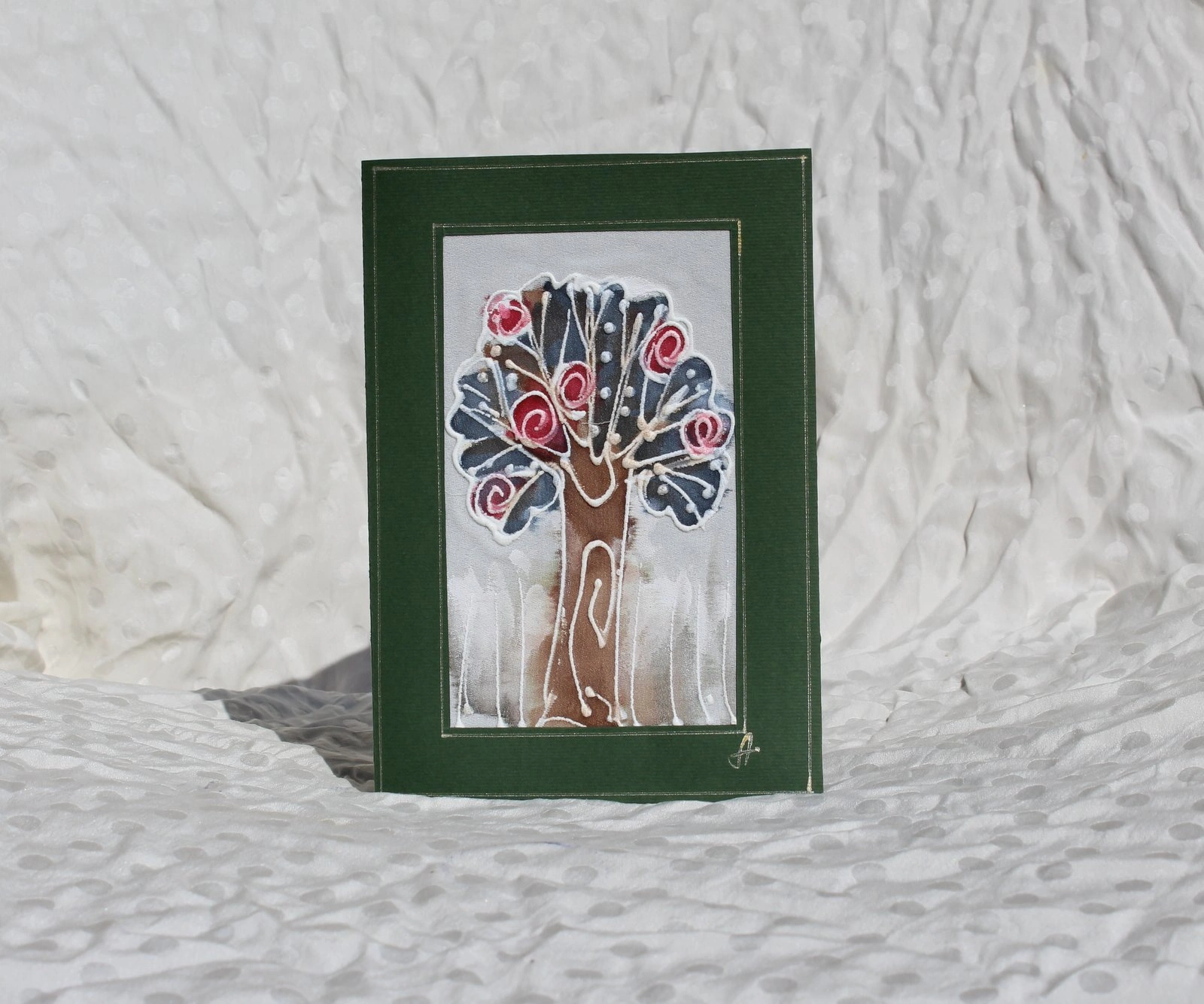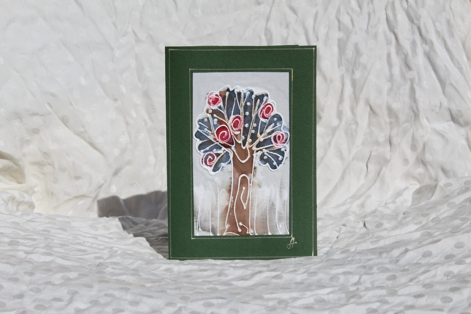 Ръчно рисувана картичка върху коприна.