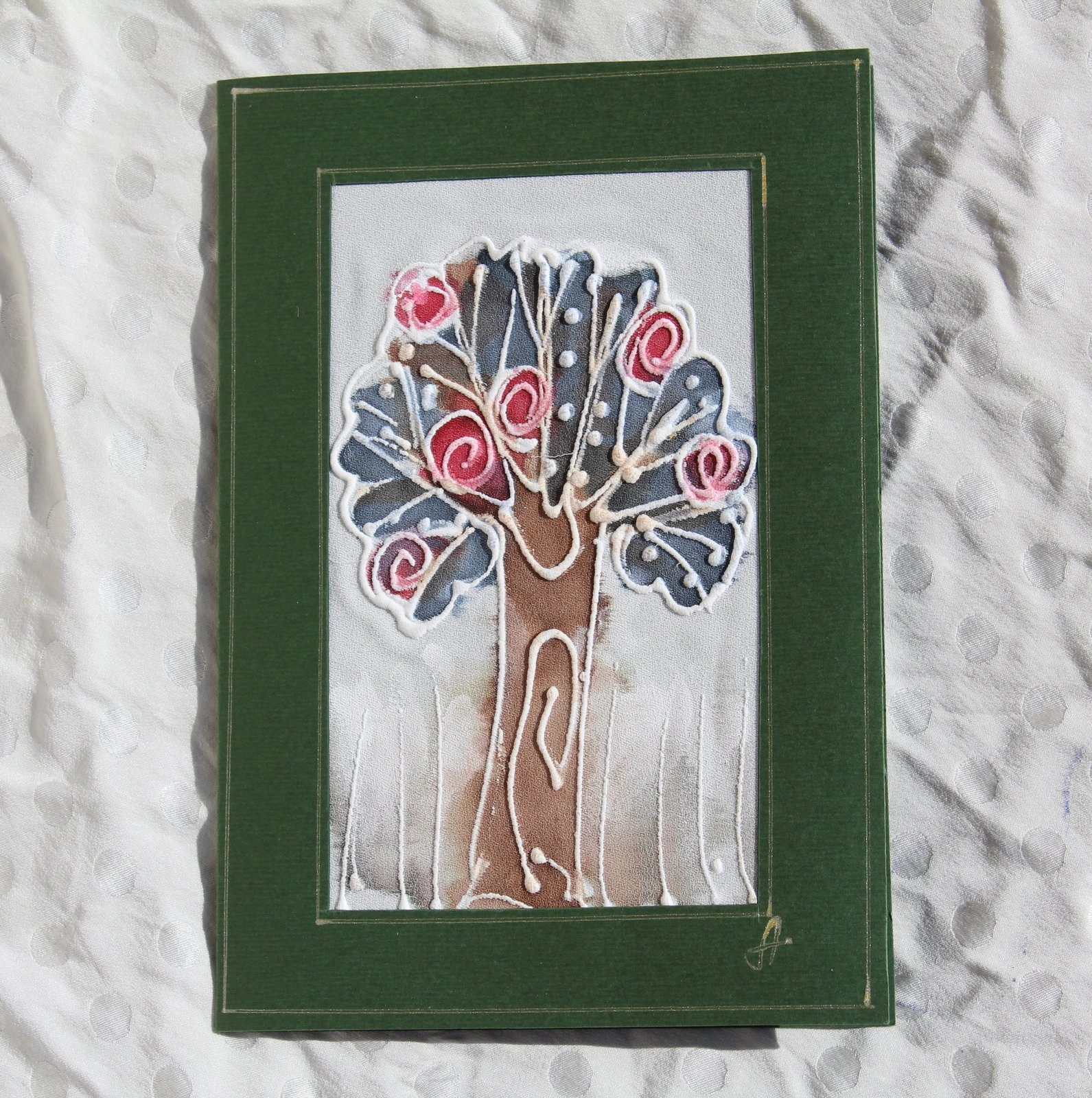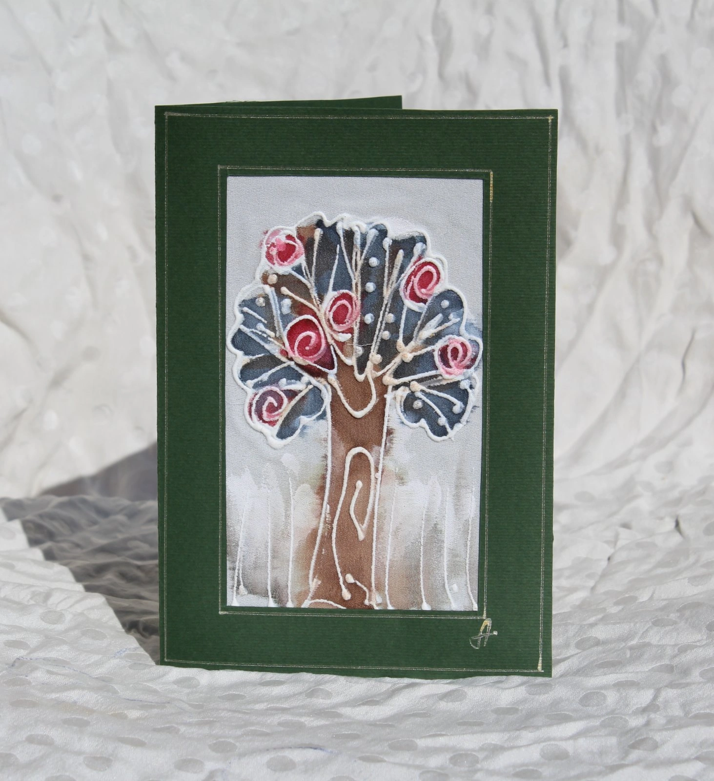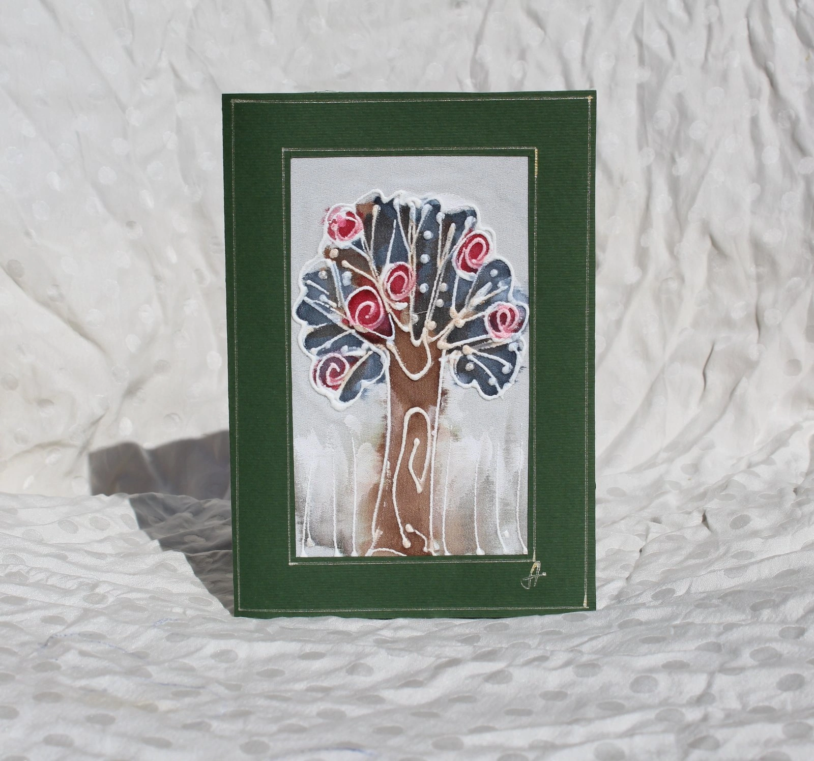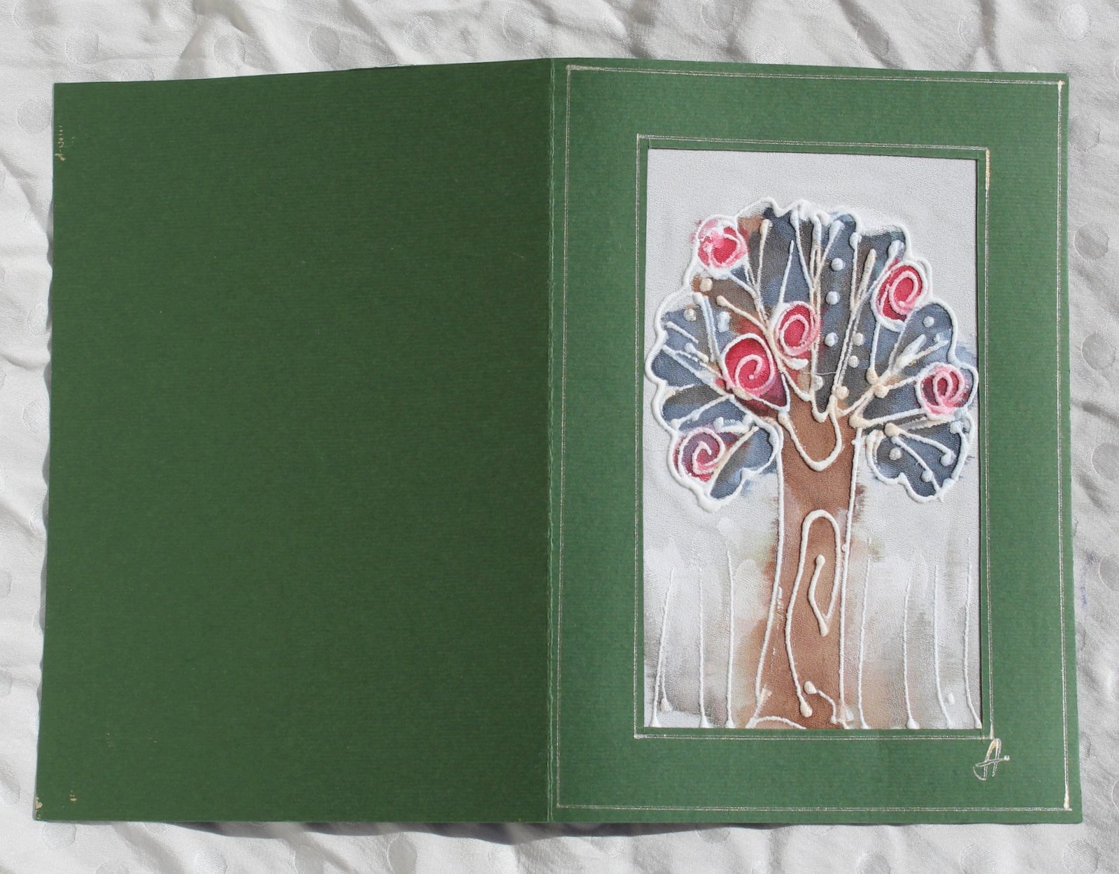 Ръчно рисувана картичка върху коприна.