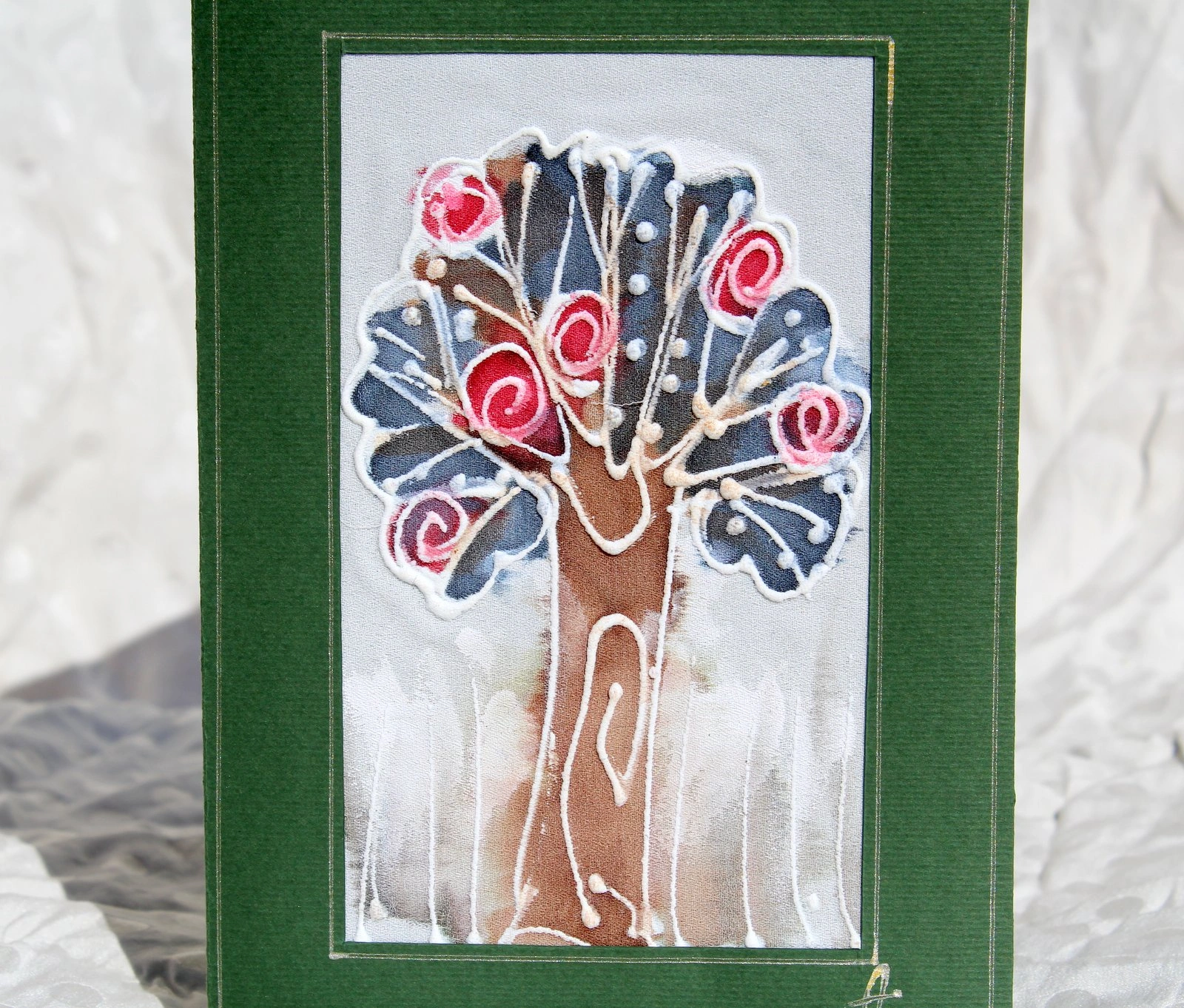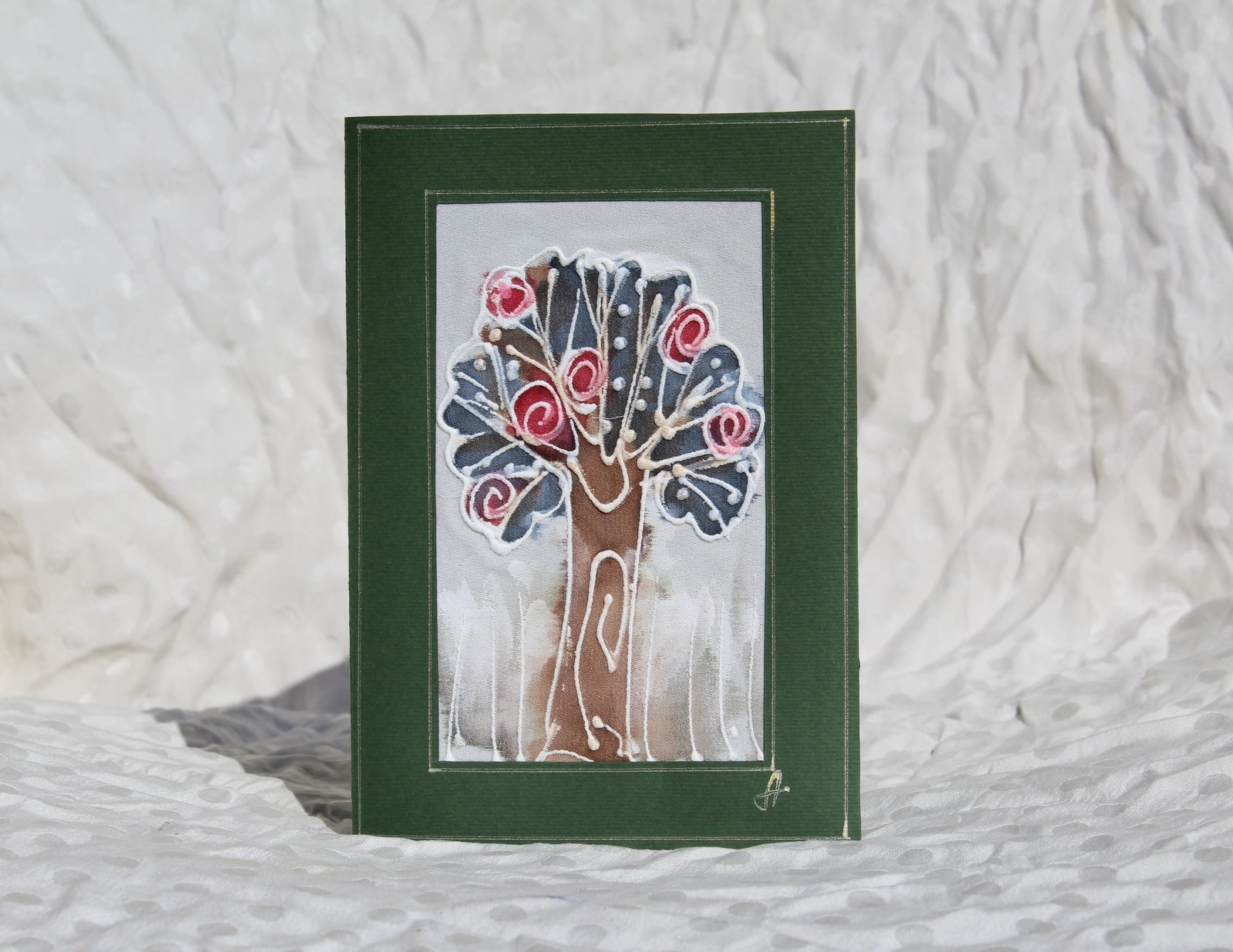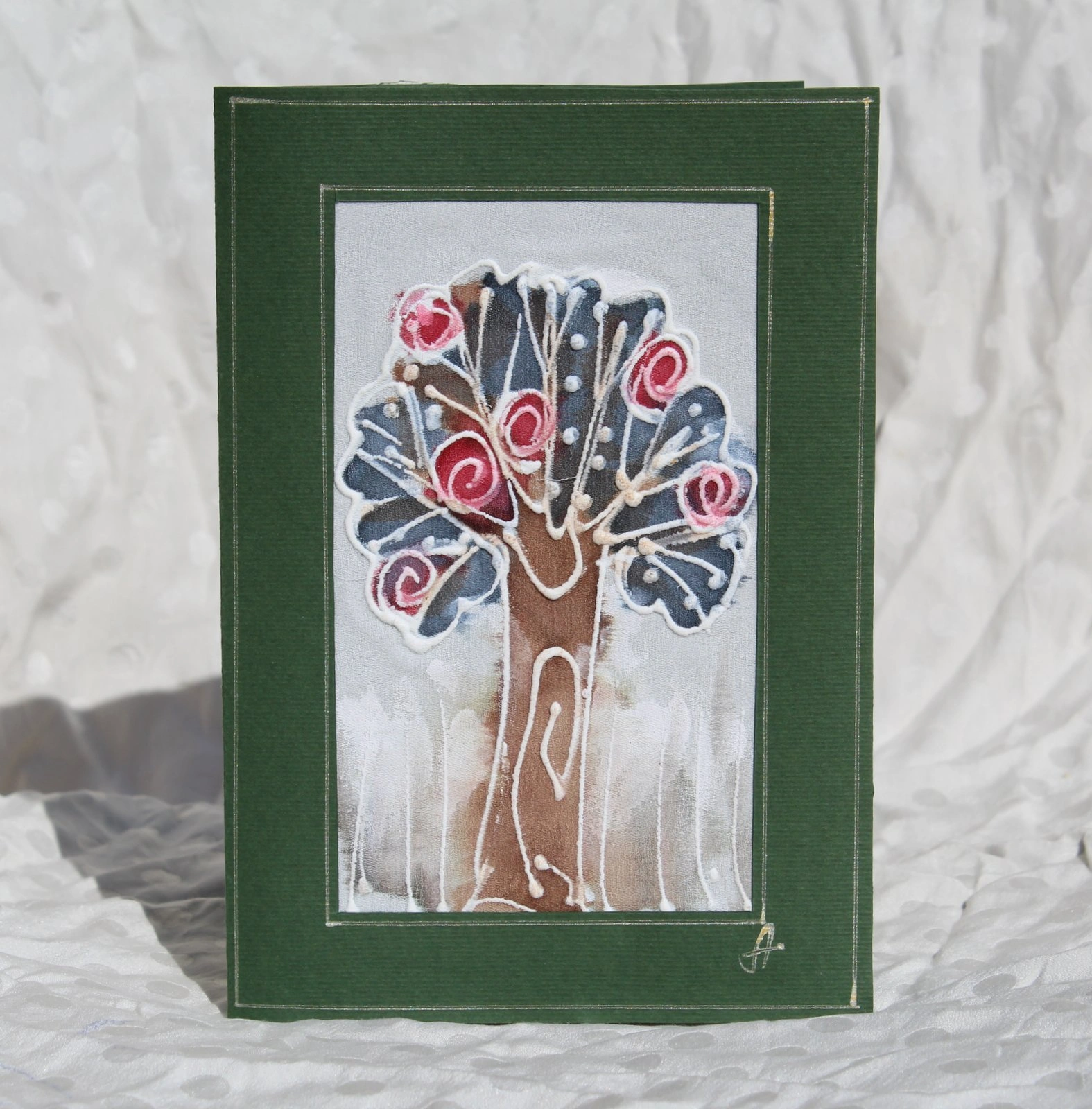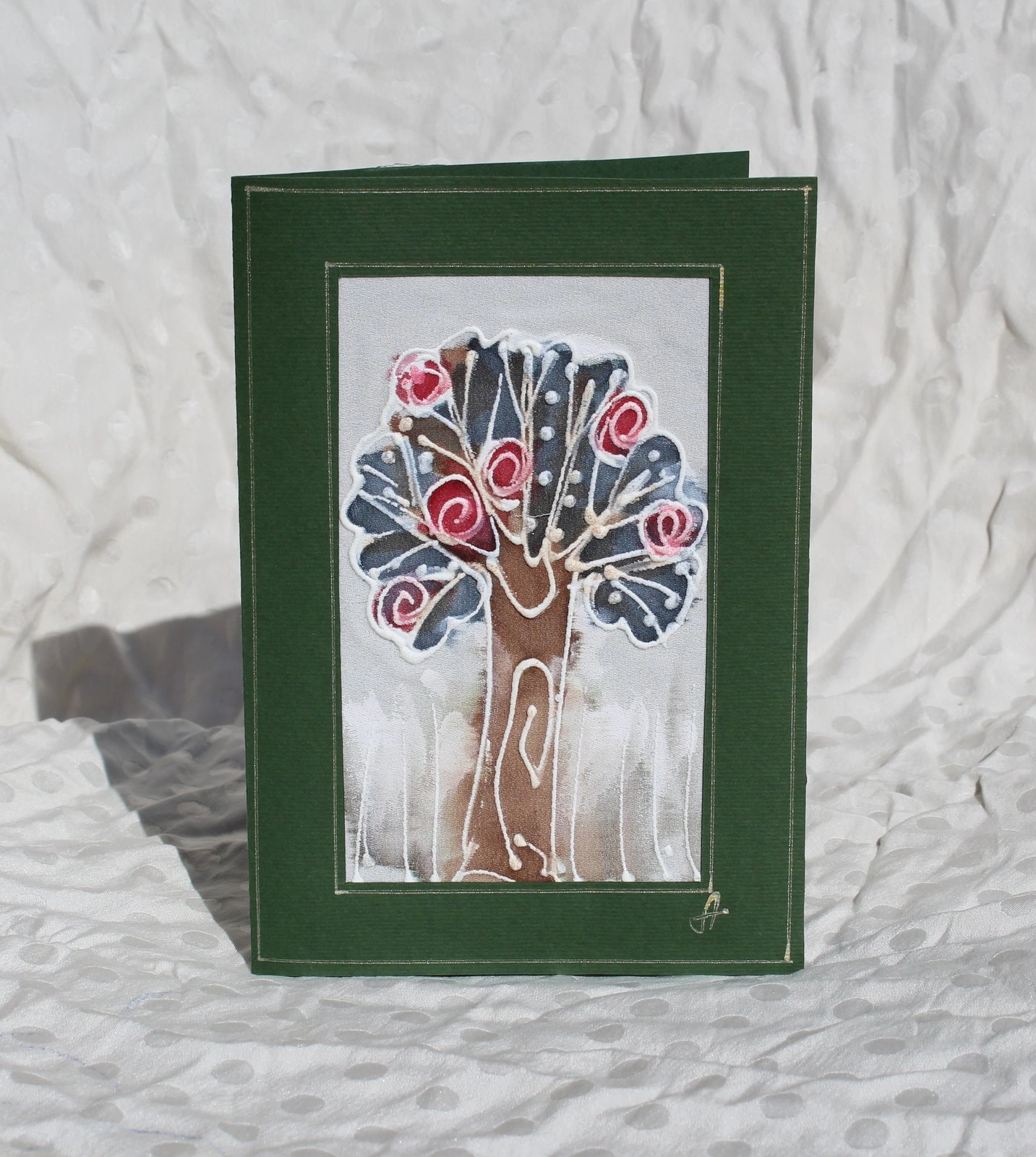 Ръчно рисувана картичка върху коприна.