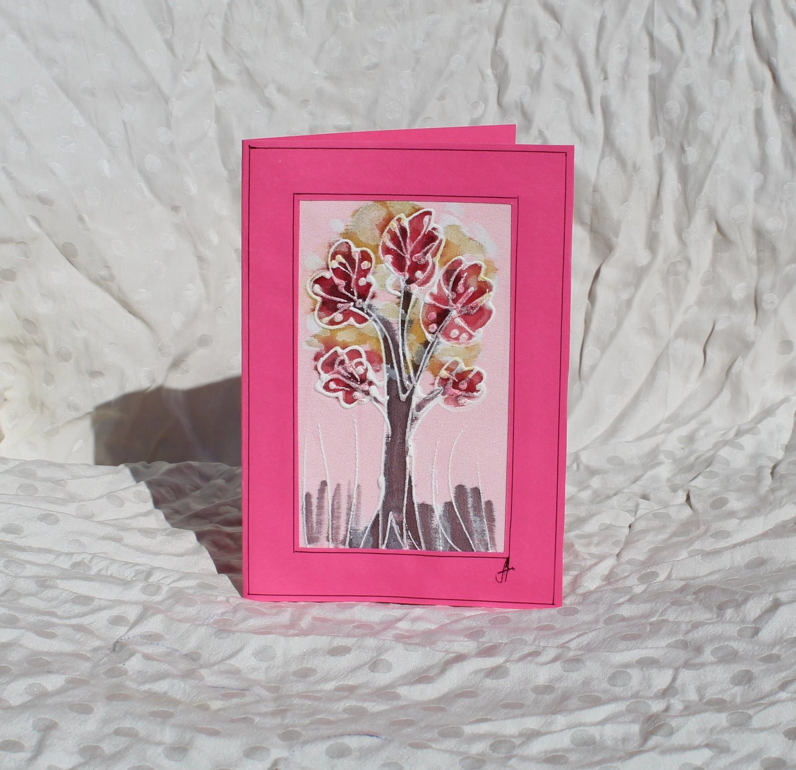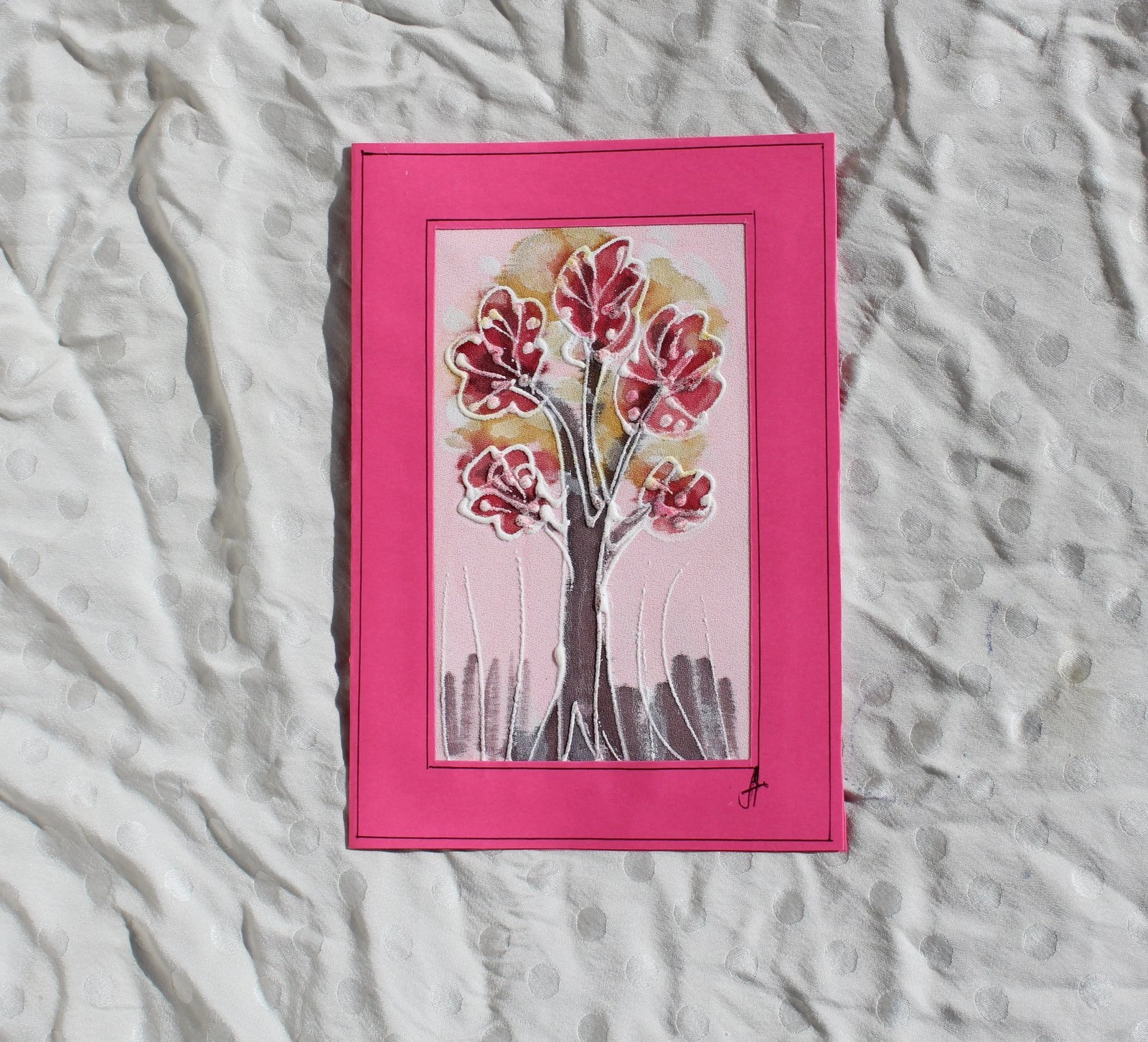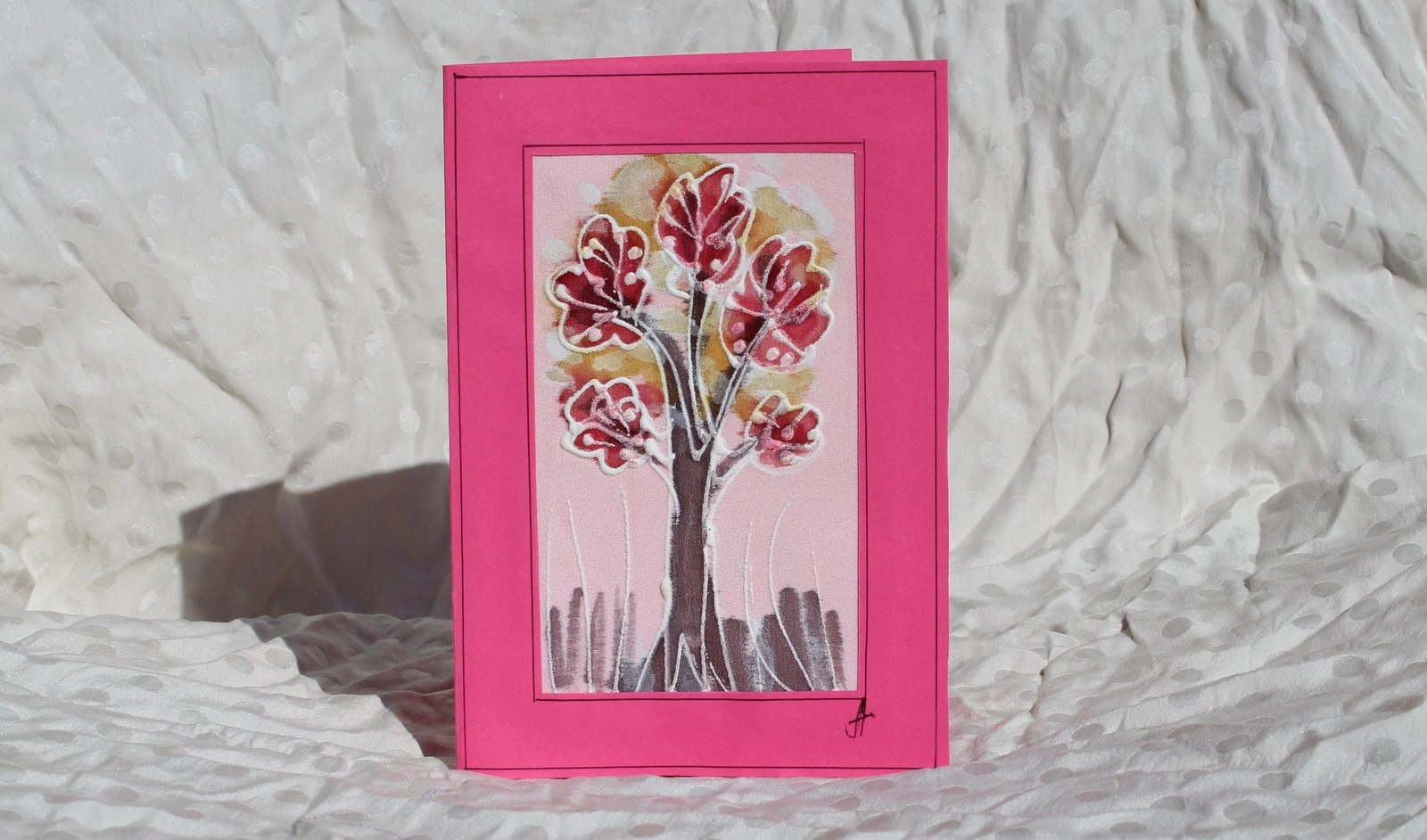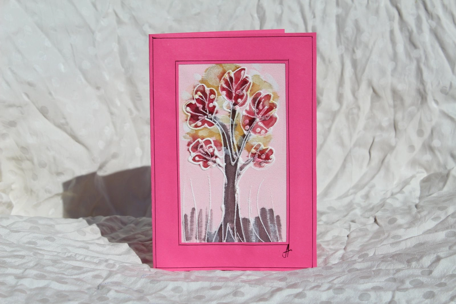 Ръчно рисувана картичка върху коприна.