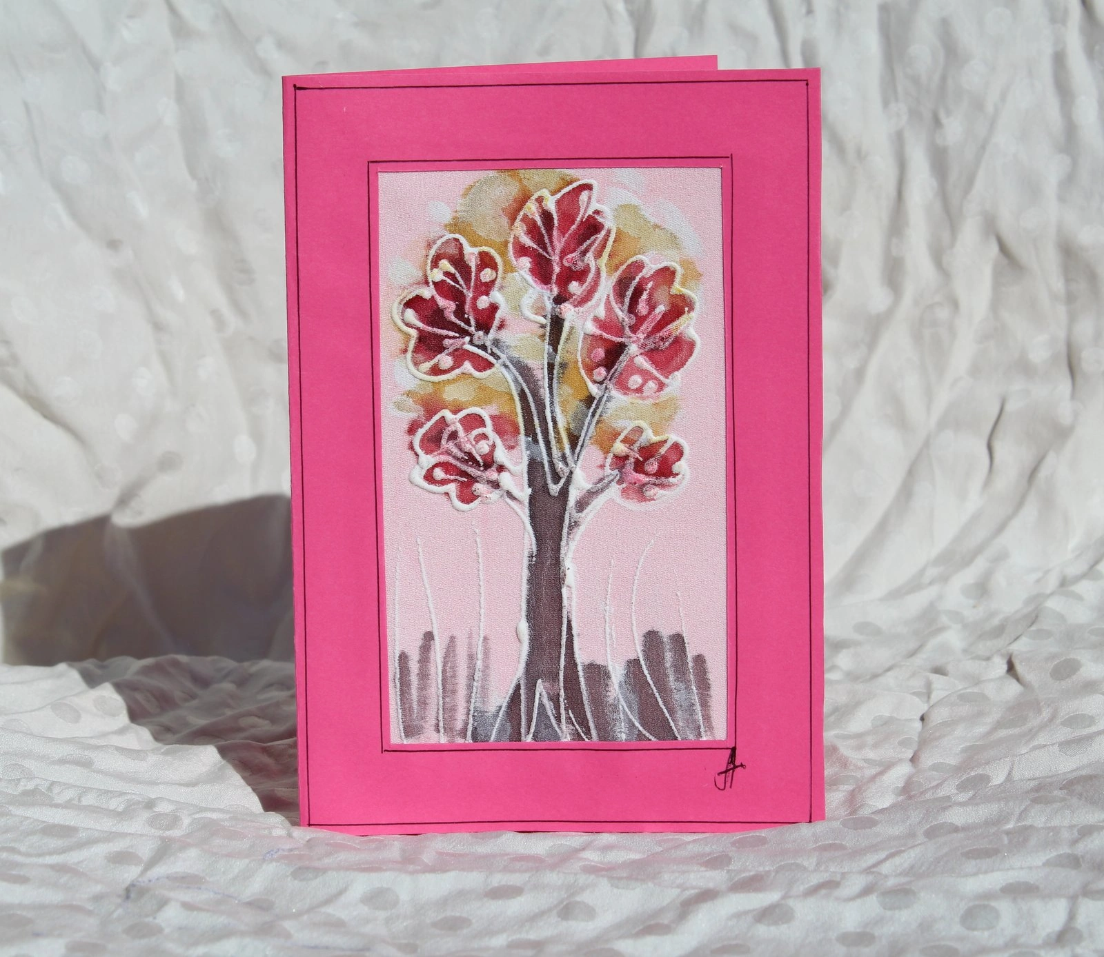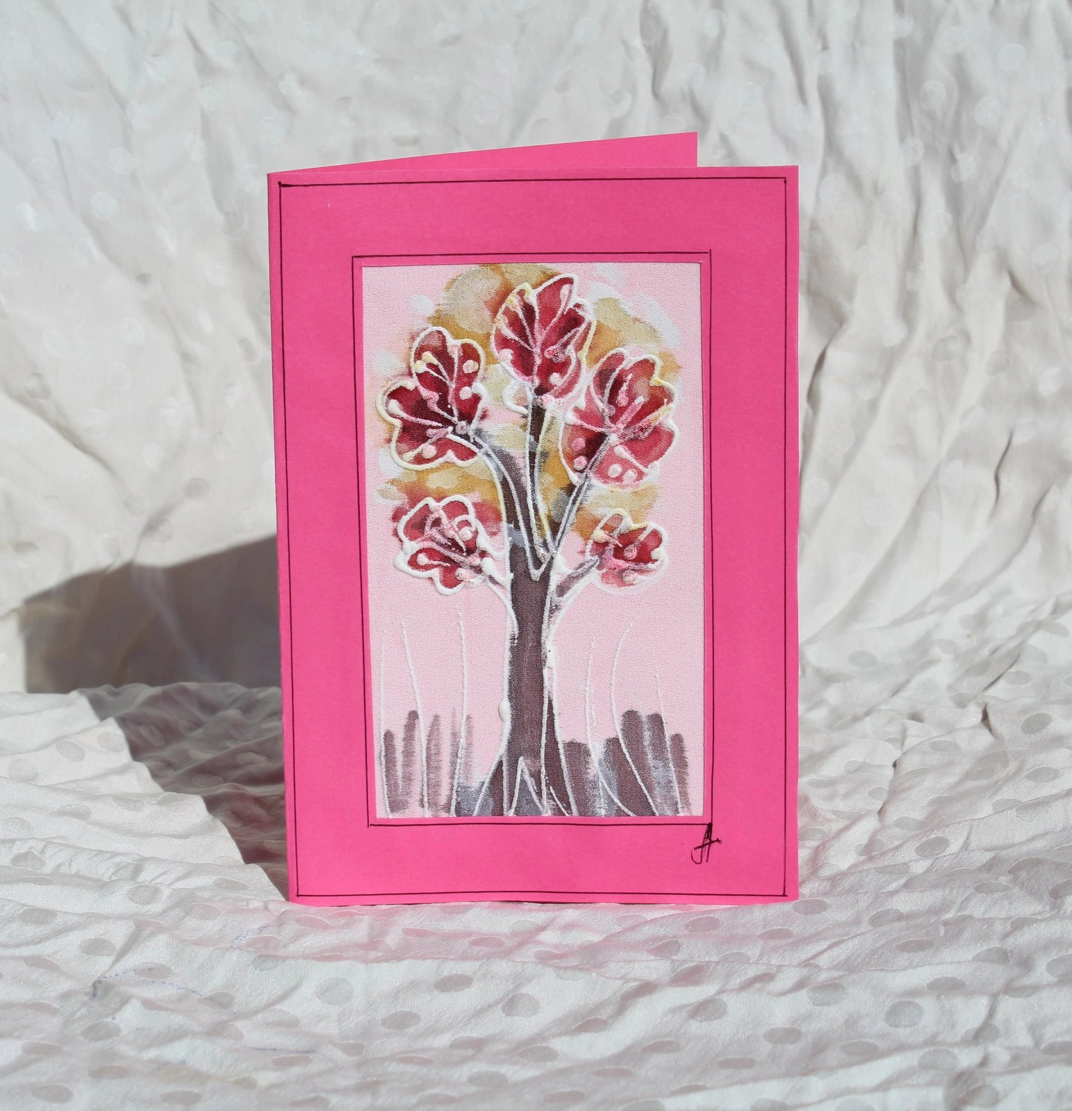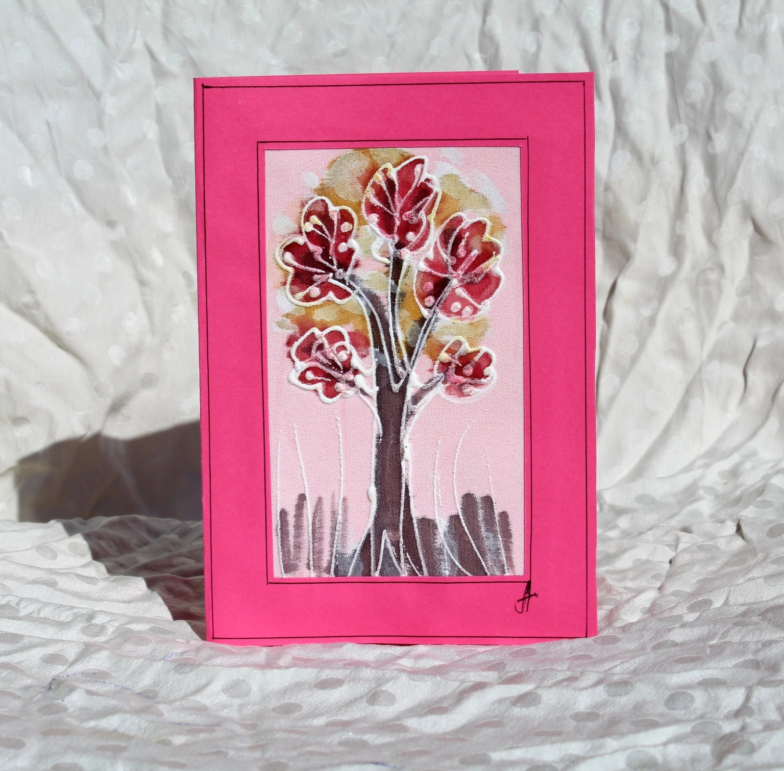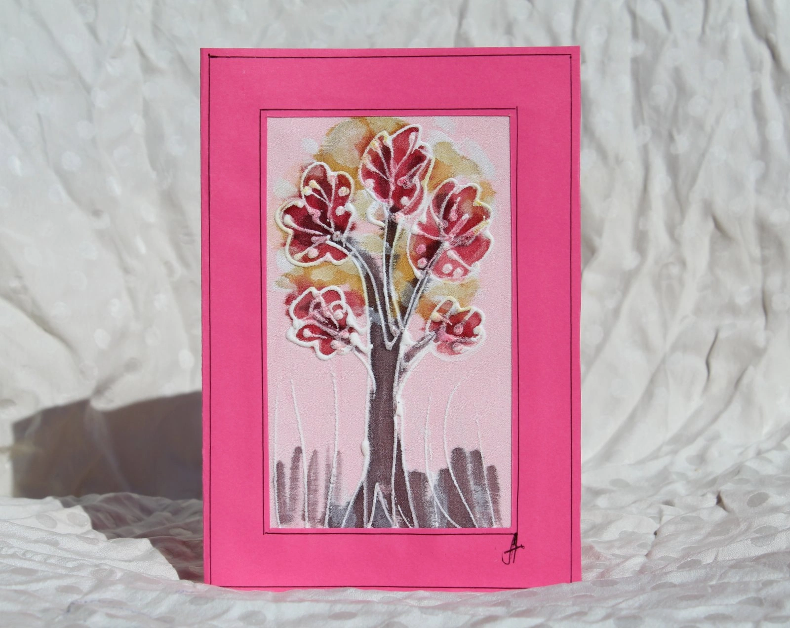 Ръчно рисувана картичка върху коприна.