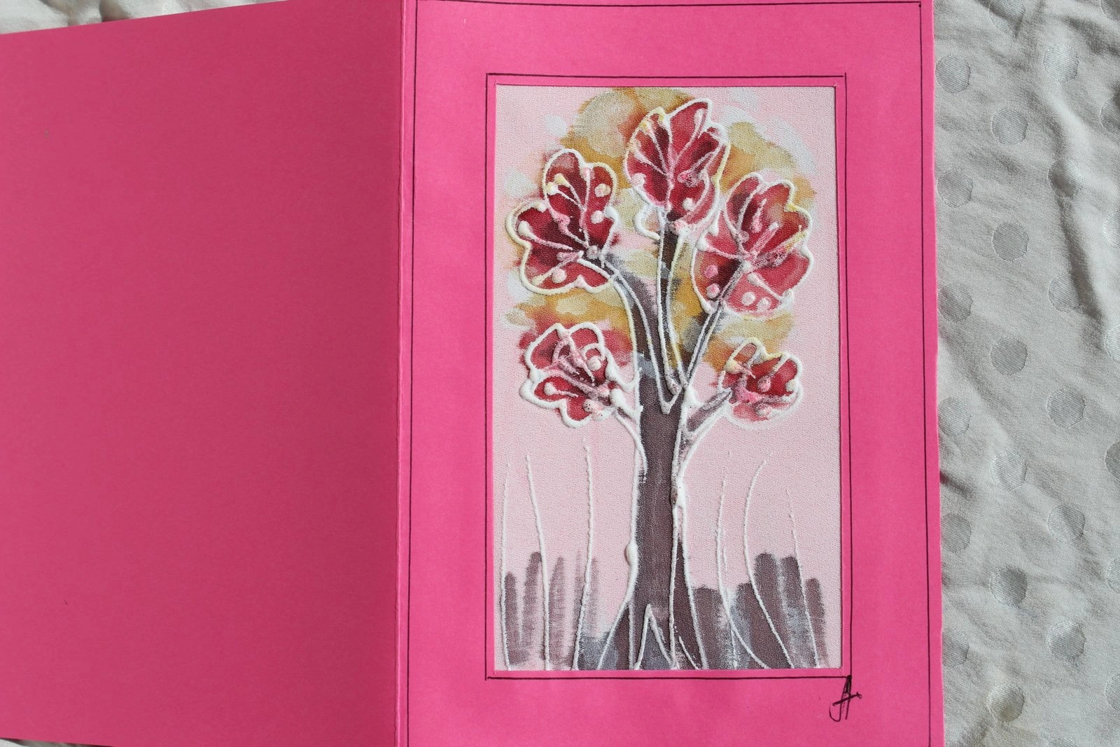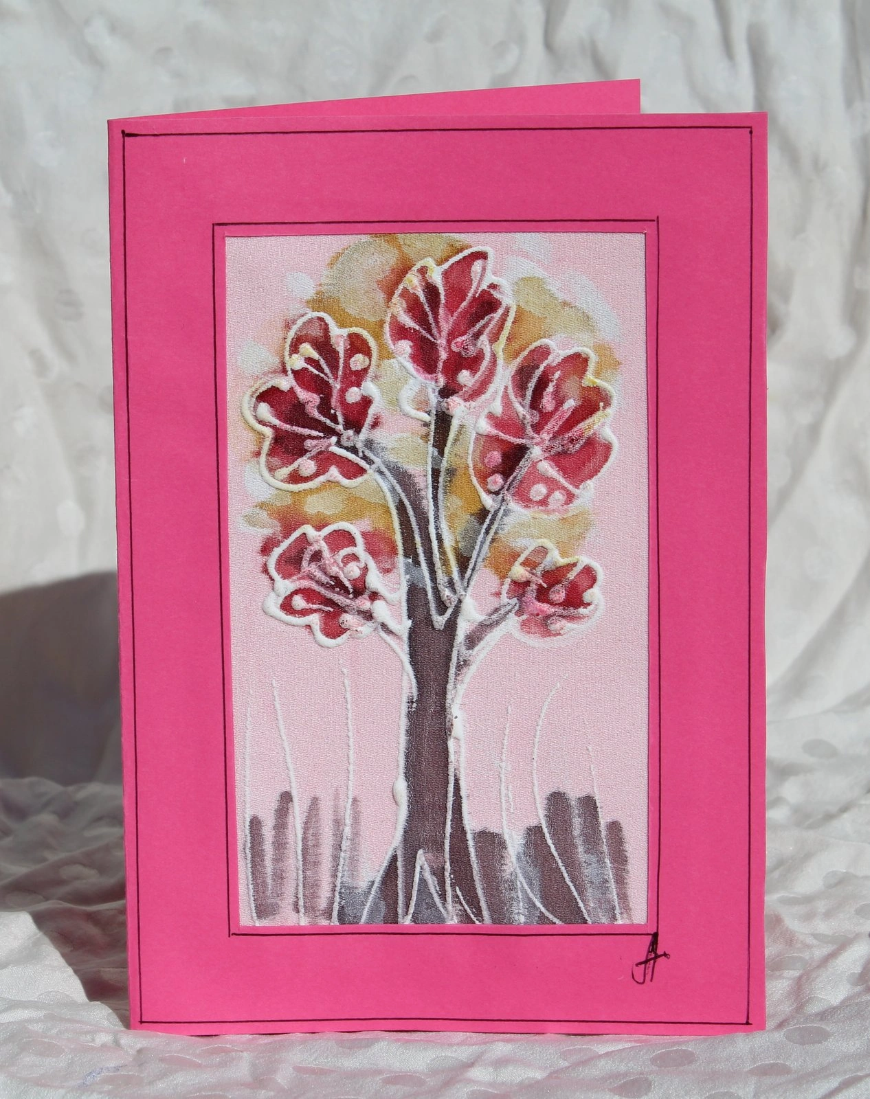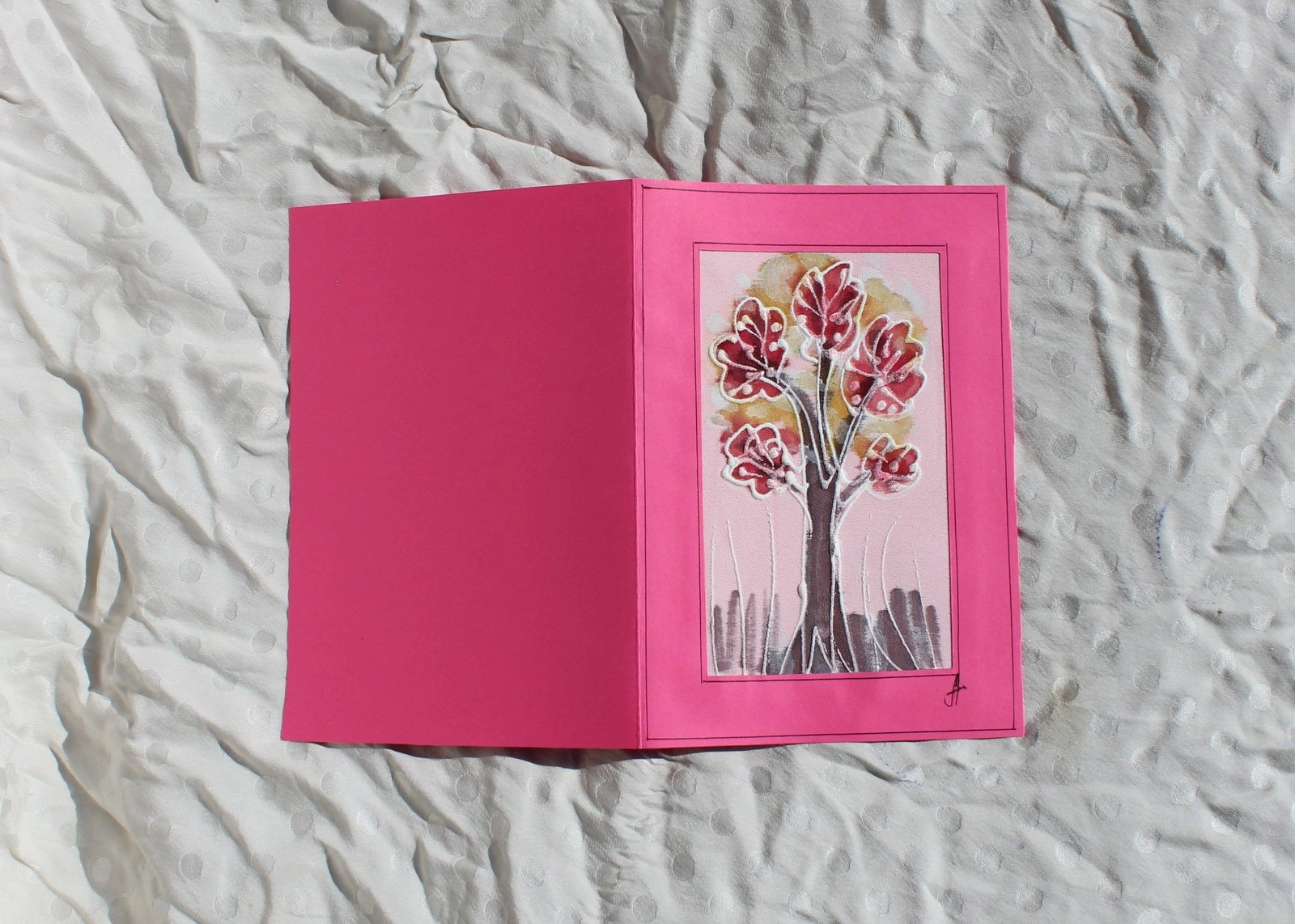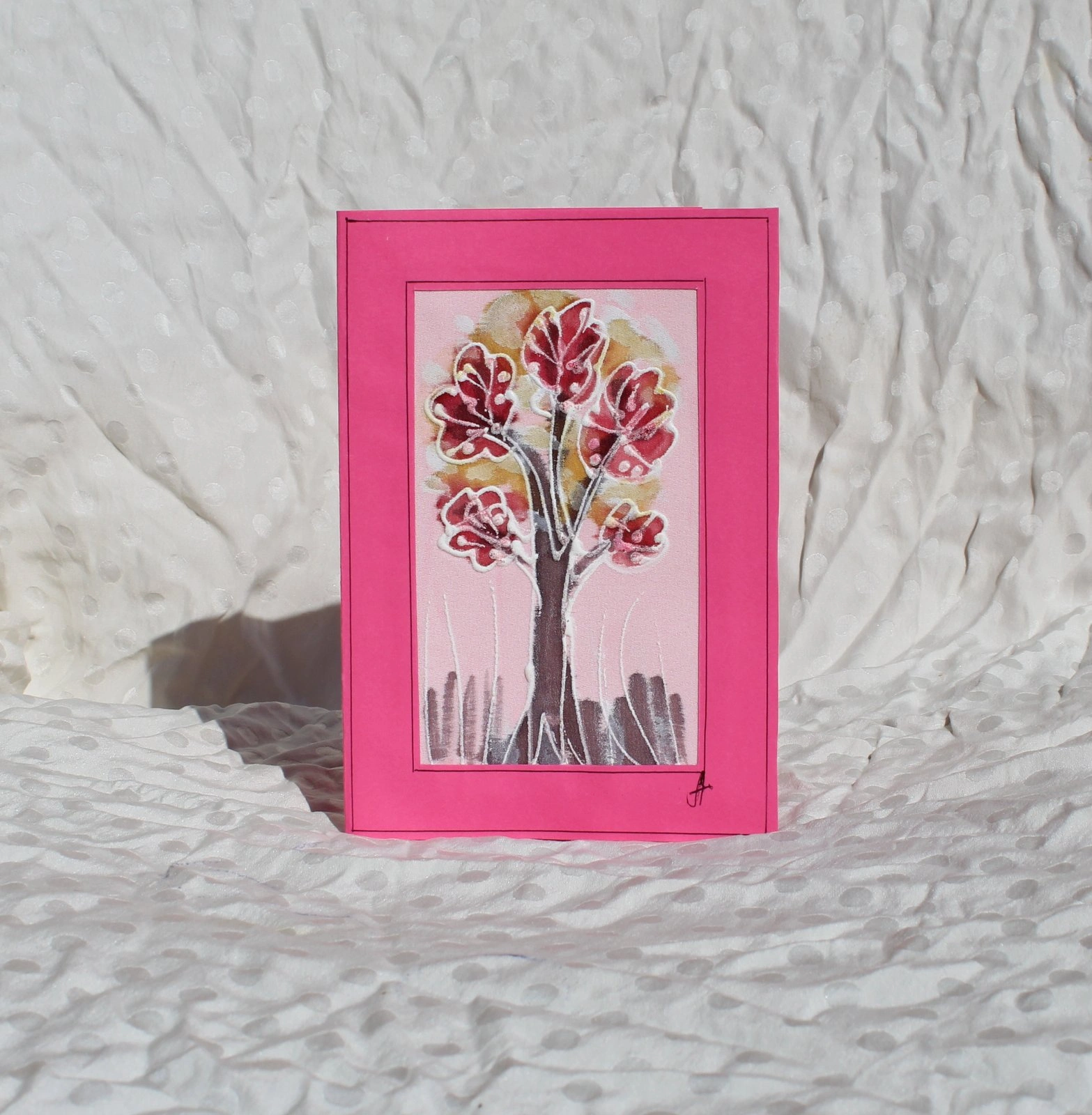 Ръчно рисувана картичка върху коприна.
