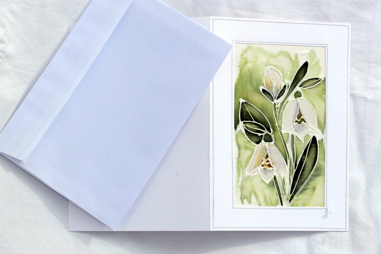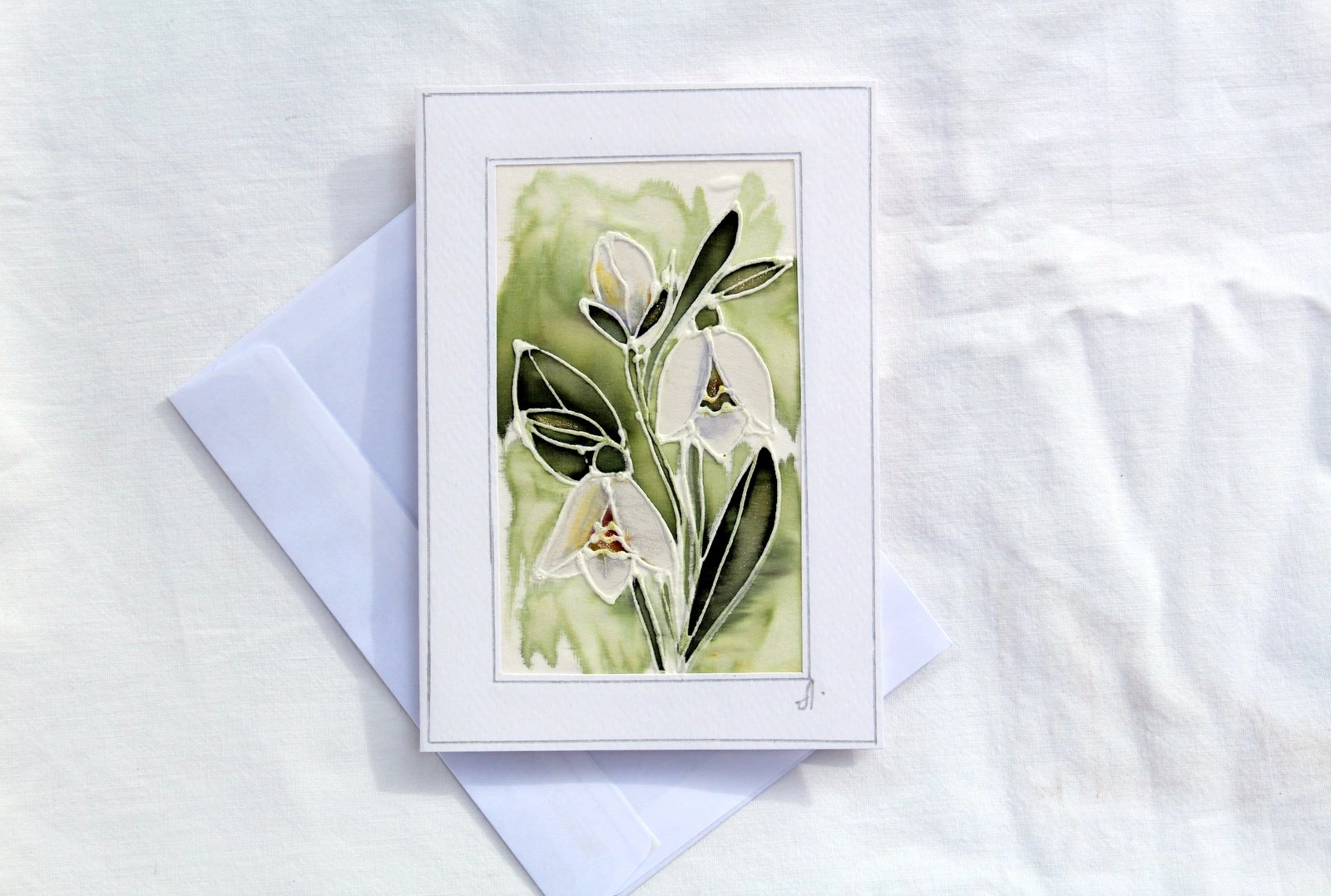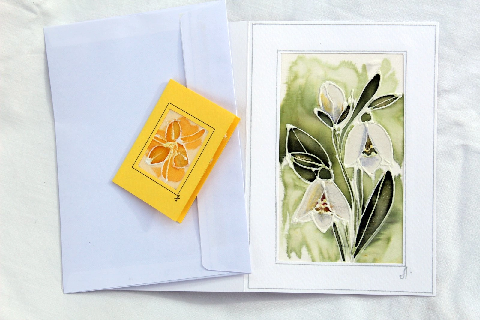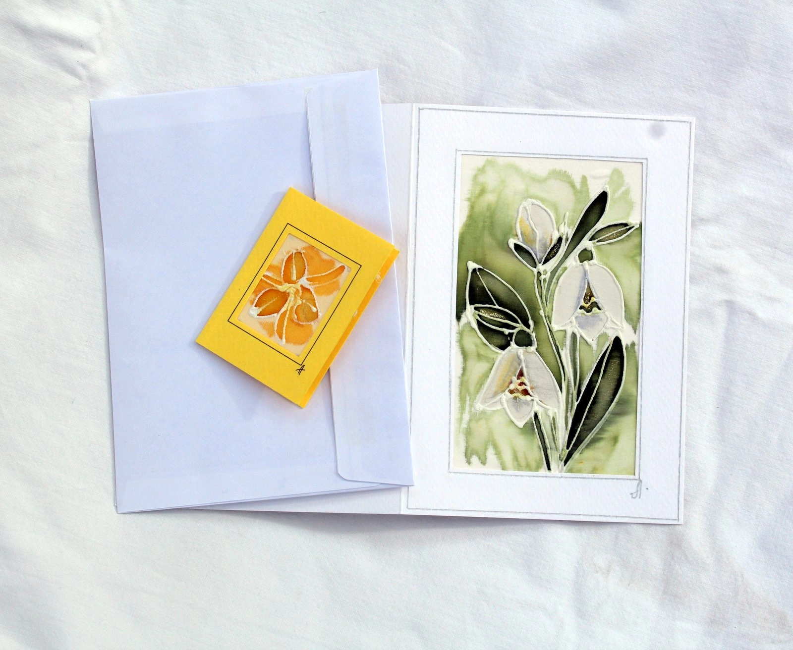 Всяка наша картичка е уникално ръчно рисувано произведение върху естествена коприна.
