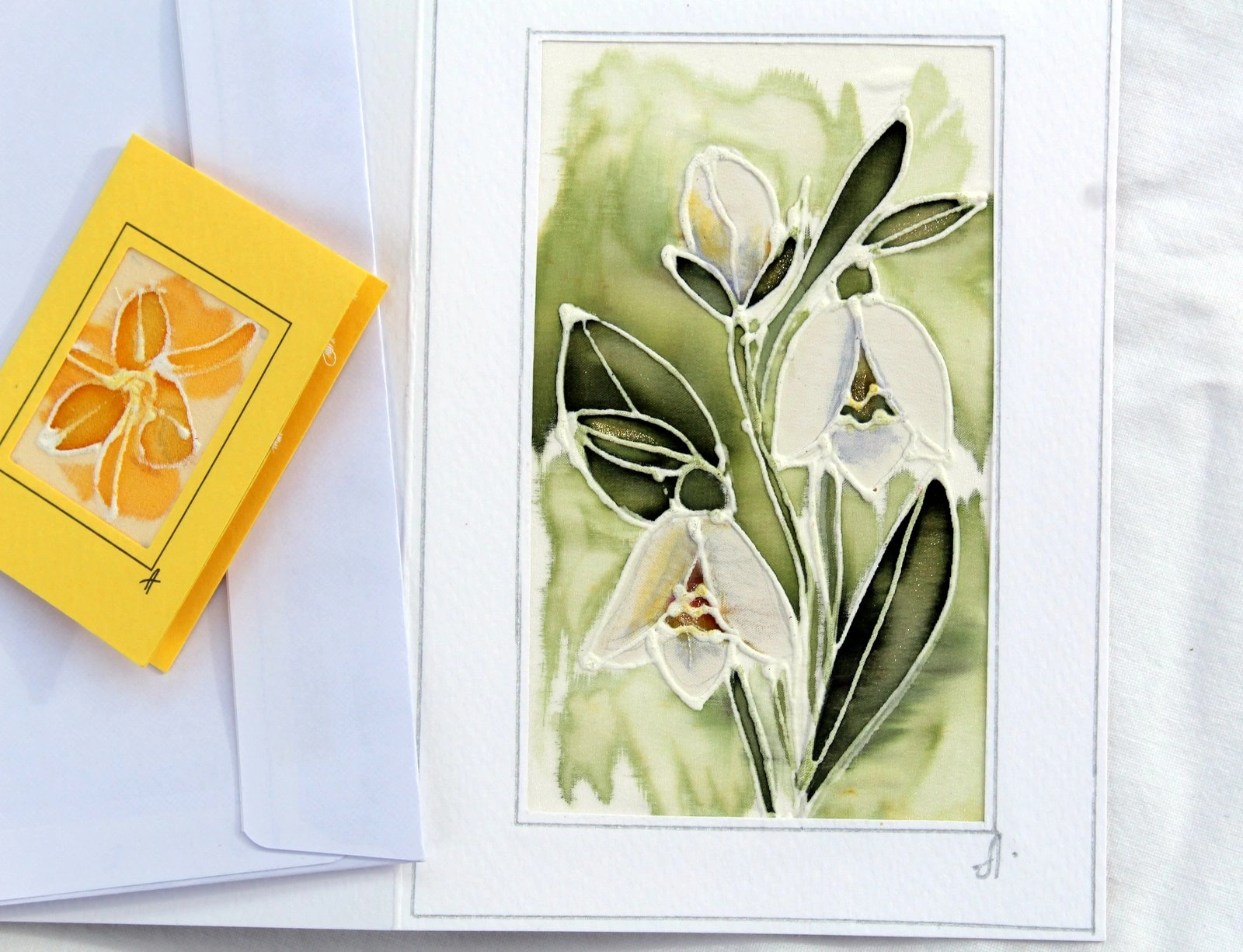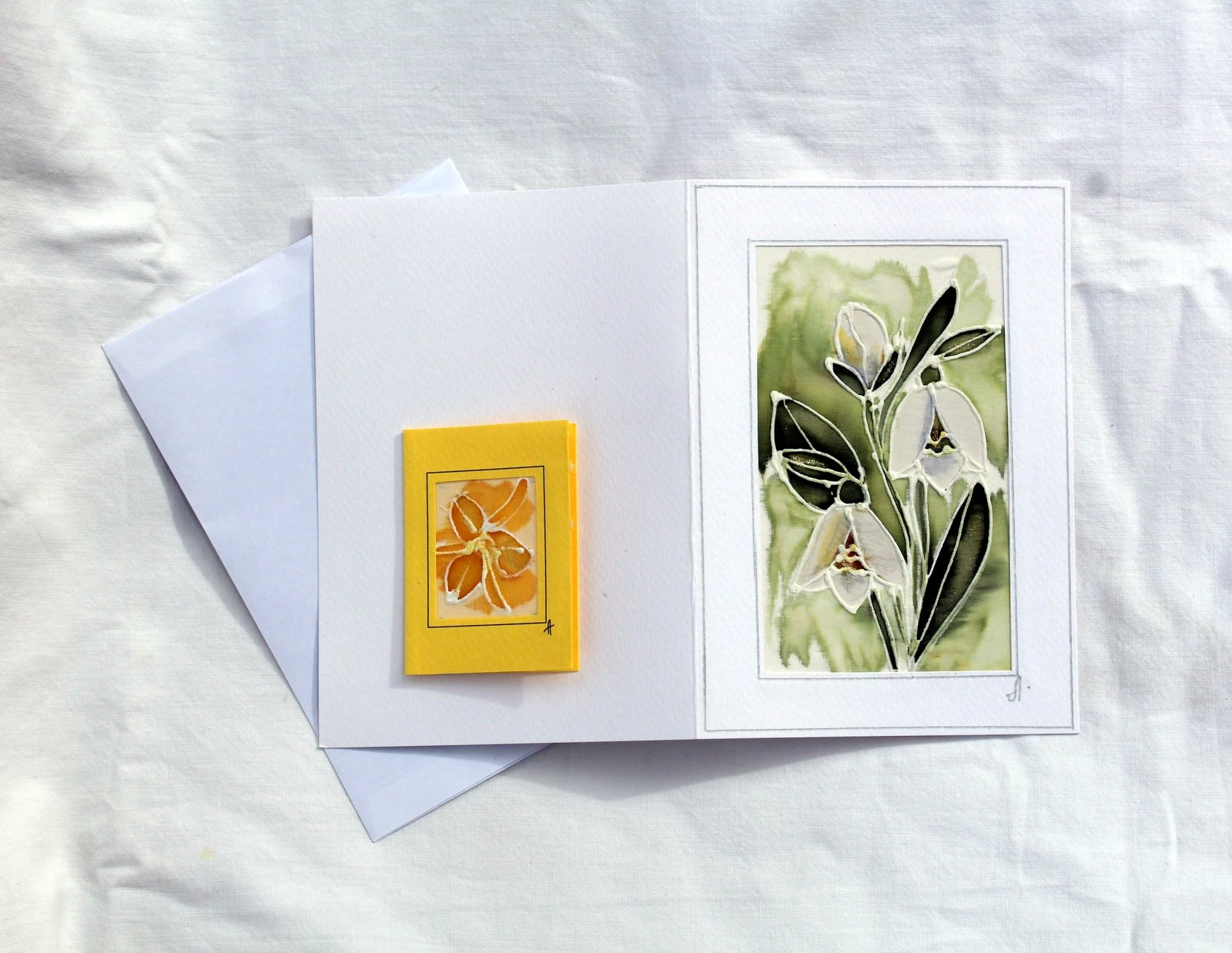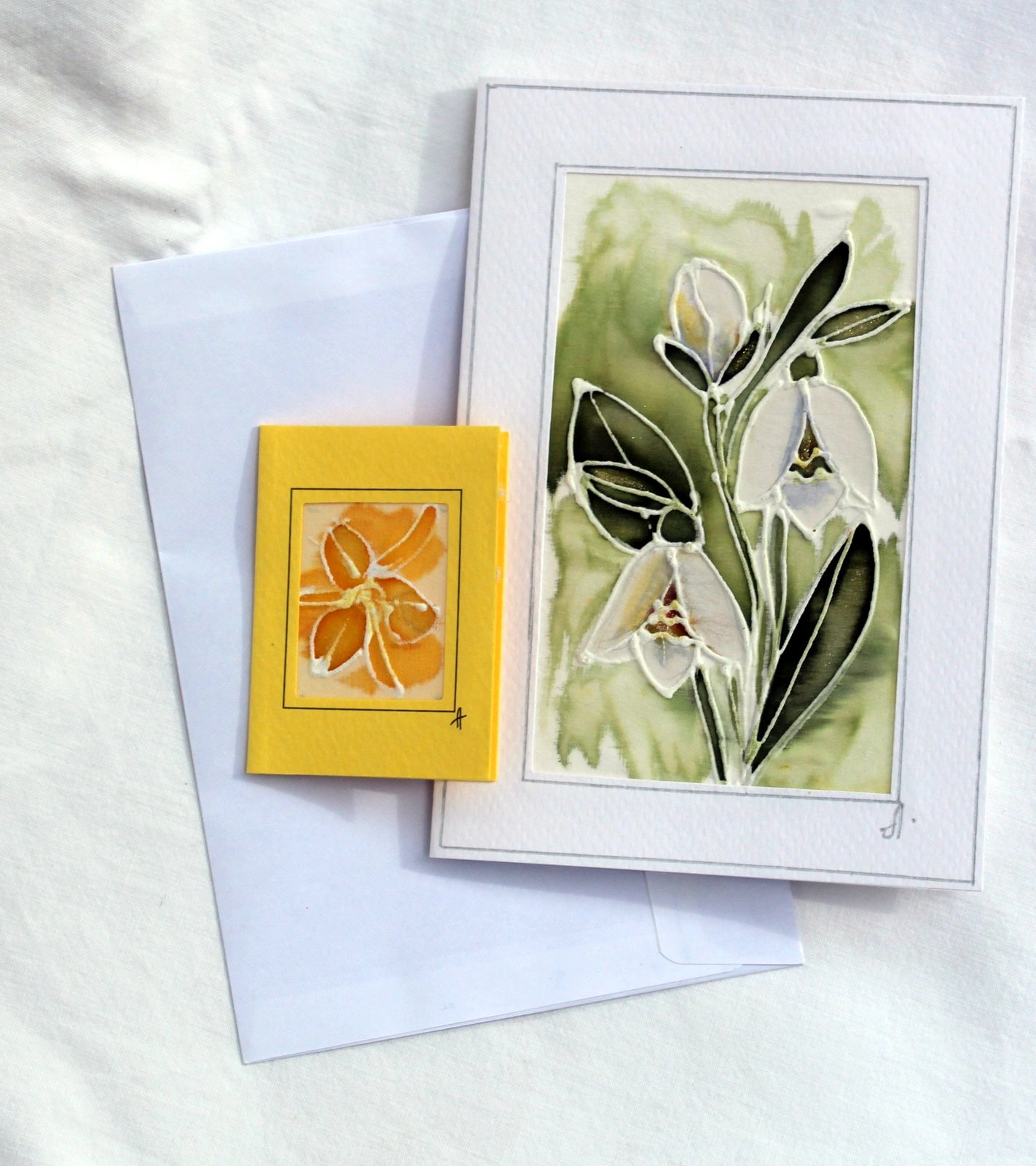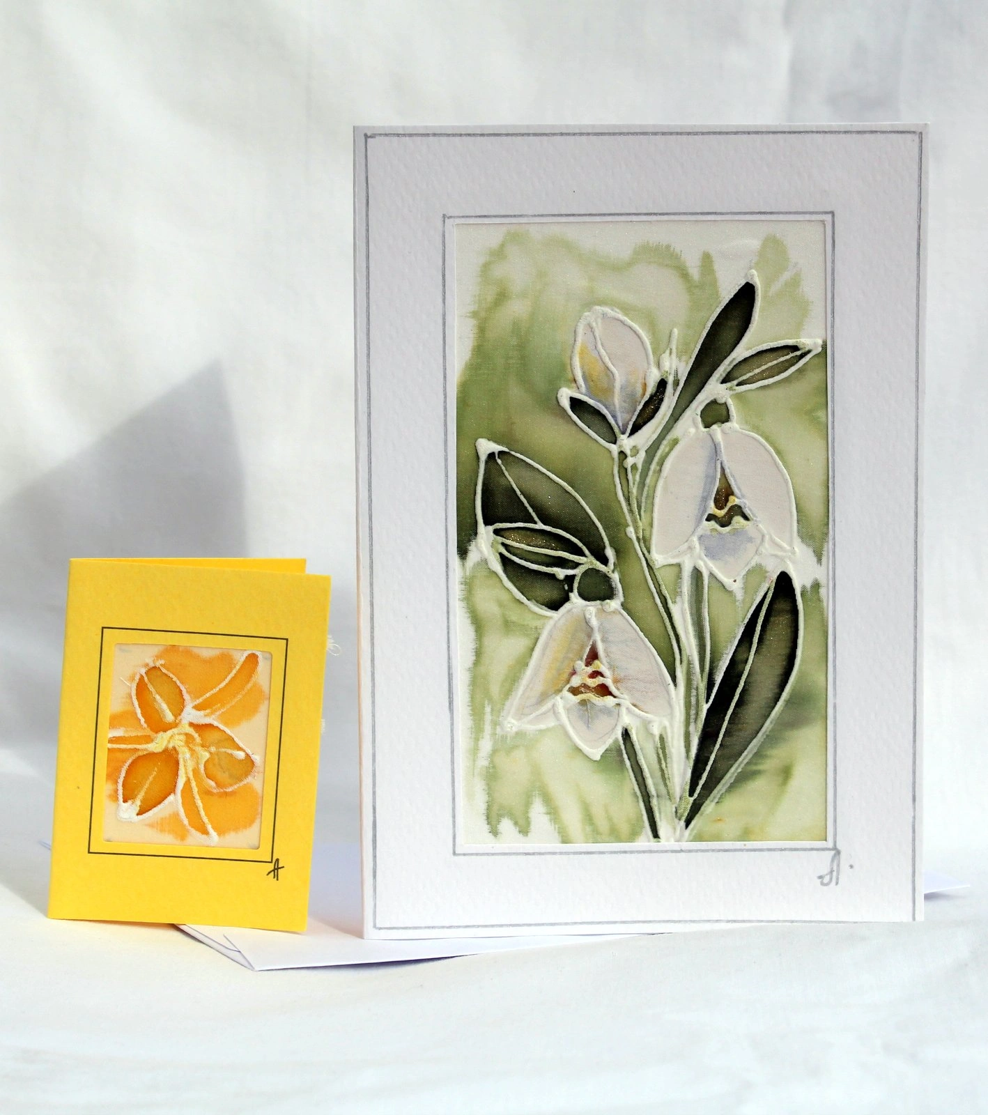 Всяка наша картичка е уникално ръчно рисувано произведение върху естествена коприна.