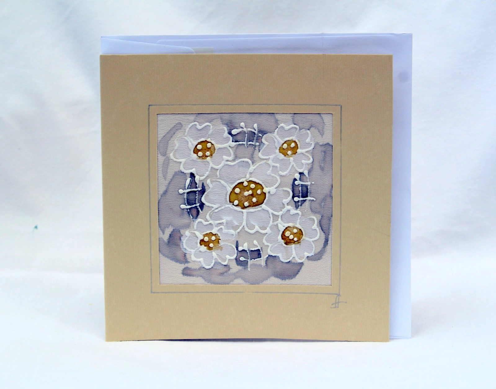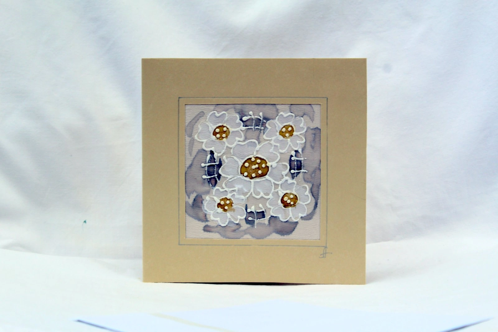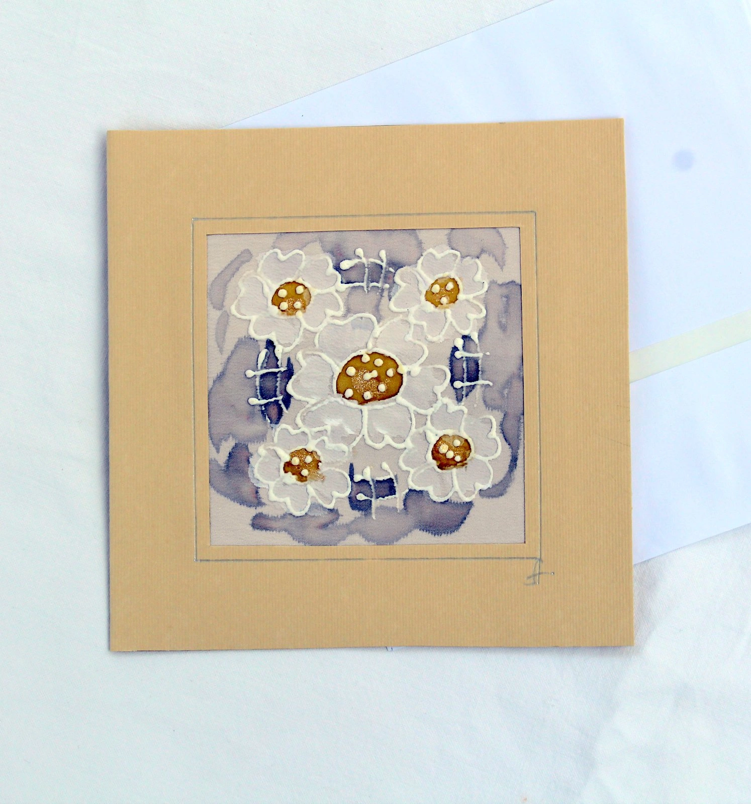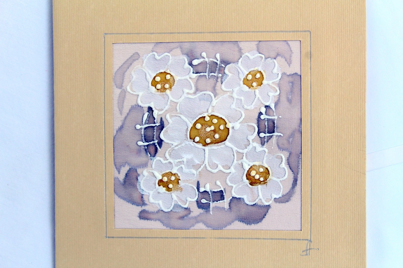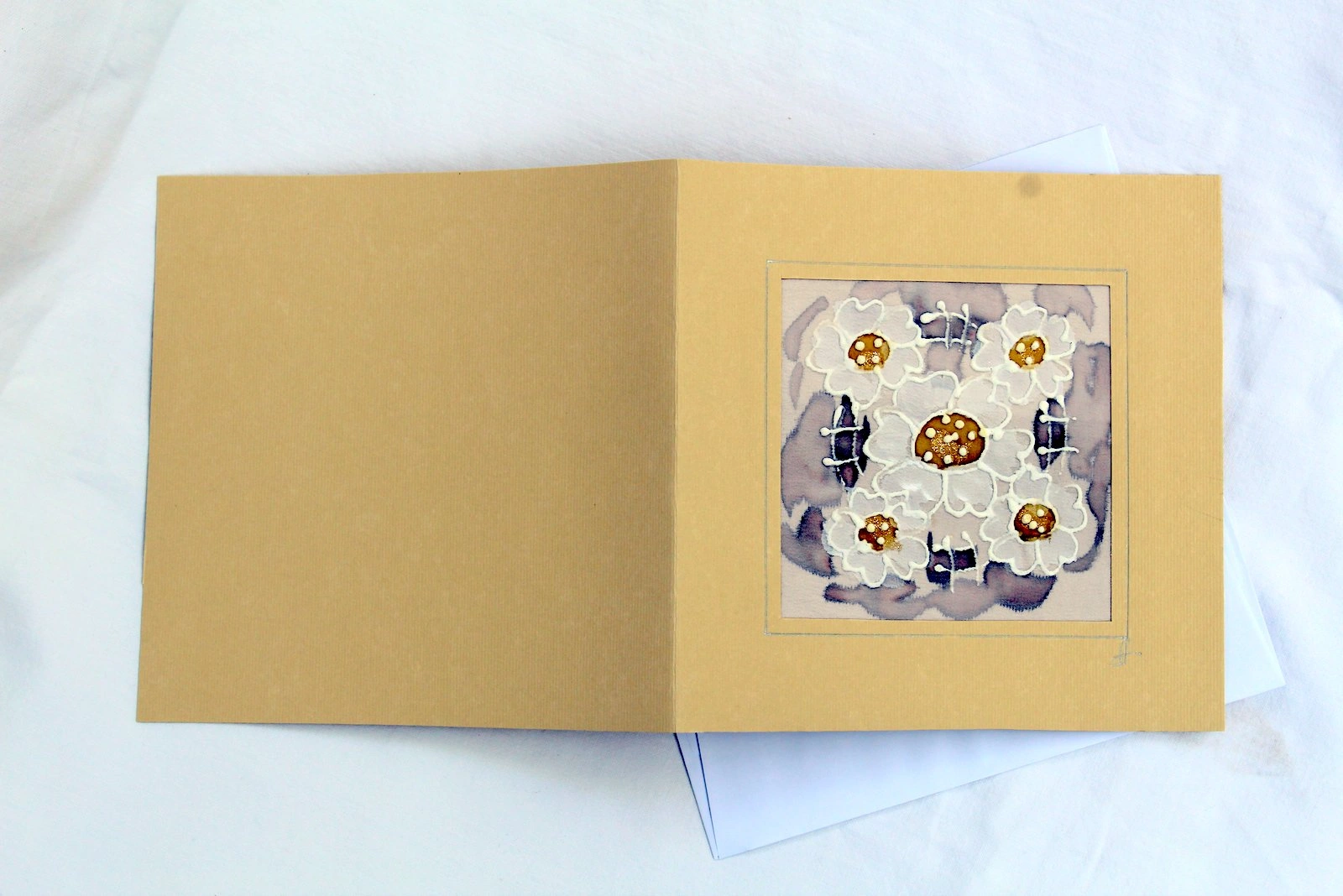 Всяка наша картичка е уникално ръчно рисувано произведение върху естествена коприна.