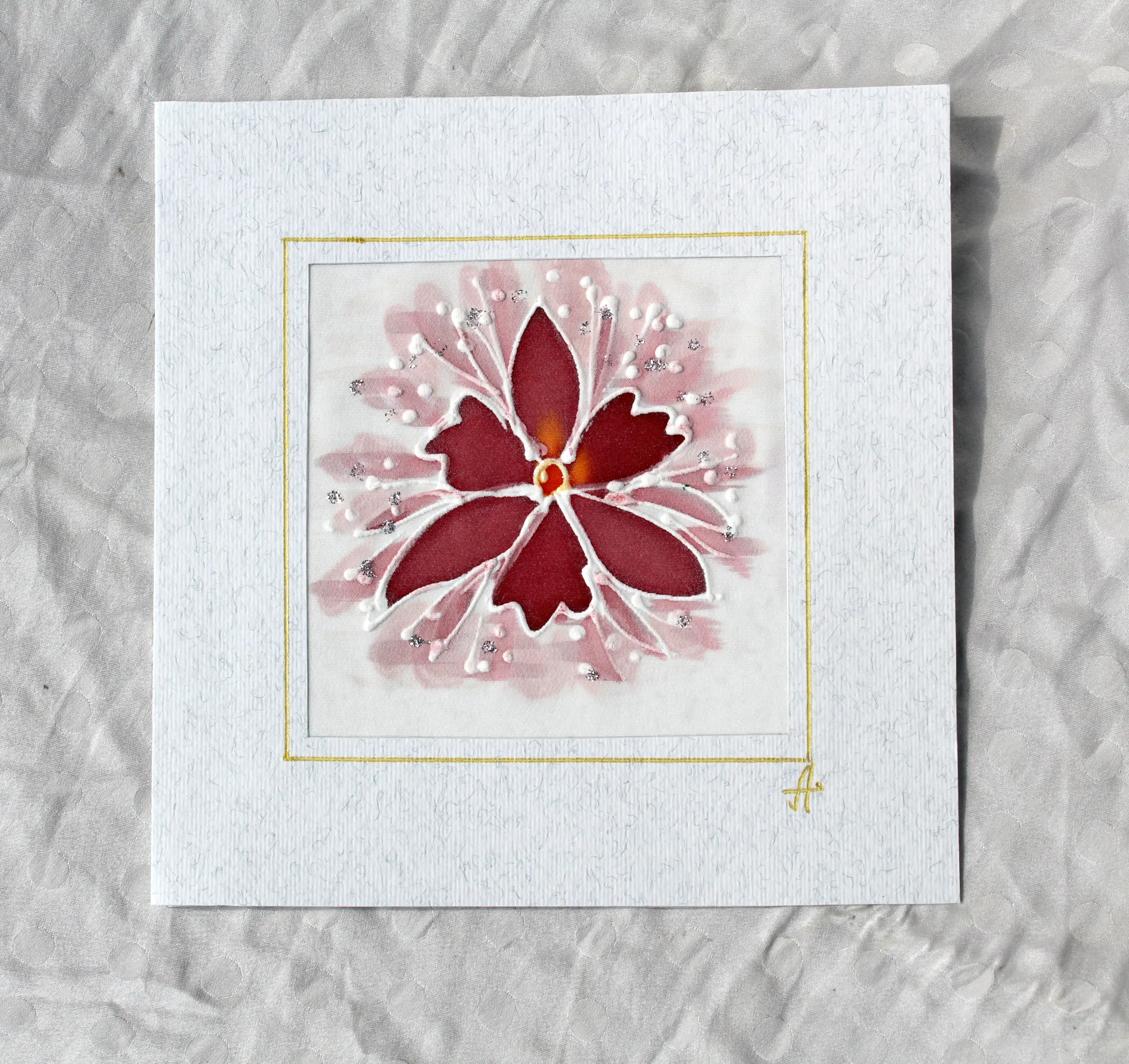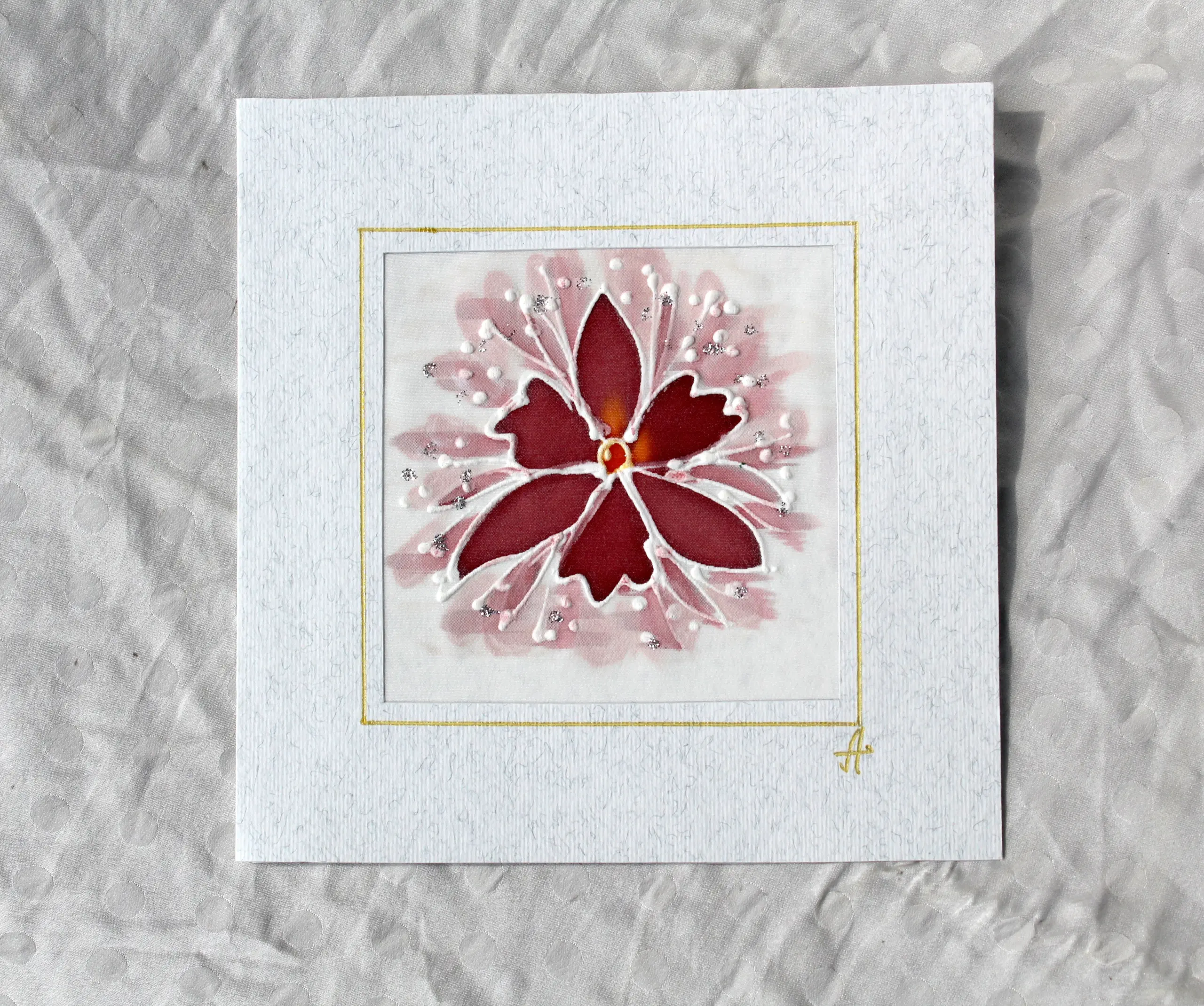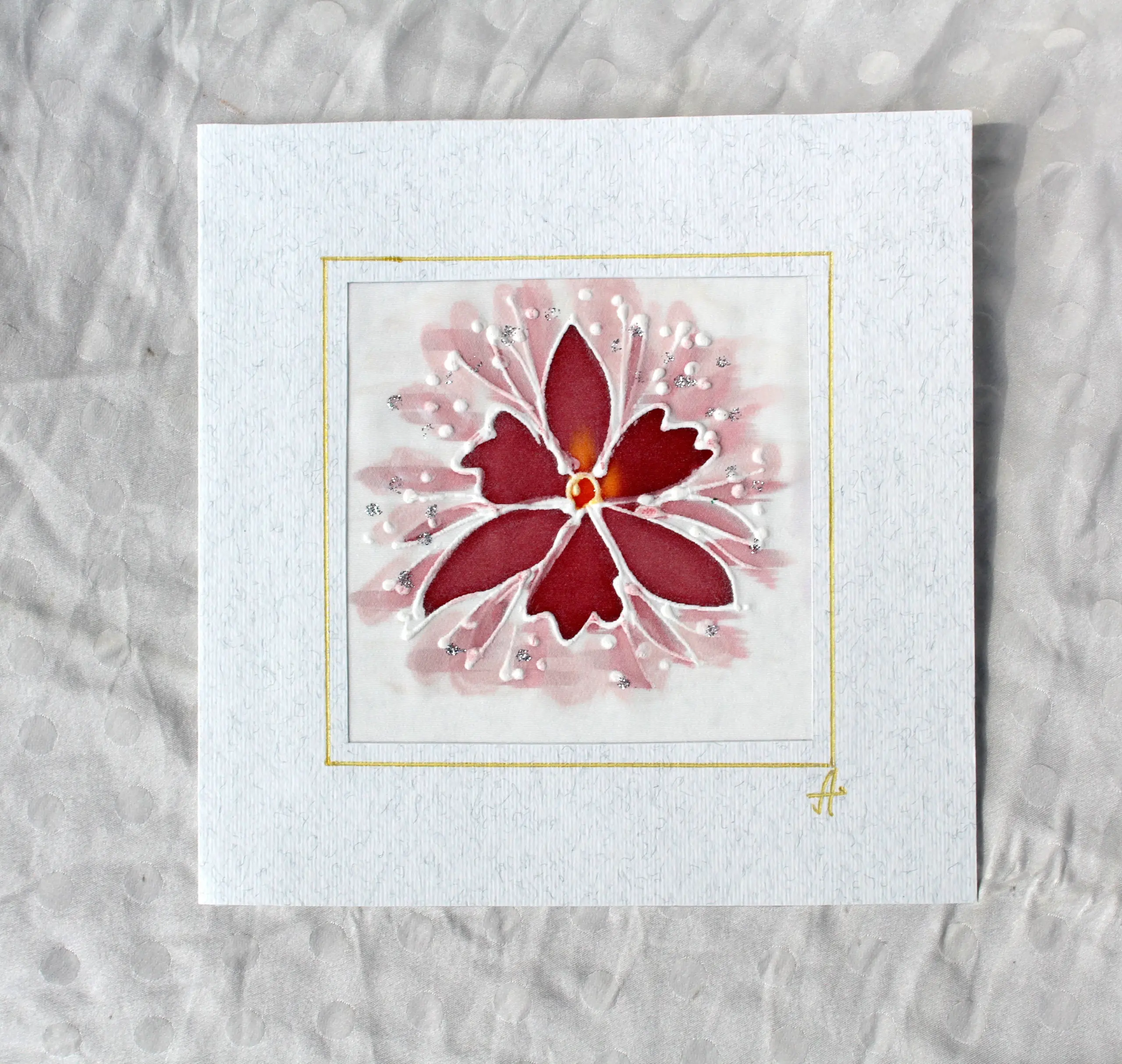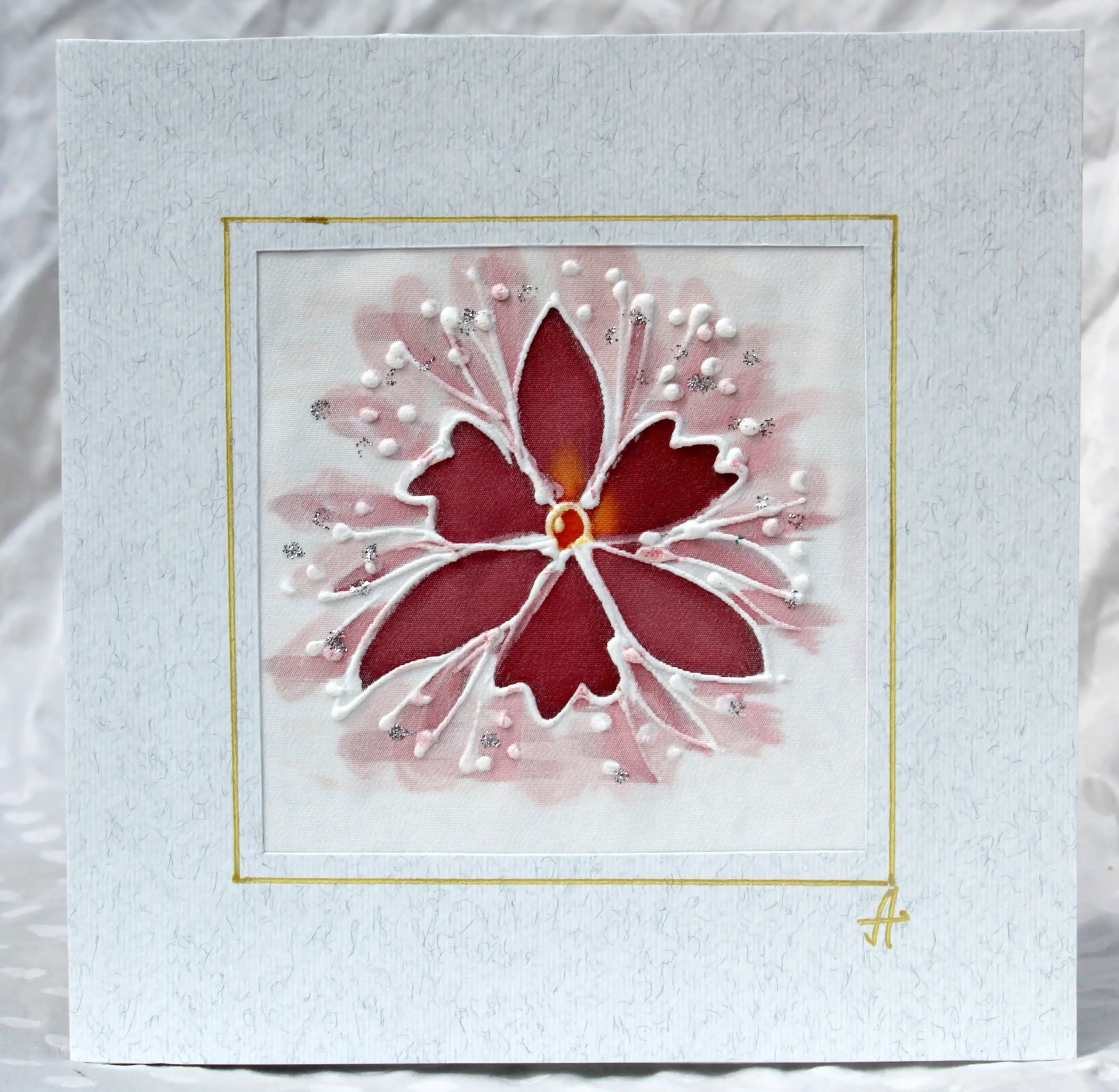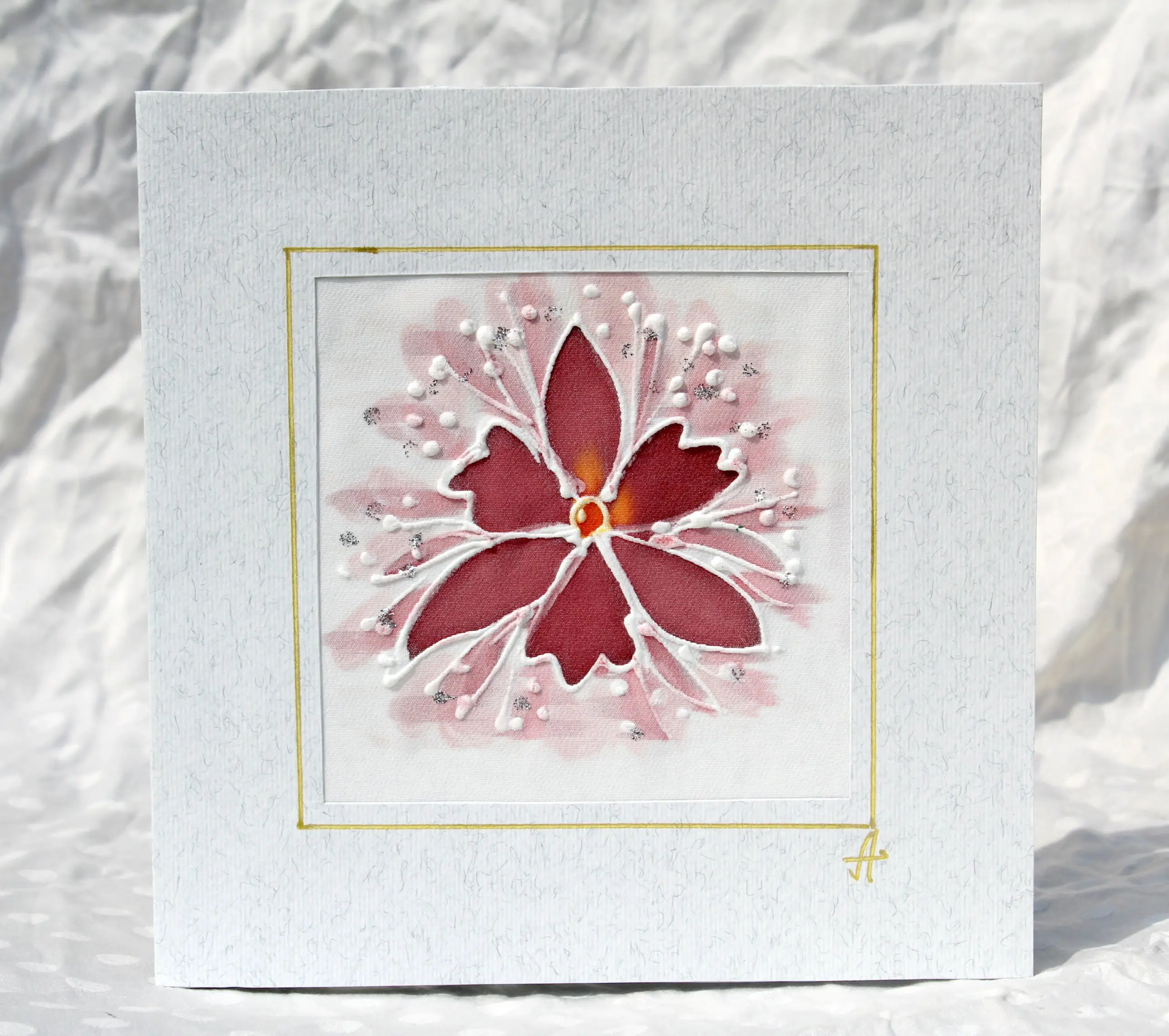 Всяка наша картичка е уникално ръчно рисувано произведение върху естествена коприна.