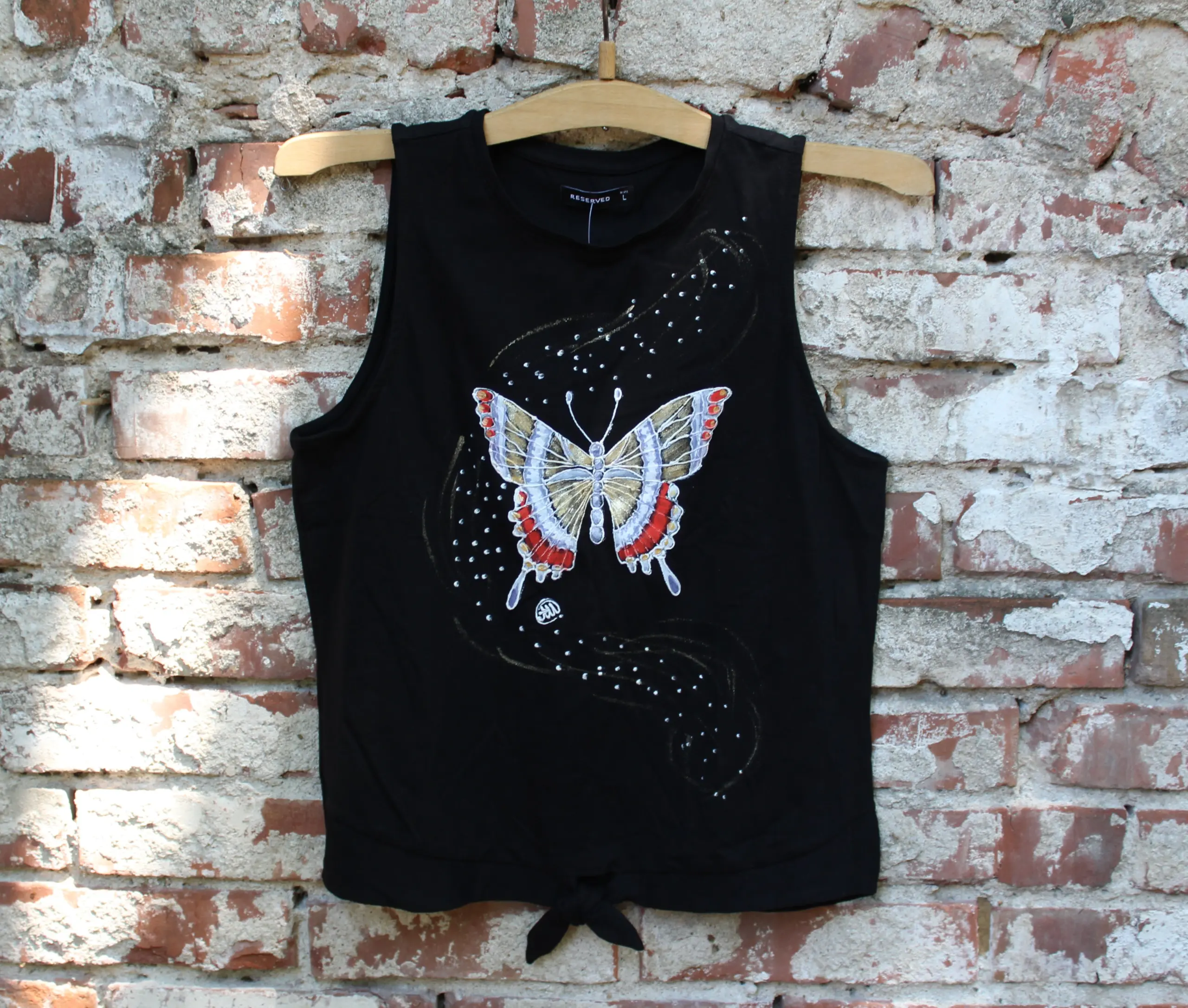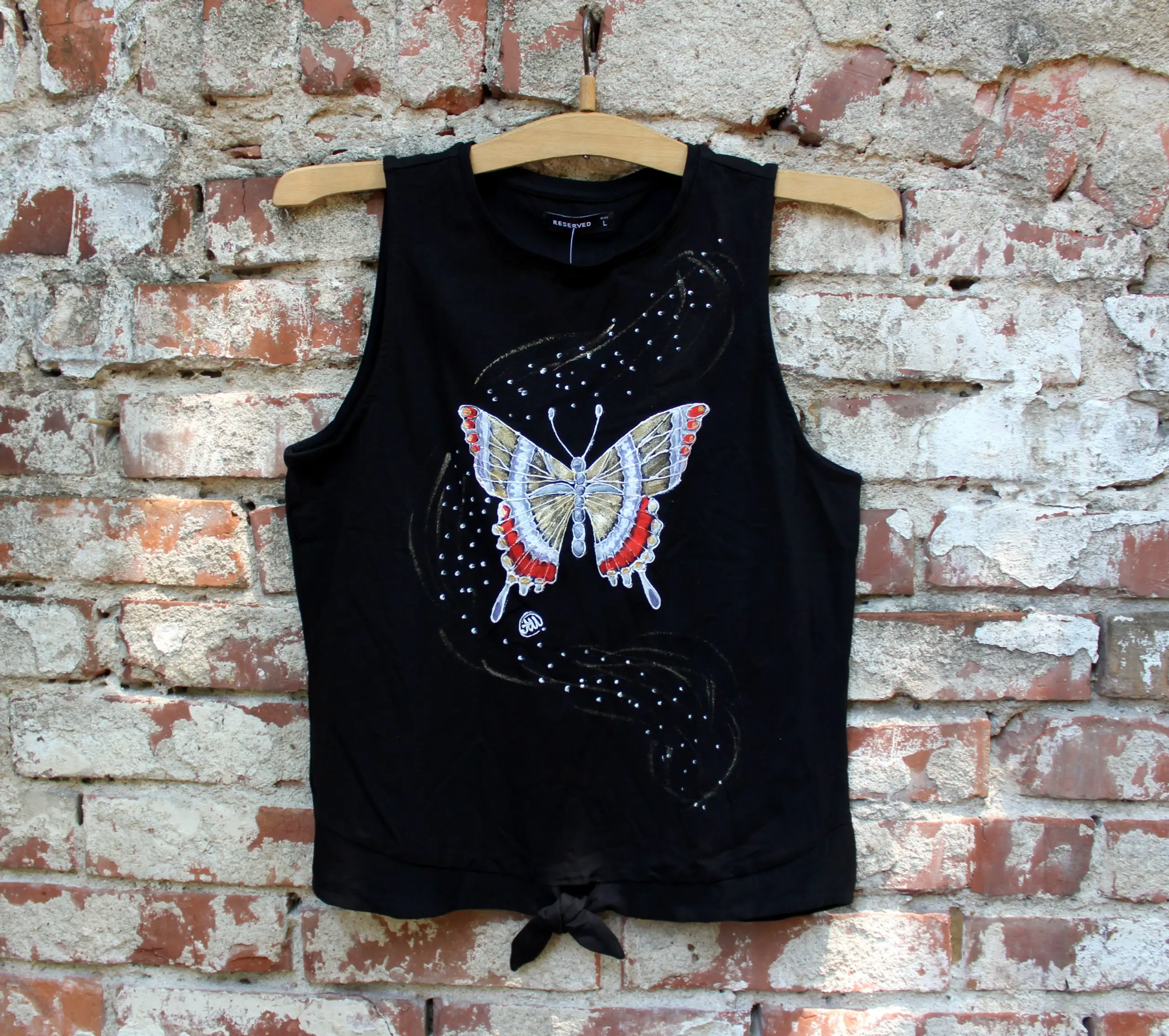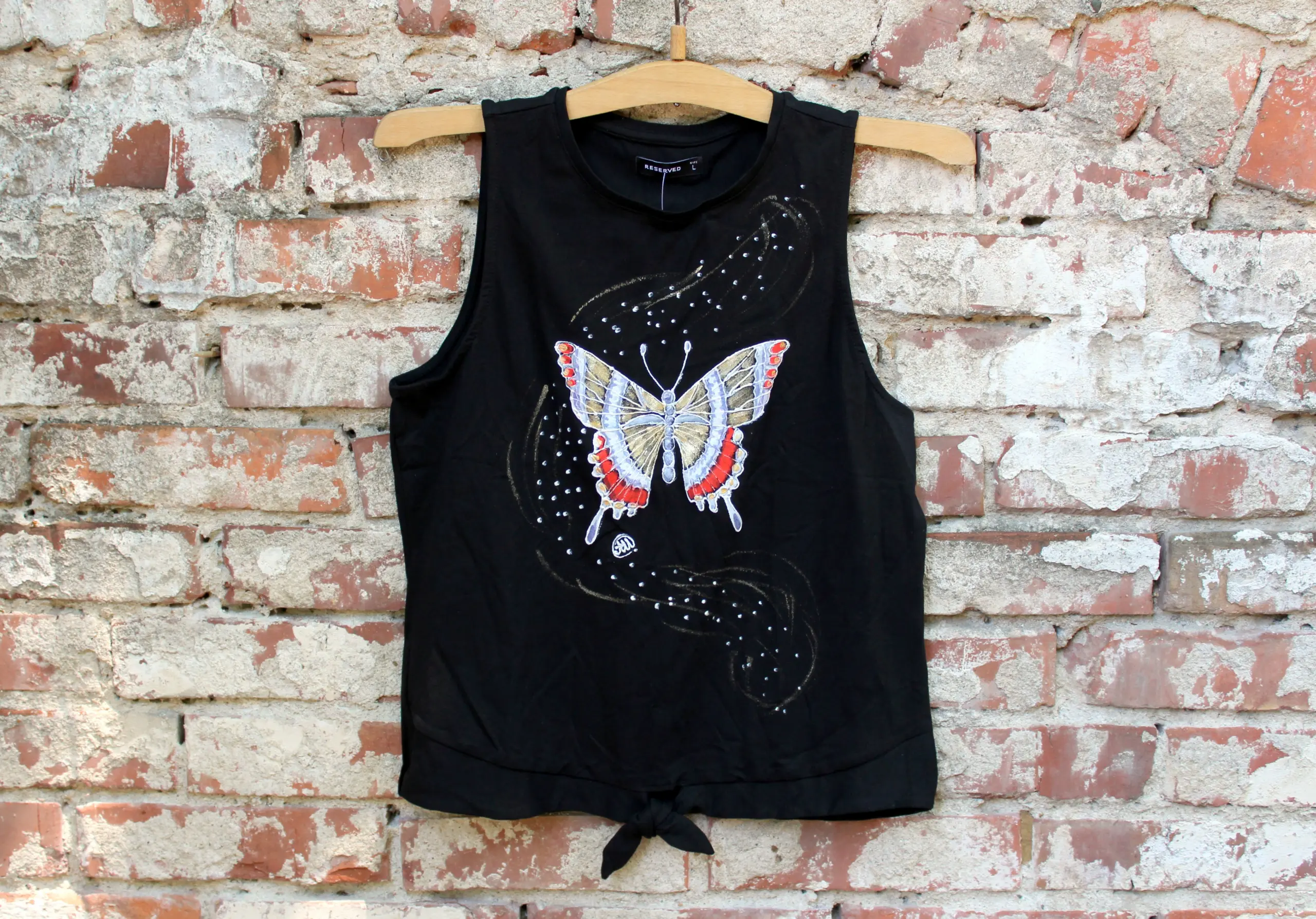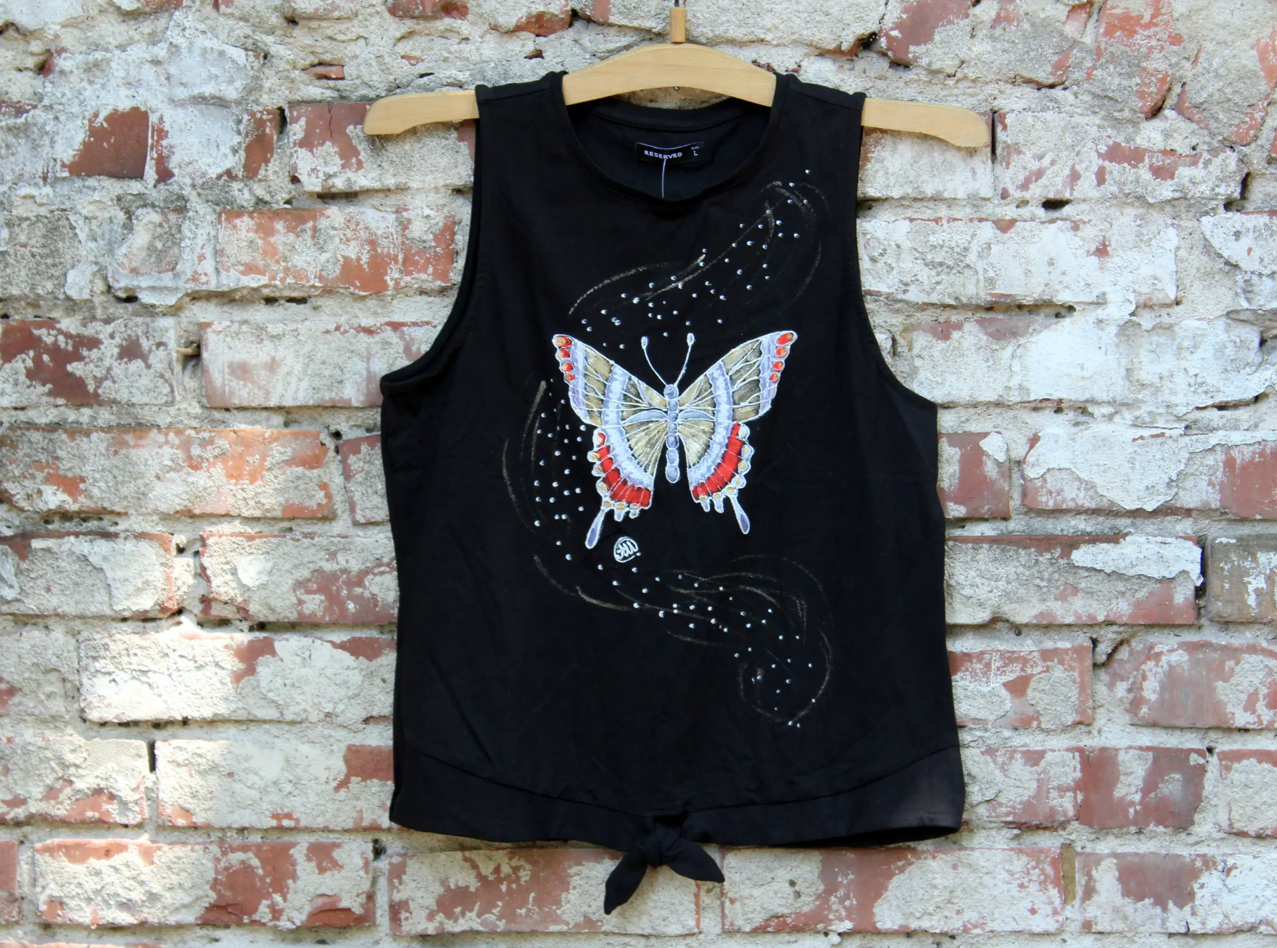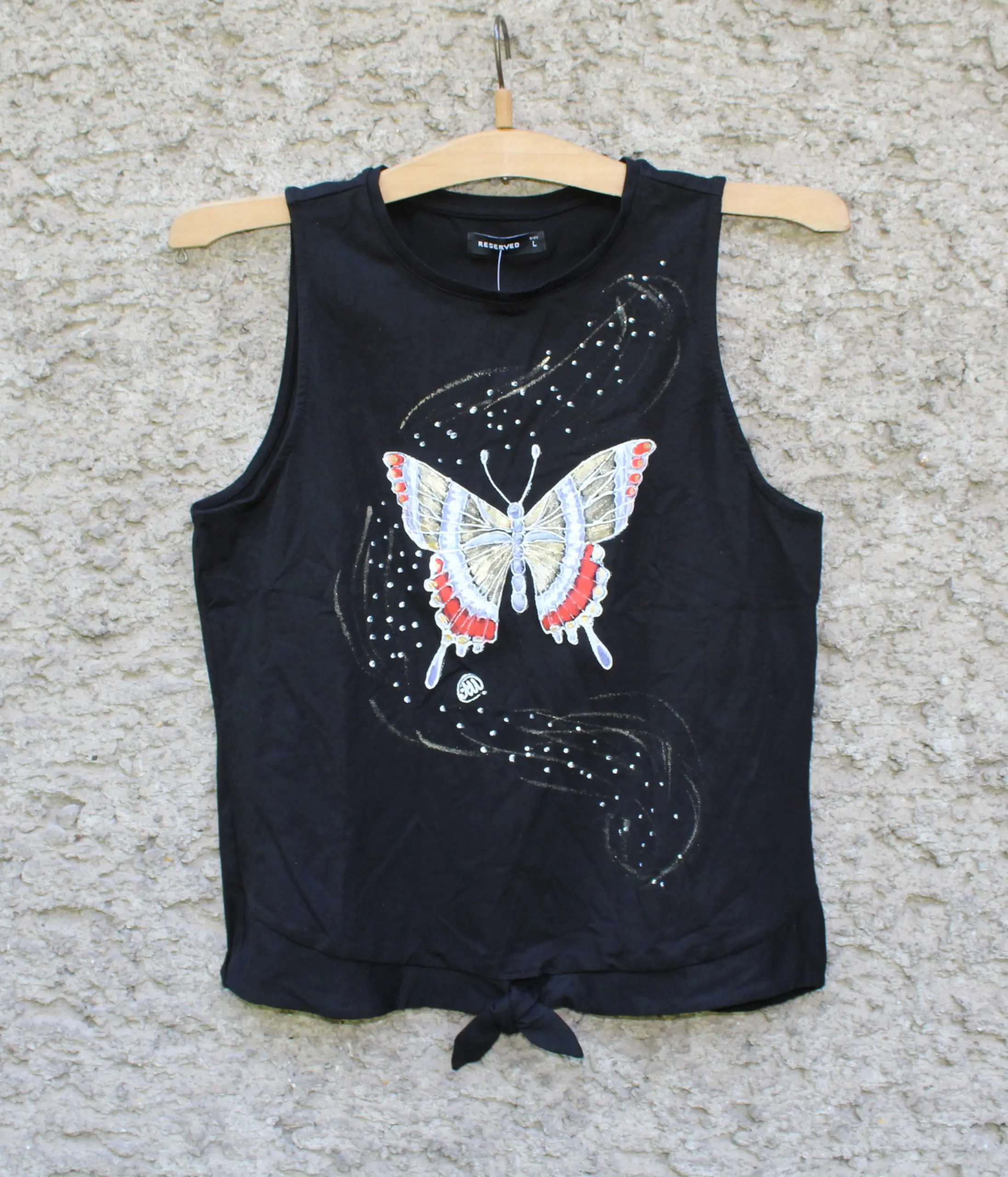 Тъй като точно този модел на потник е изчерпап и не мога да подсигуря същият,ако някой си хареса рисуваната пеперуда мога да предложа същият черен но без връзките отпред-изчистен.Пишете ми и ще намериме решение.Благодаря за разбирането.