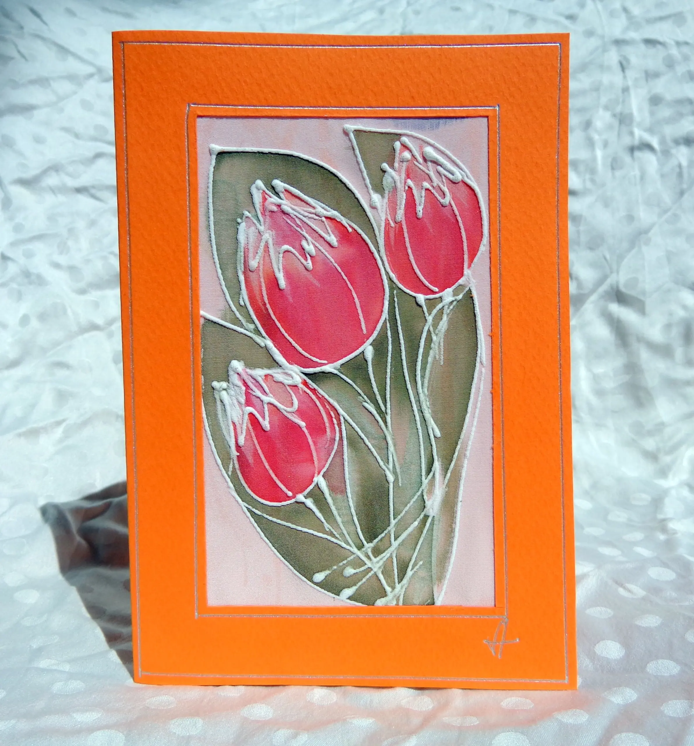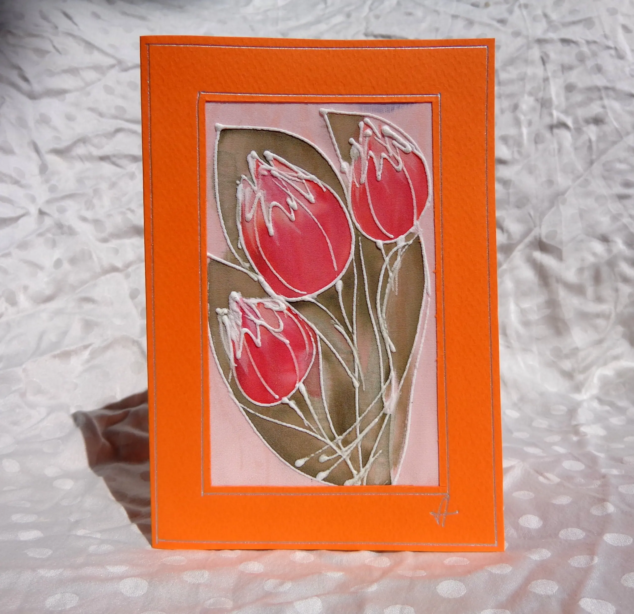 Всяка наша картичка е уникално ръчно рисувано произведение върху естествена коприна.