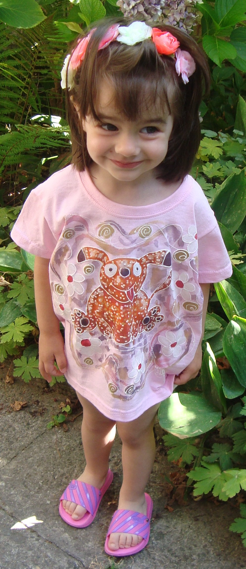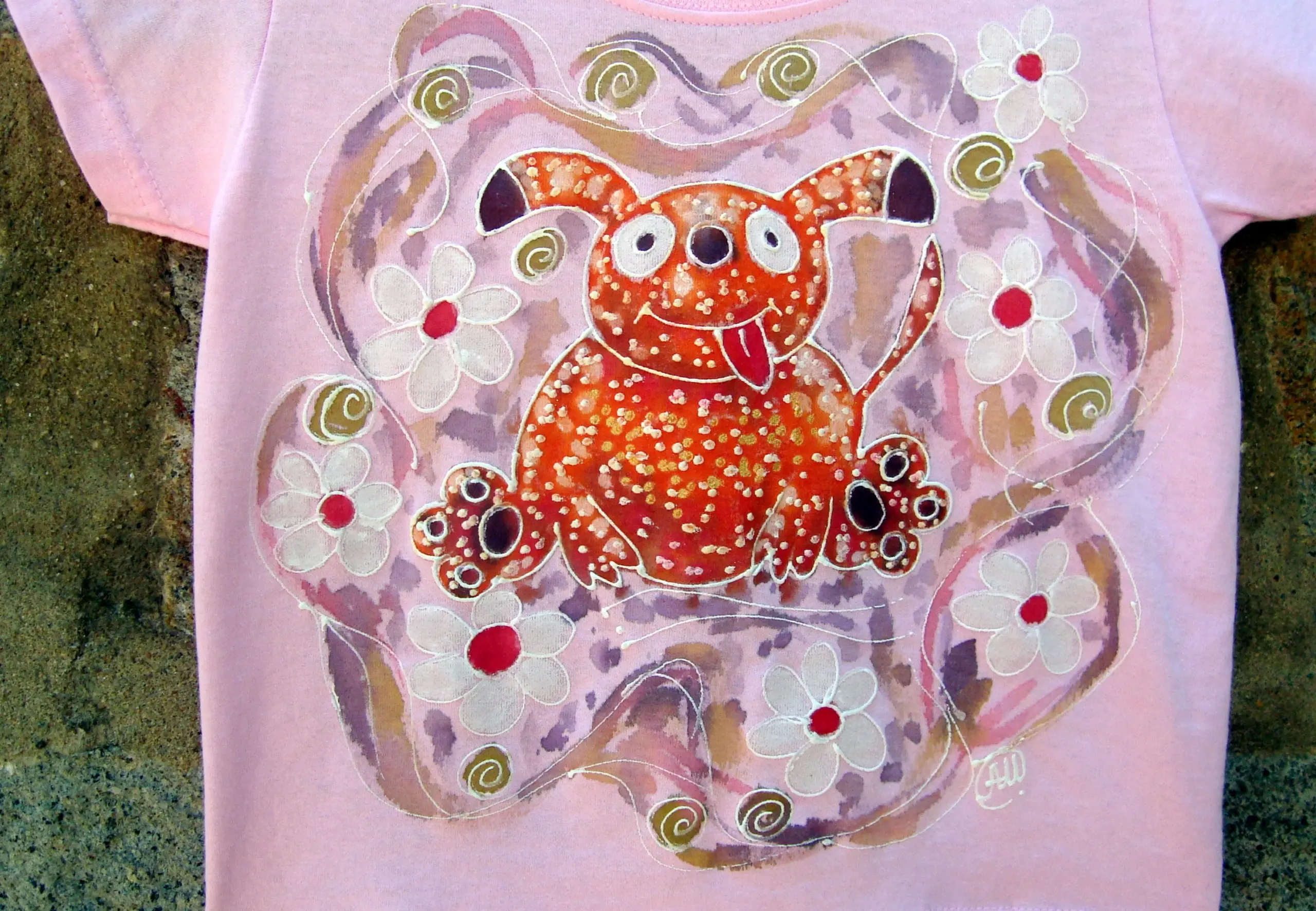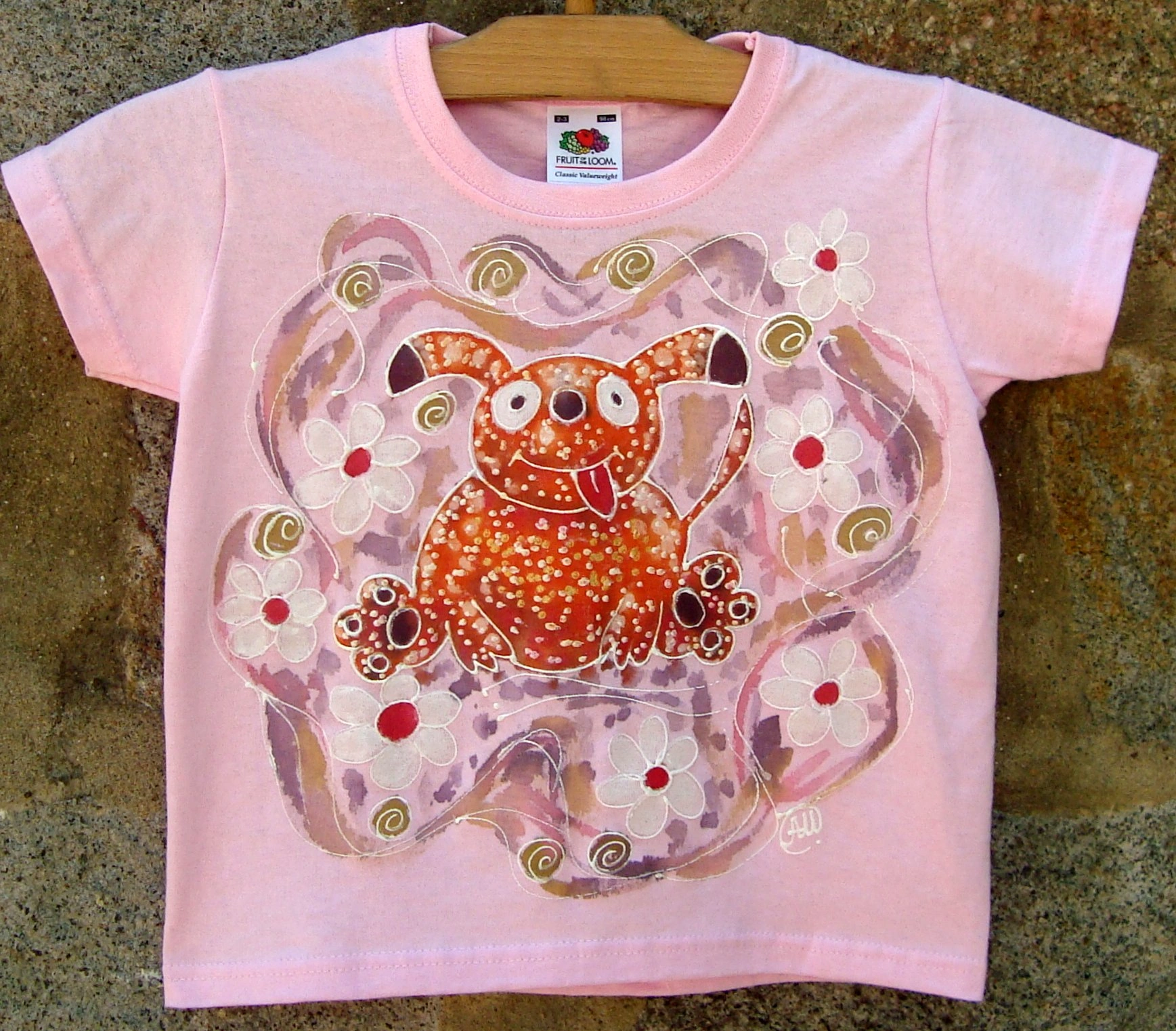 Малко рисувано кученце върху розова фанелка са чудесен начин да зарадвате малките деца.