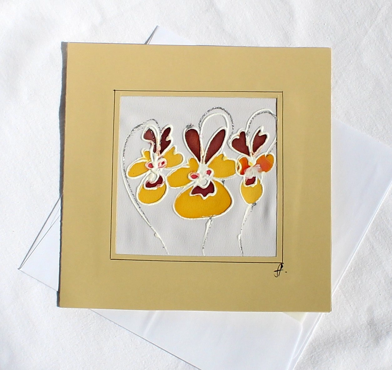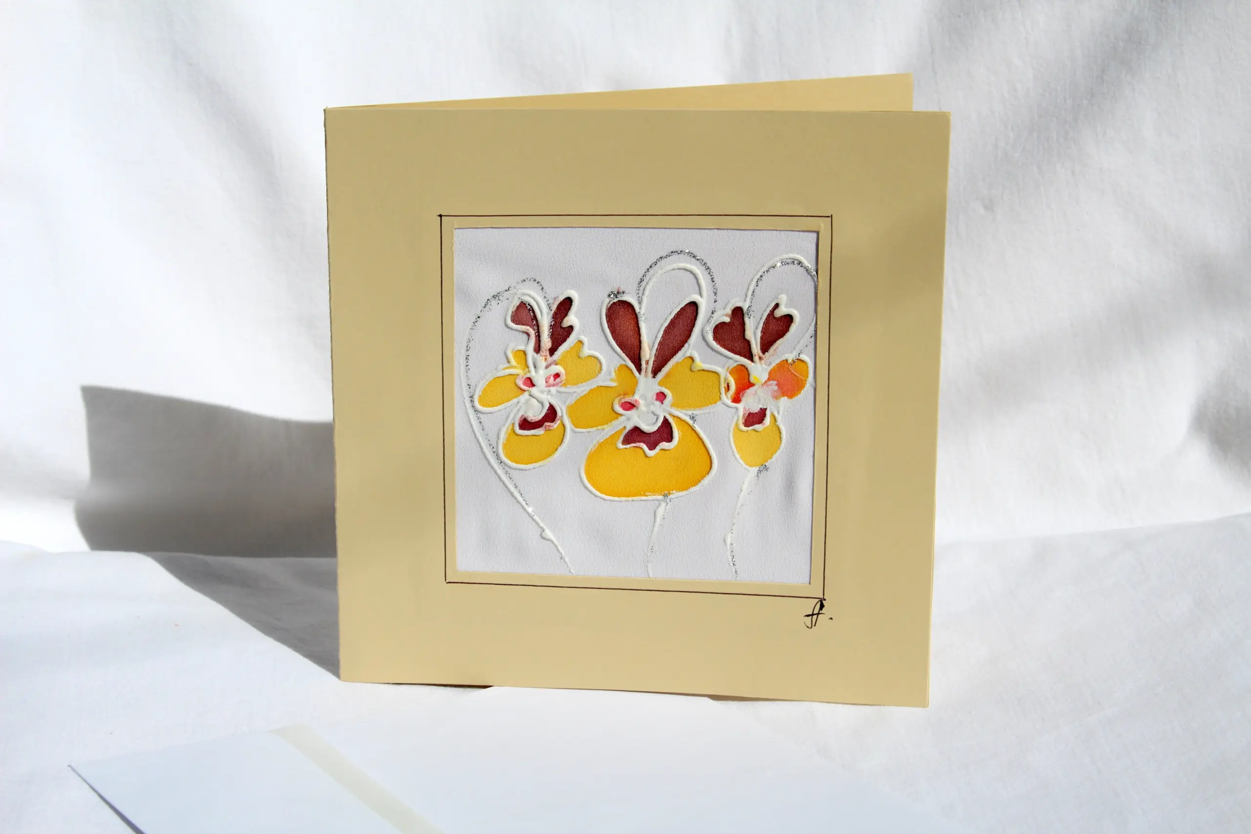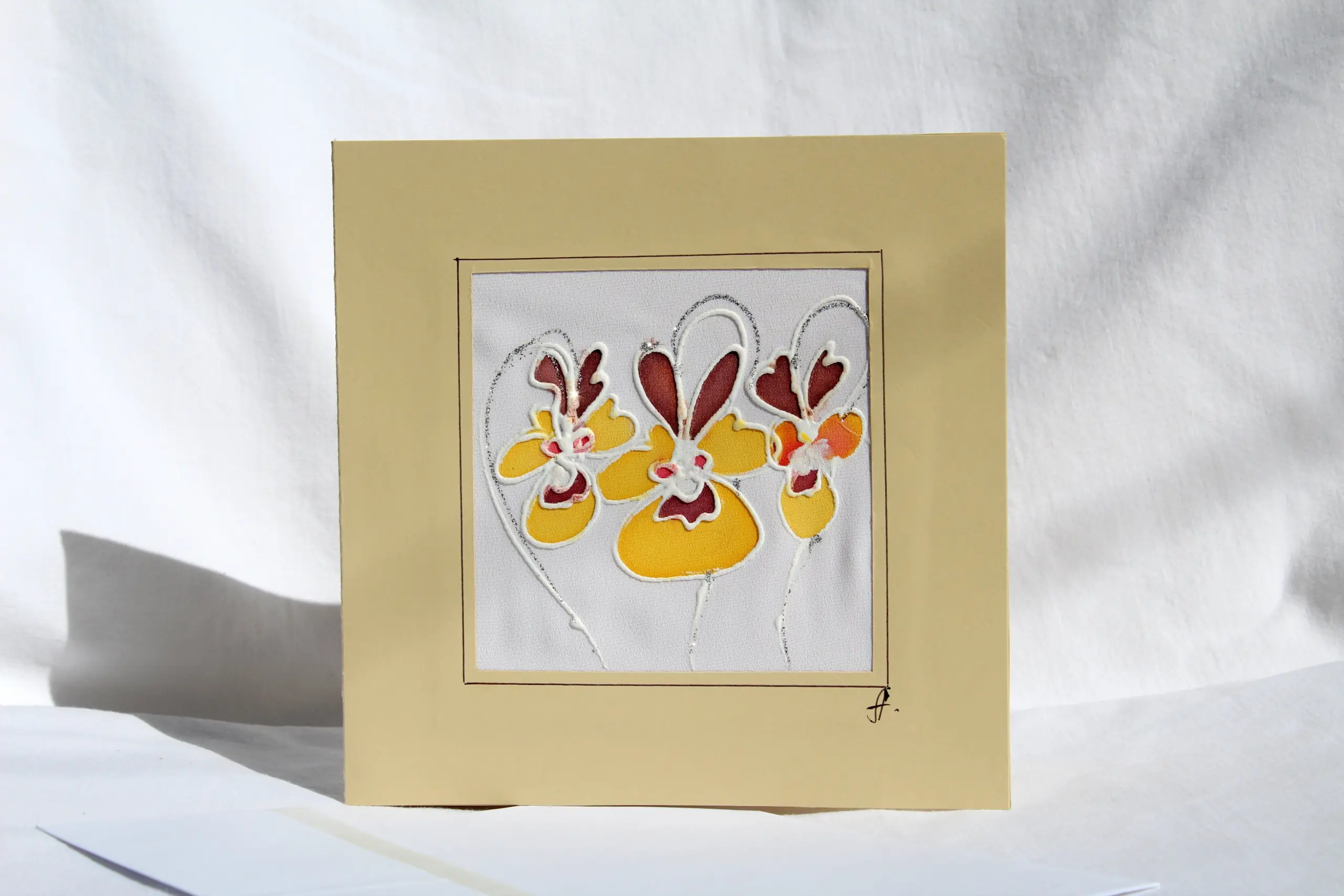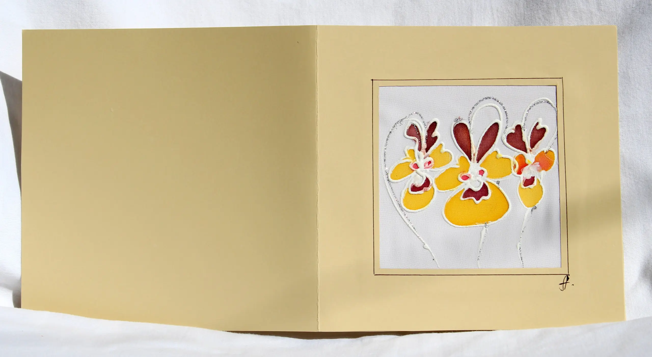 Всяка наша картичка е уникално ръчно рисувано произведение върху естествена коприна.