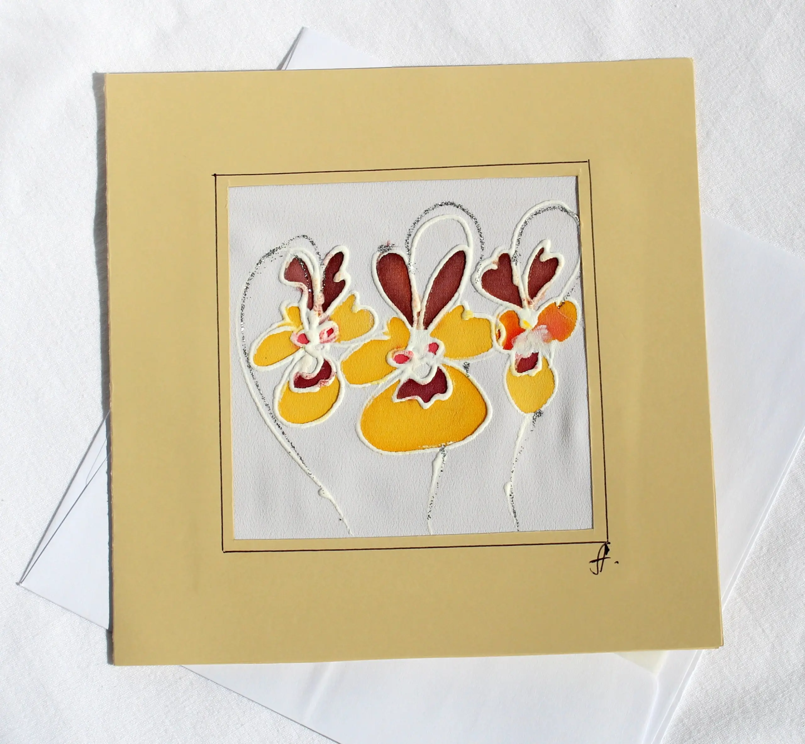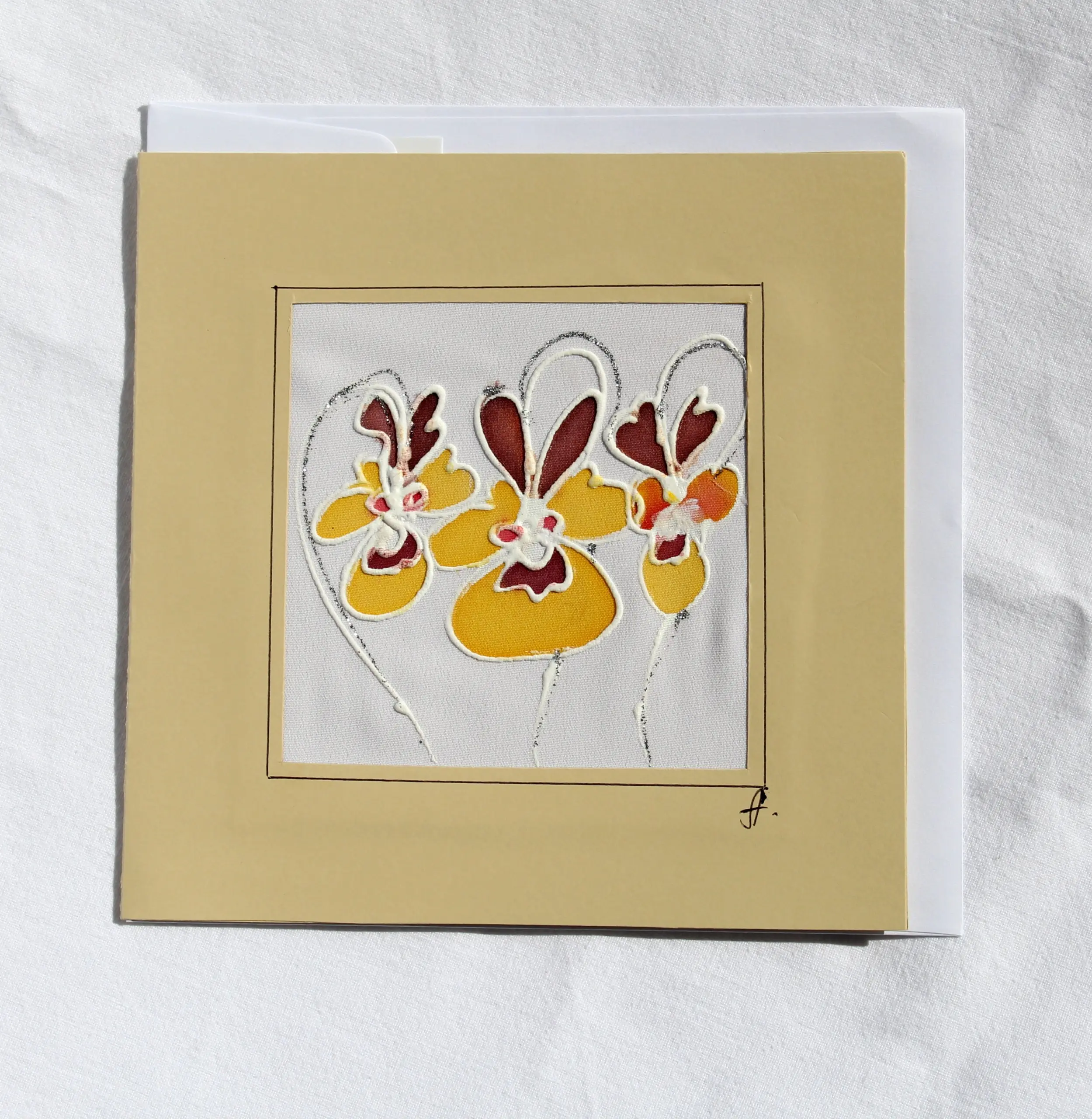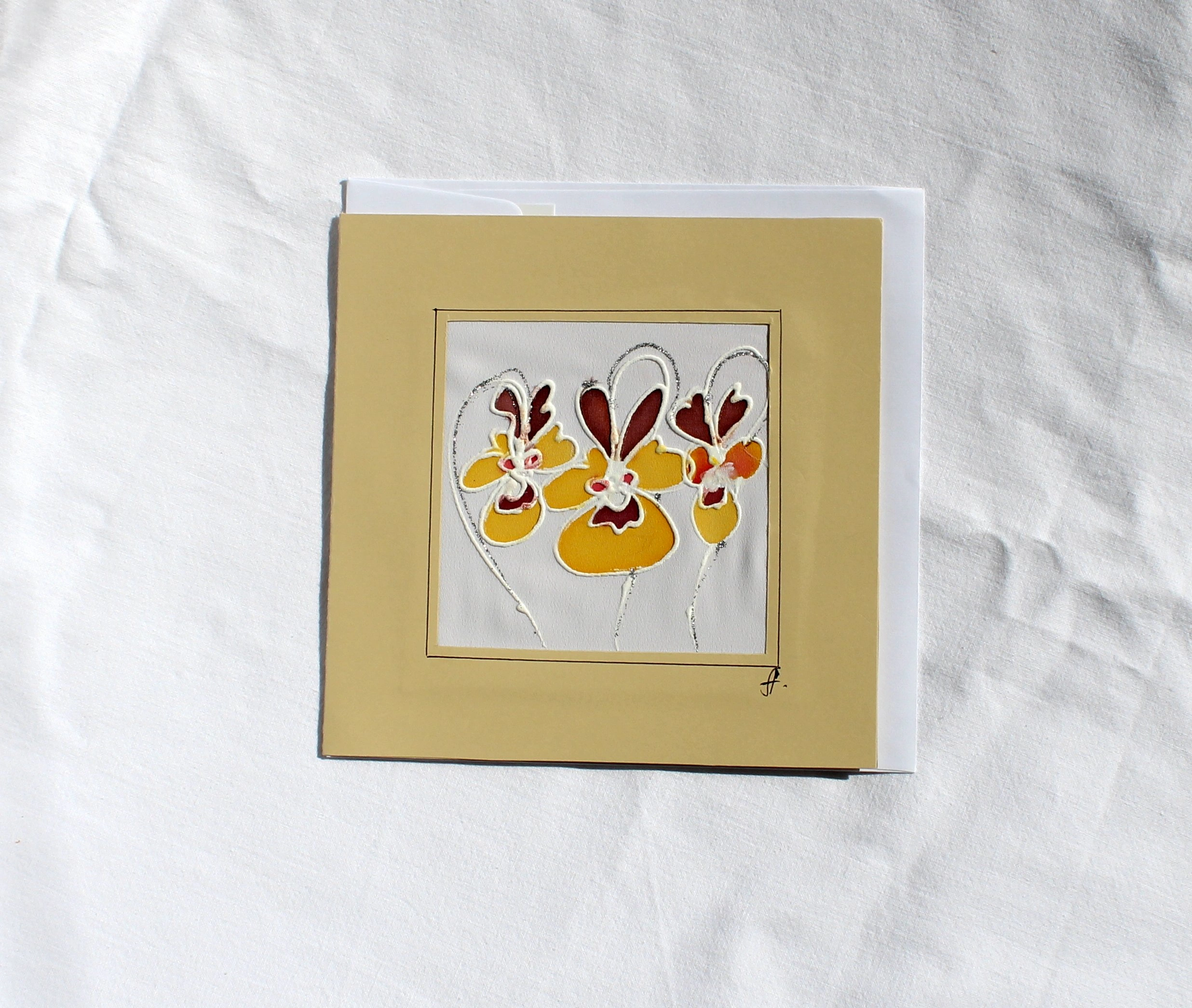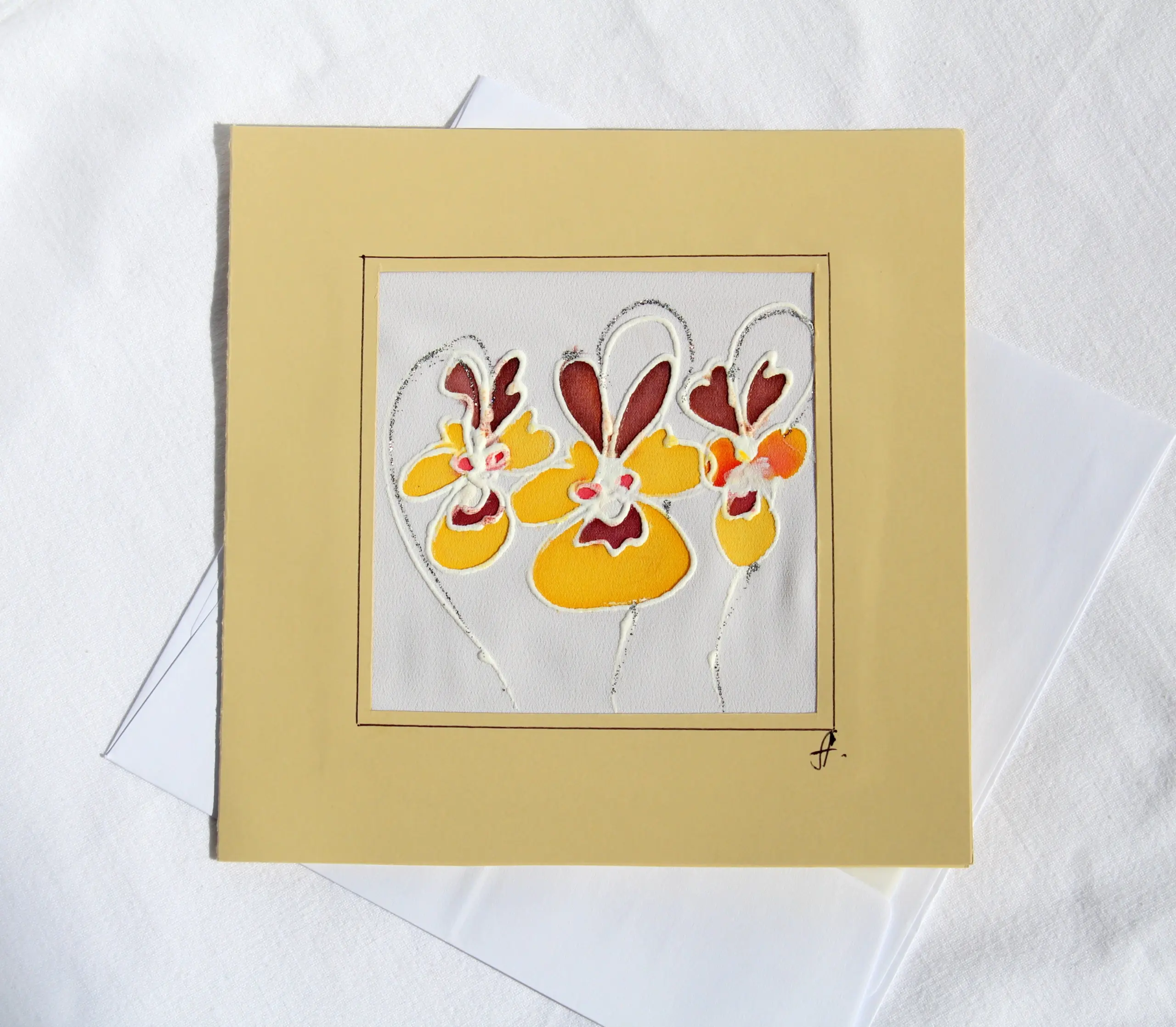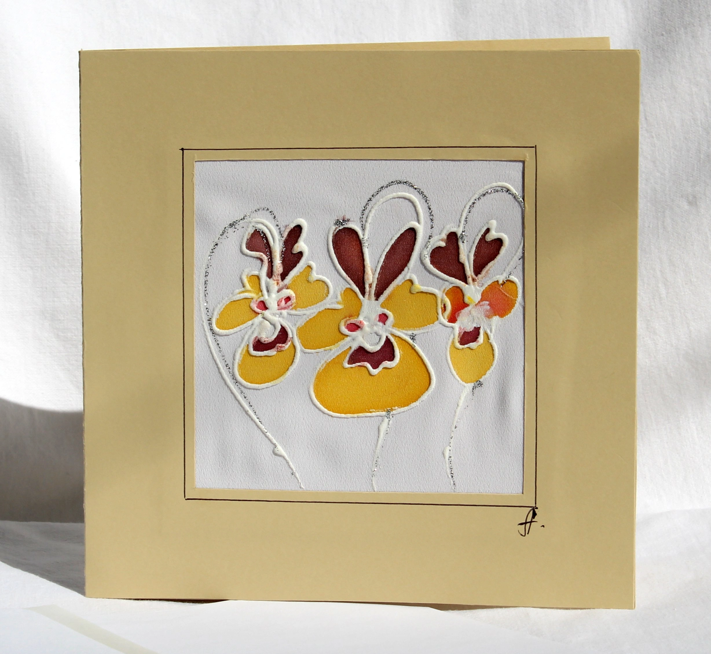 Всяка наша картичка е уникално ръчно рисувано произведение върху естествена коприна.