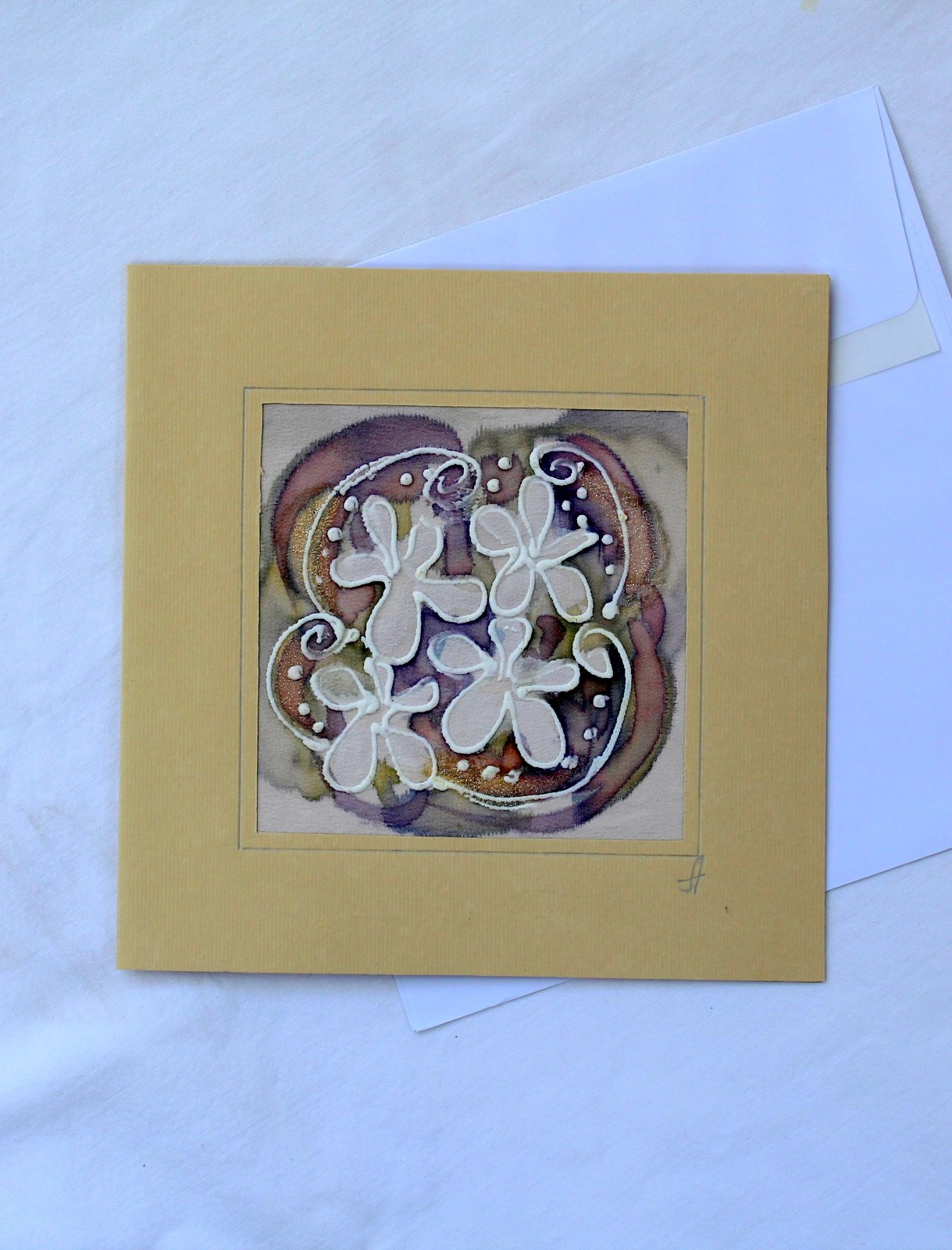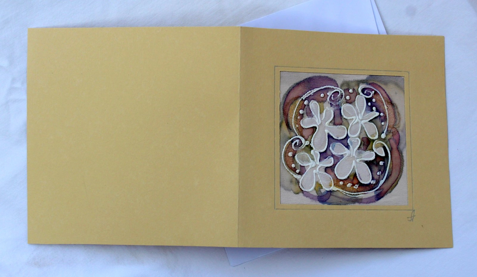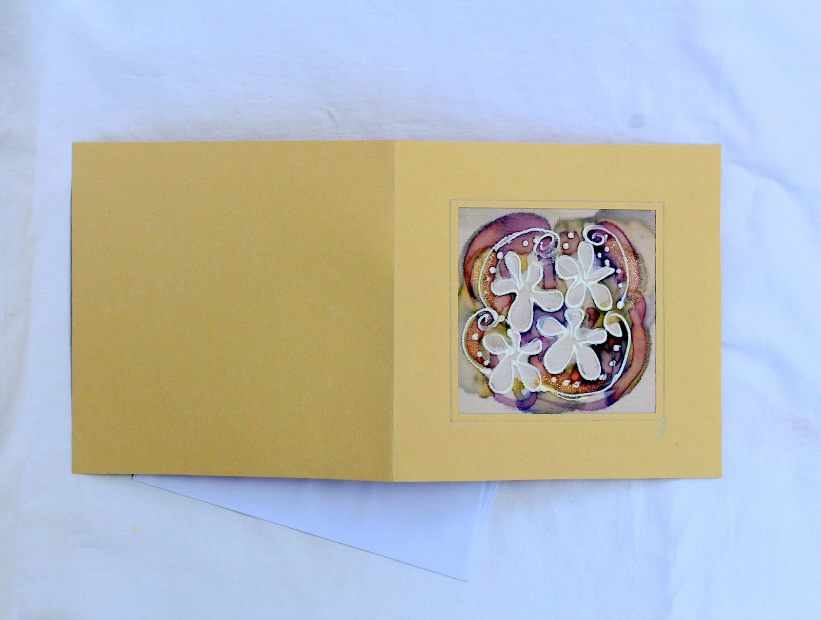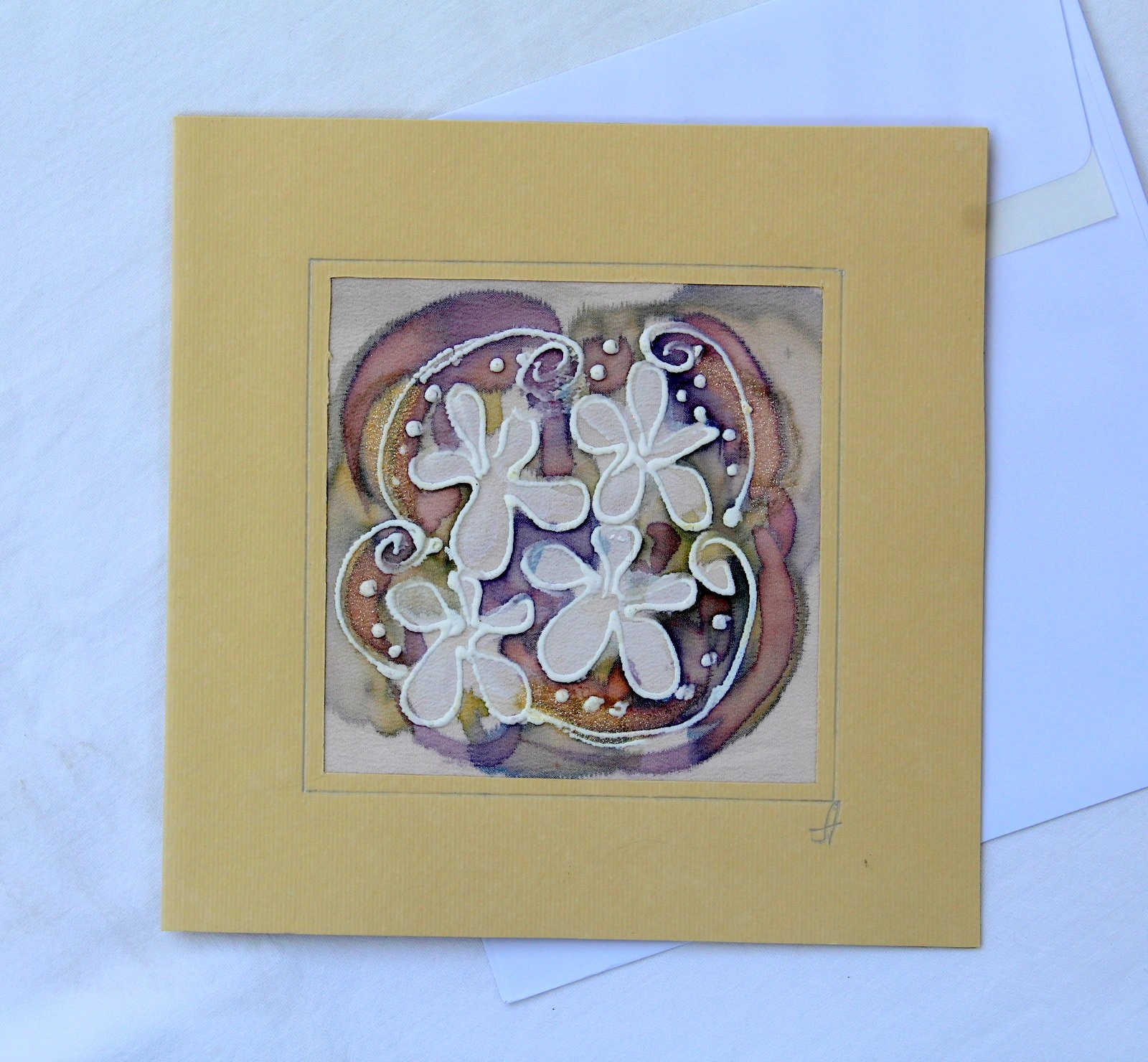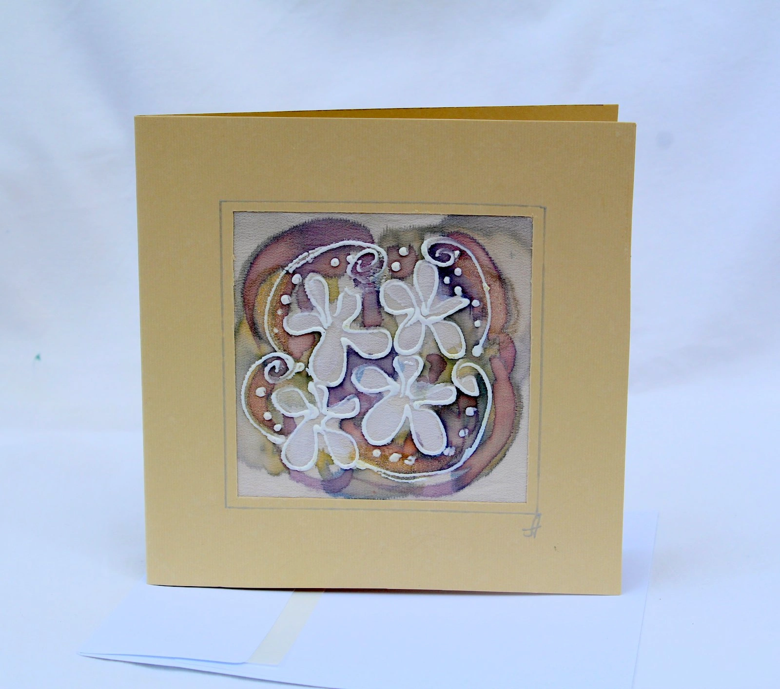 Всяка наша картичка е уникално ръчно рисувано произведение върху естествена коприна.Всяка изработка оставя своят отпечатък, който придава уникалност на всяка изработка.