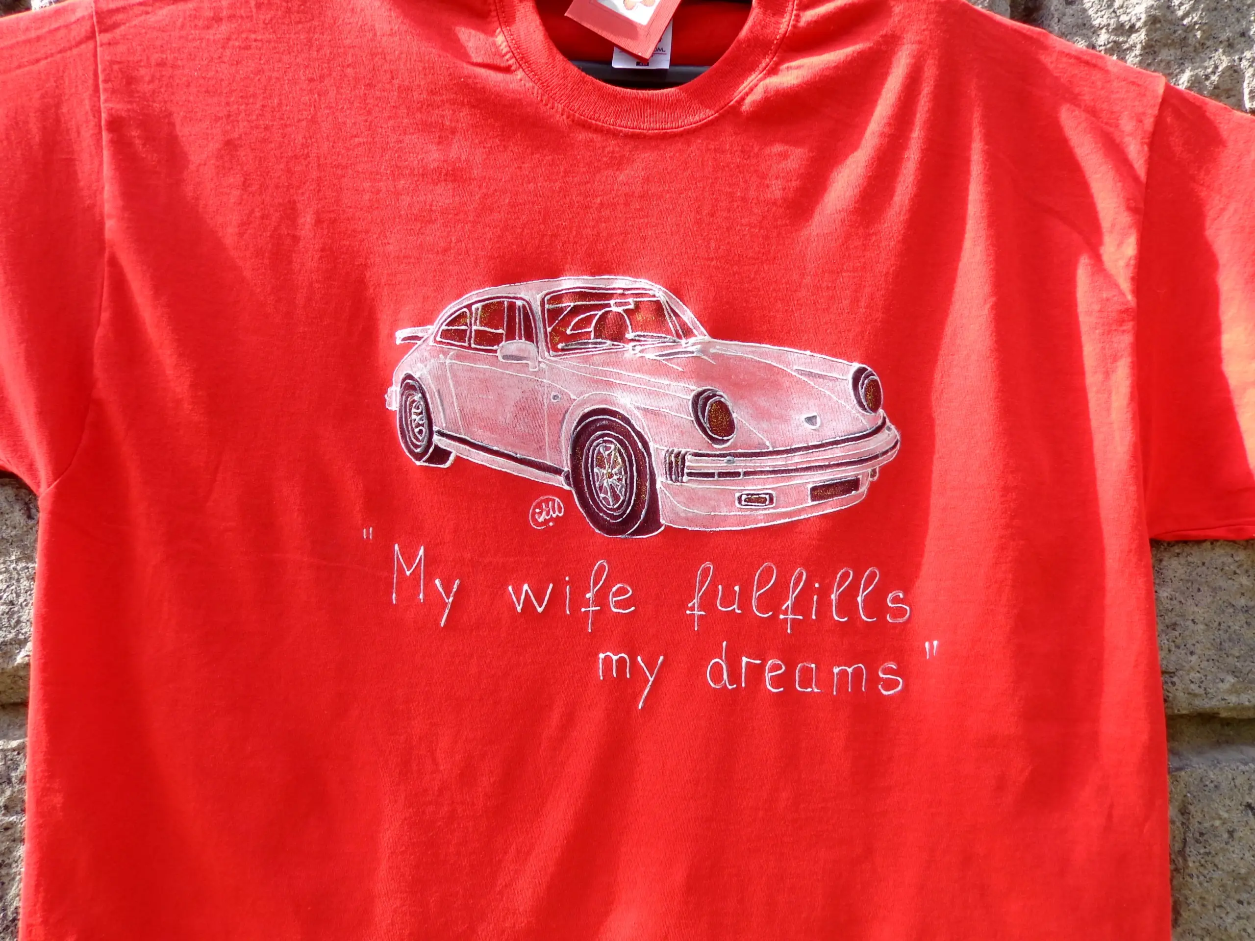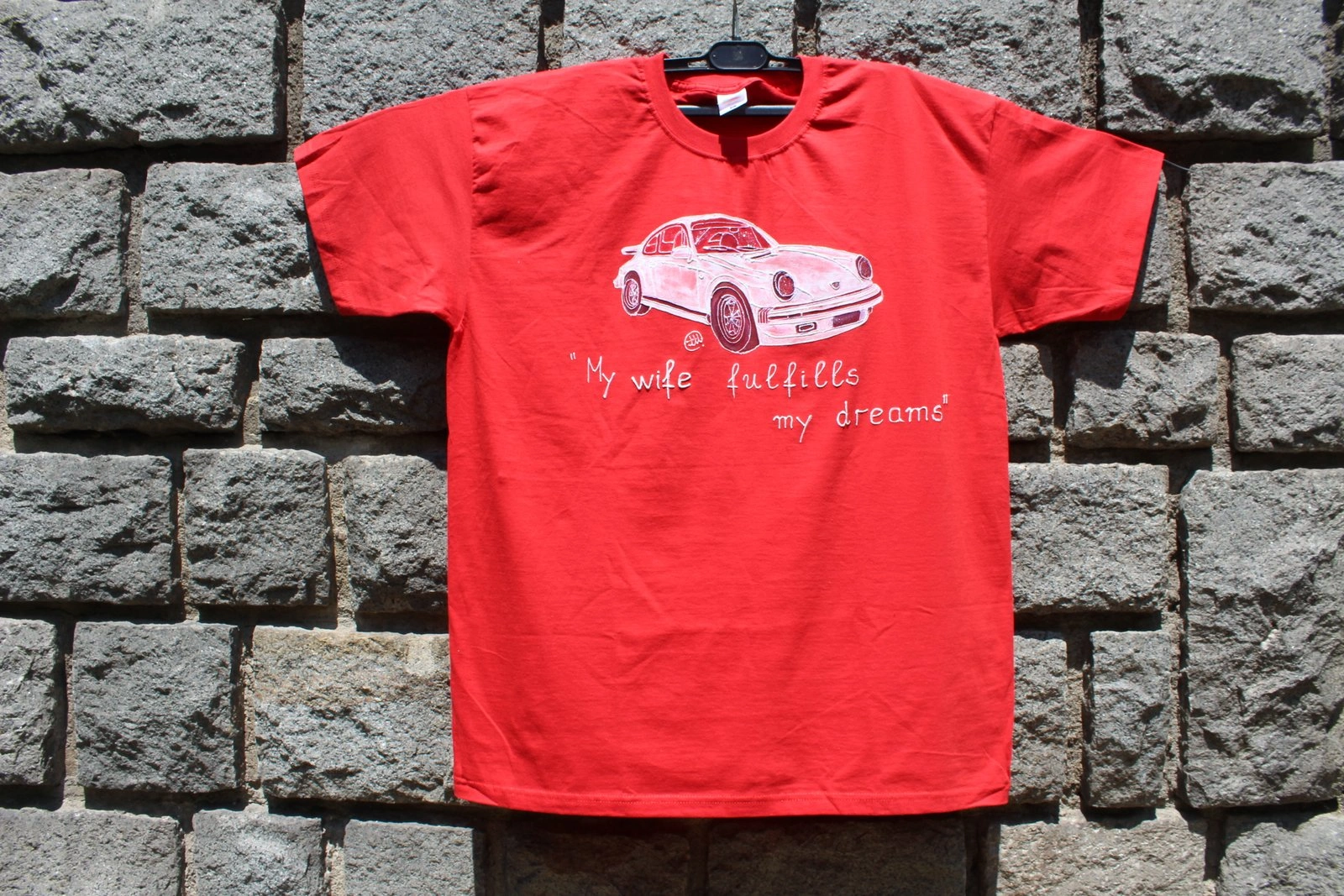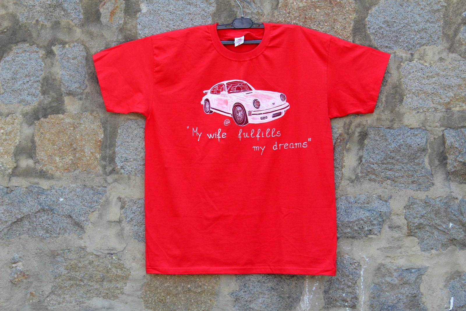 Чудесен подарък за Феновете на легендарната марка,но точно тази тишарка,трябваше да я нарисуваме и да напишеме един хитов текст и да я пратиме “ние” на адрес,за подарък.И тази услуга я предлагаме на нашите клиенти.Текста си е точно на мястото и мисля,че се получи много добре.Ако мислите,че може да се измисли по добър текст,ние сме готови да го обсъдим и да го качиме на някоя от следващите ни фанелки.