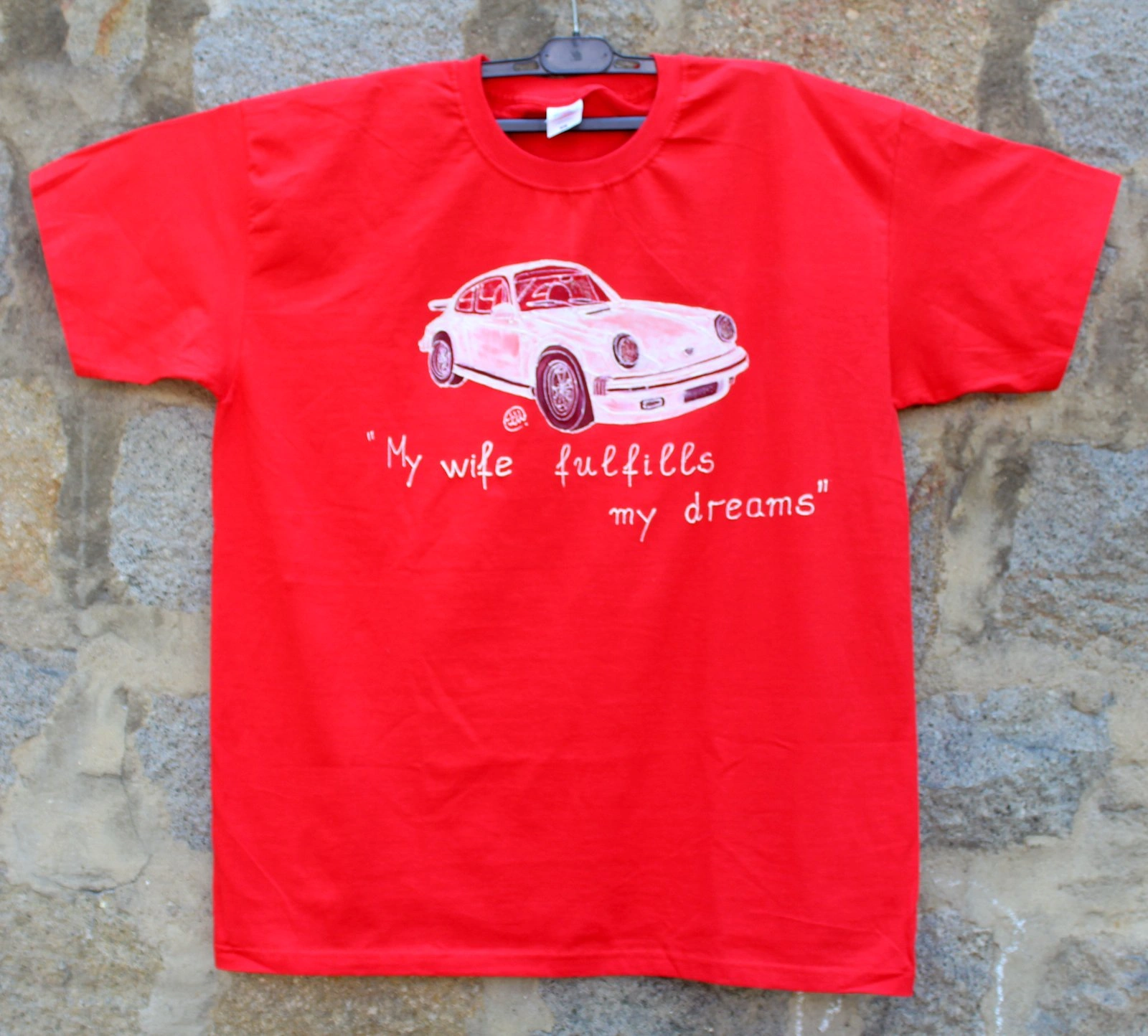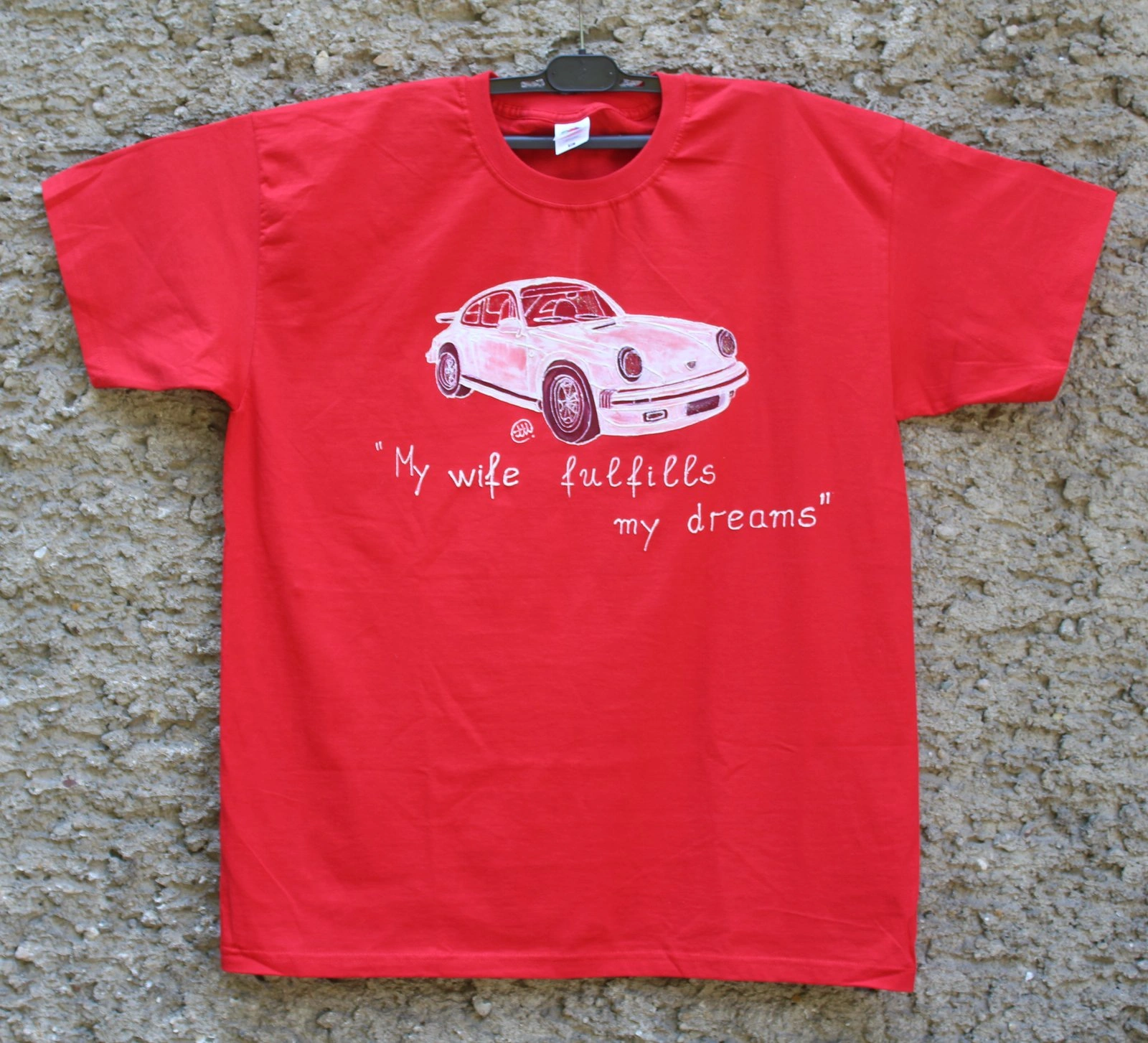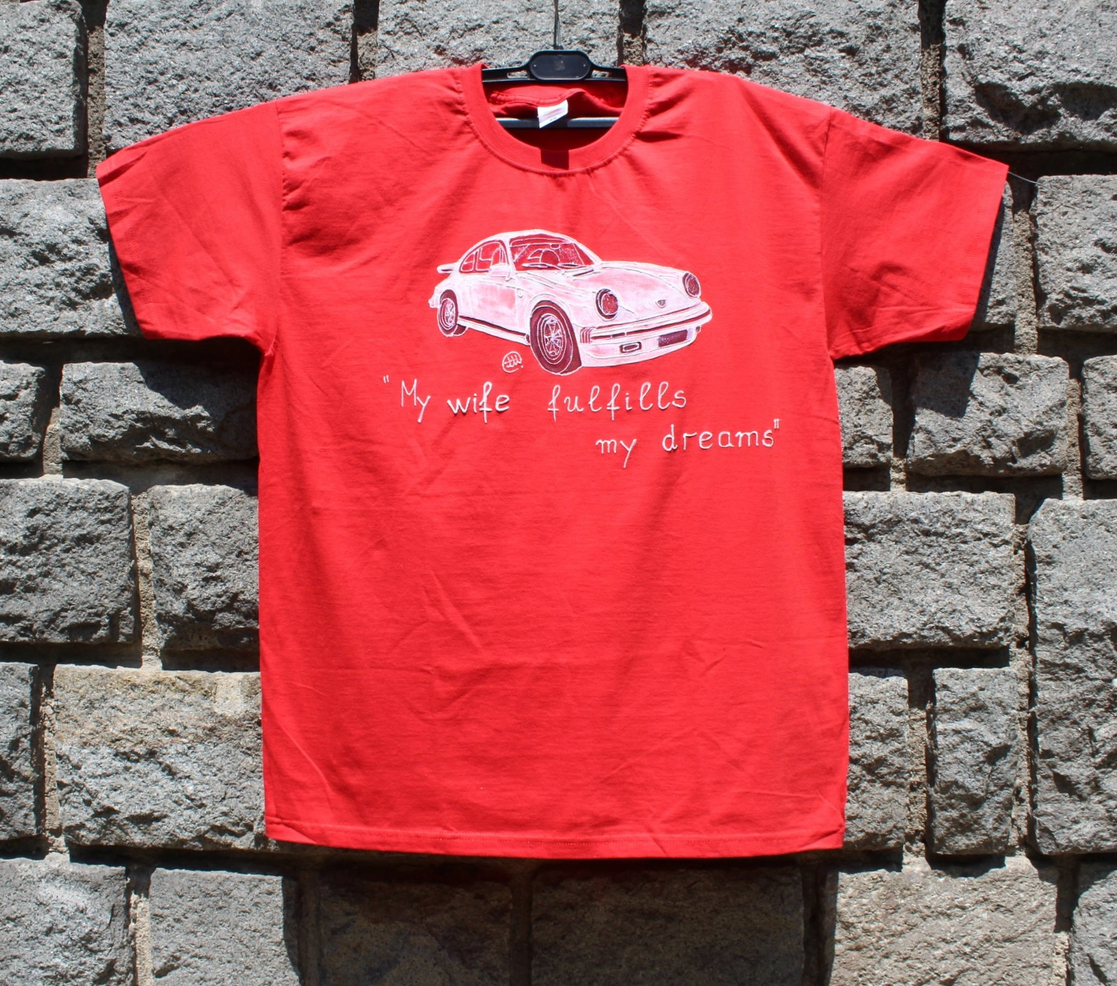 Чудесен подарък за Феновете на легендарната марка,но точно тази тишарка,трябваше да я нарисуваме и да напишеме един хитов текст и да я пратиме “ние” на адрес,за подарък.И тази услуга я предлагаме на нашите клиенти.Текста си е точно на мястото и мисля,че се получи много добре.Ако мислите,че може да се измисли по добър текст,ние сме готови да го обсъдим и да го качиме на някоя от следващите ни фанелки.